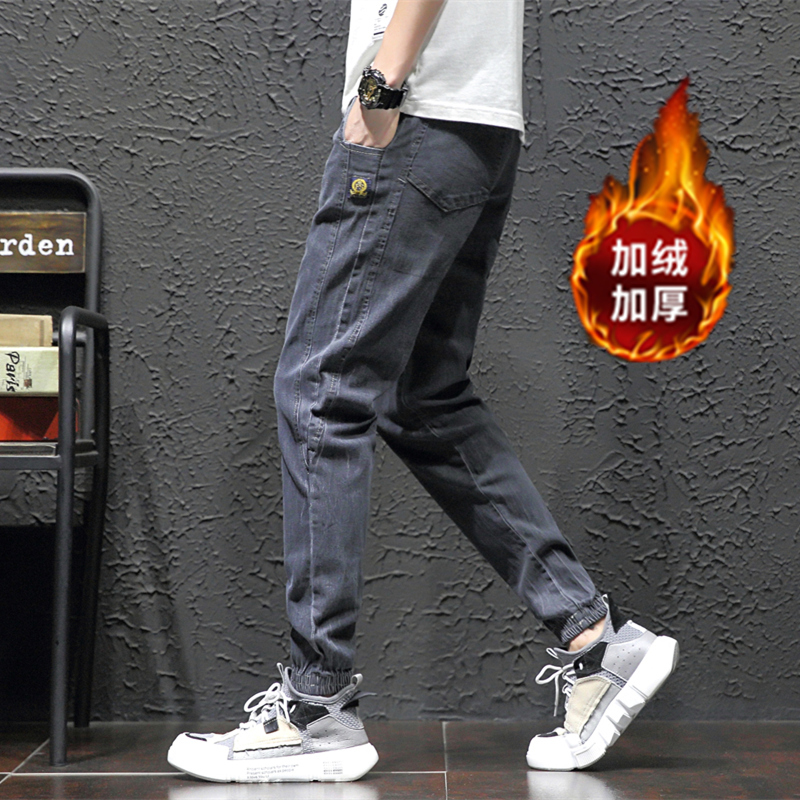 Эластичные джинсовые джинсы, утепленные зимние трендовые демисезонные штаны, свободный крой, в корейском стиле