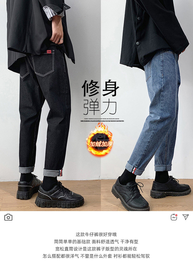 Флисовые джинсы с начесом для отдыха, удерживающие тепло демисезонные эластичные штаны, в корейском стиле, облегающий крой