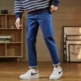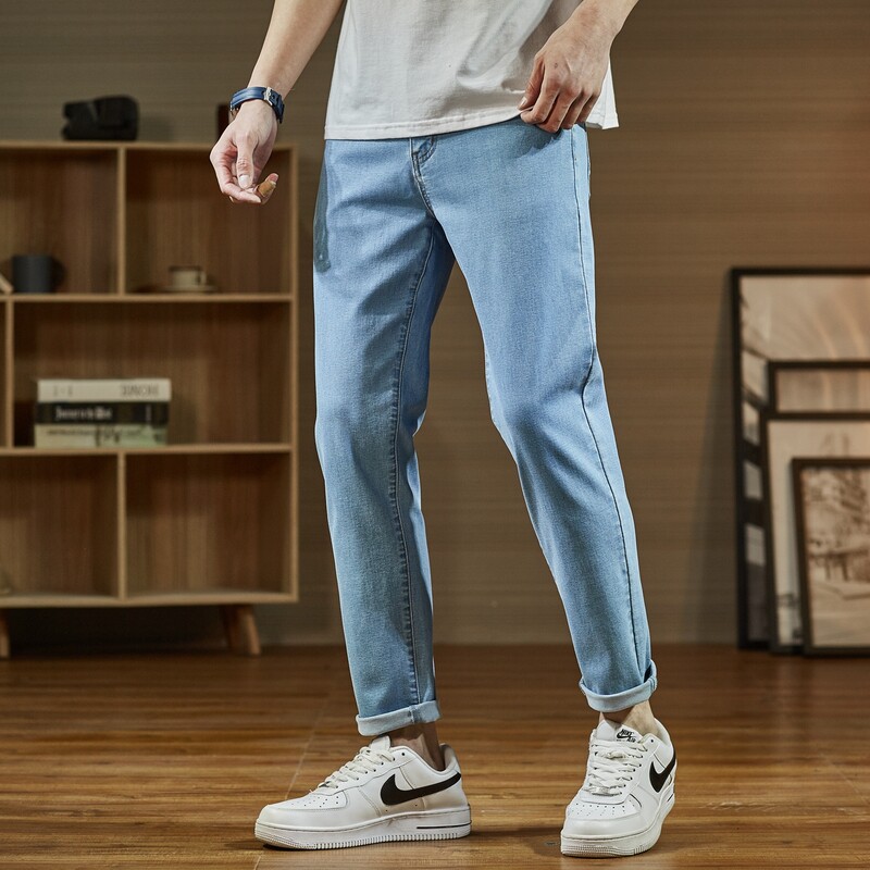 Весенние эластичные джинсовые джинсы, штаны для школьников и студентов, коллекция 2021, тренд сезона, средняя посадка, облегающий крой