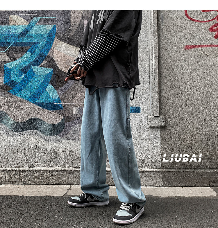 Джинсы, штаны, в корейском стиле, свободный прямой крой, коллекция 2021, осенние