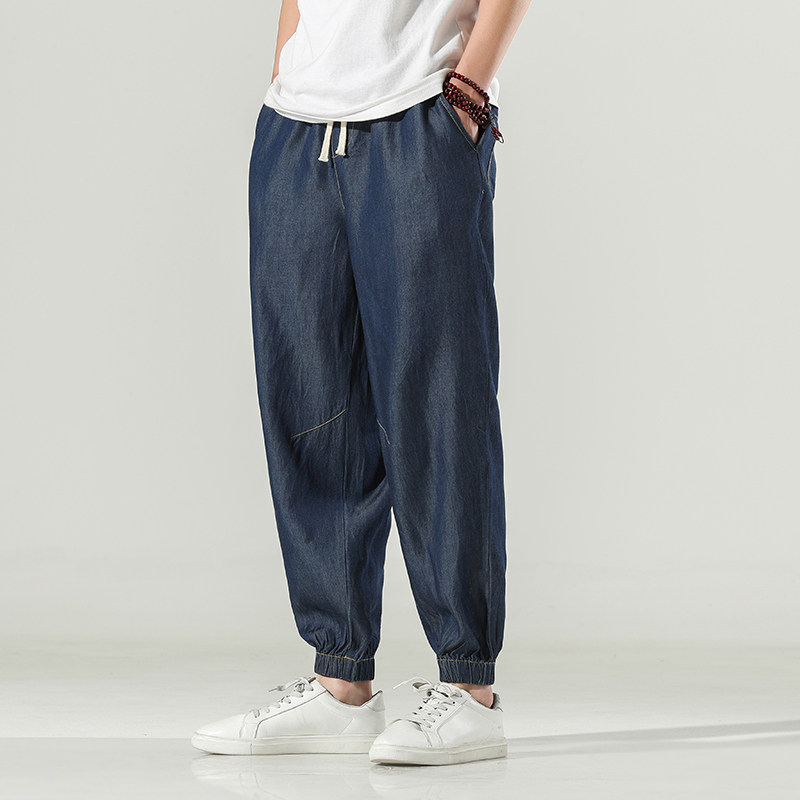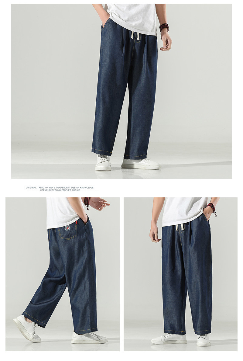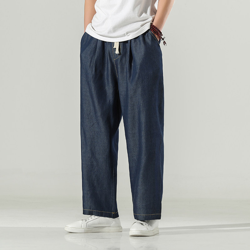 Японские ретро джинсовые летние тонкие джинсы, штаны, свободный прямой крой, большой размер