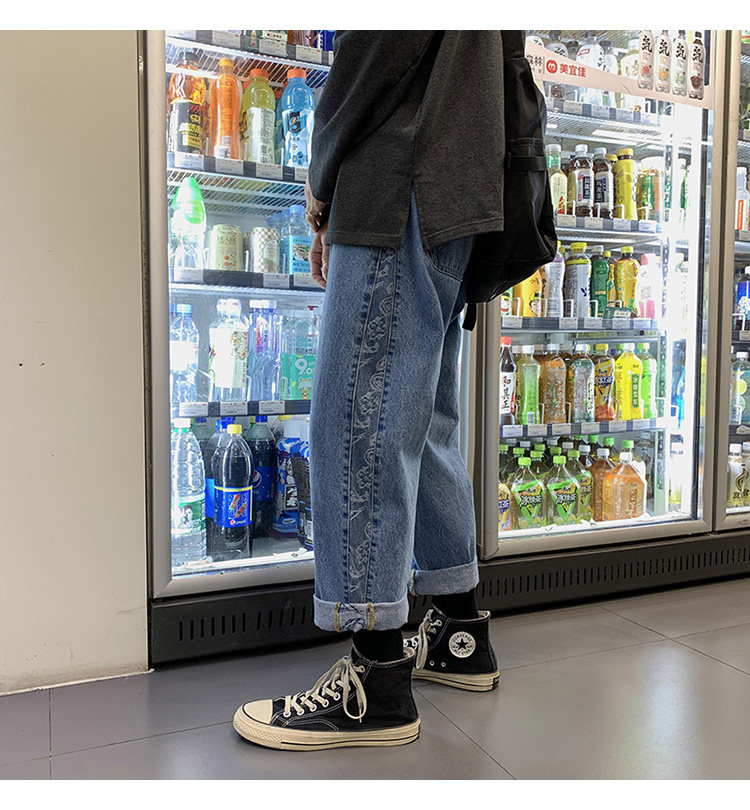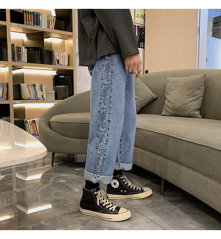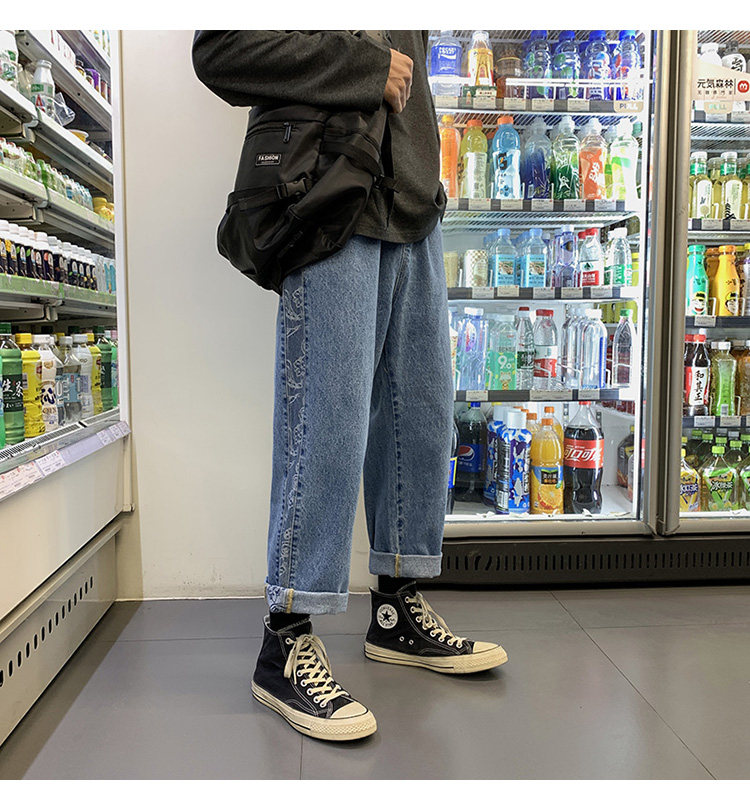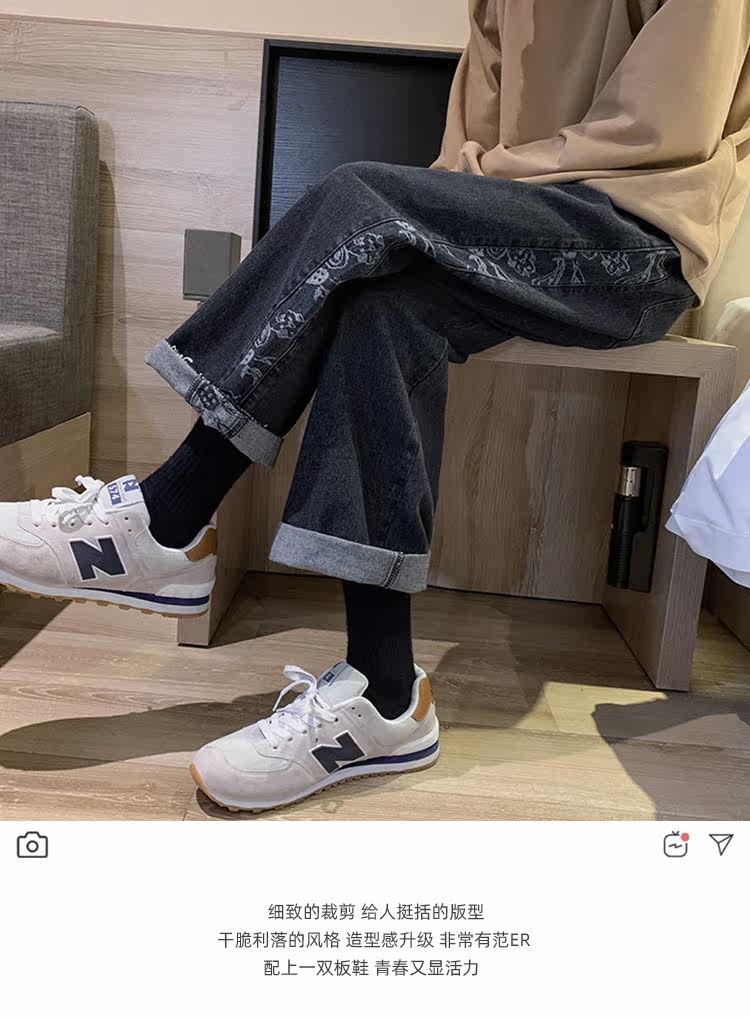 Джинсы, весенние штаны, коллекция 2021, свободный прямой крой, в корейском стиле