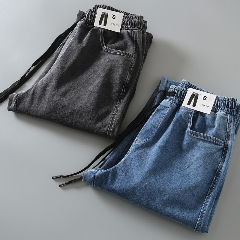 Комфортные эластичные трикотажные джинсовые летние джинсы для отдыха, оверсайз, эластичная талия