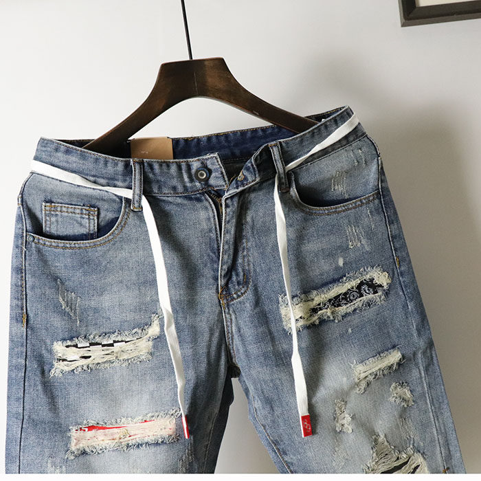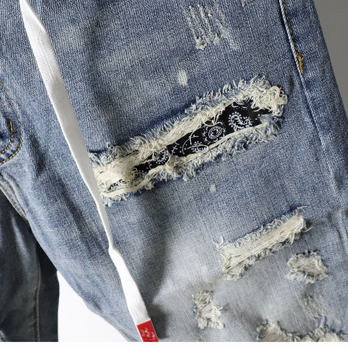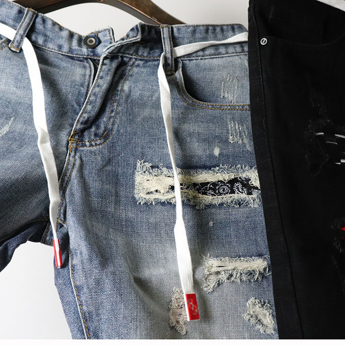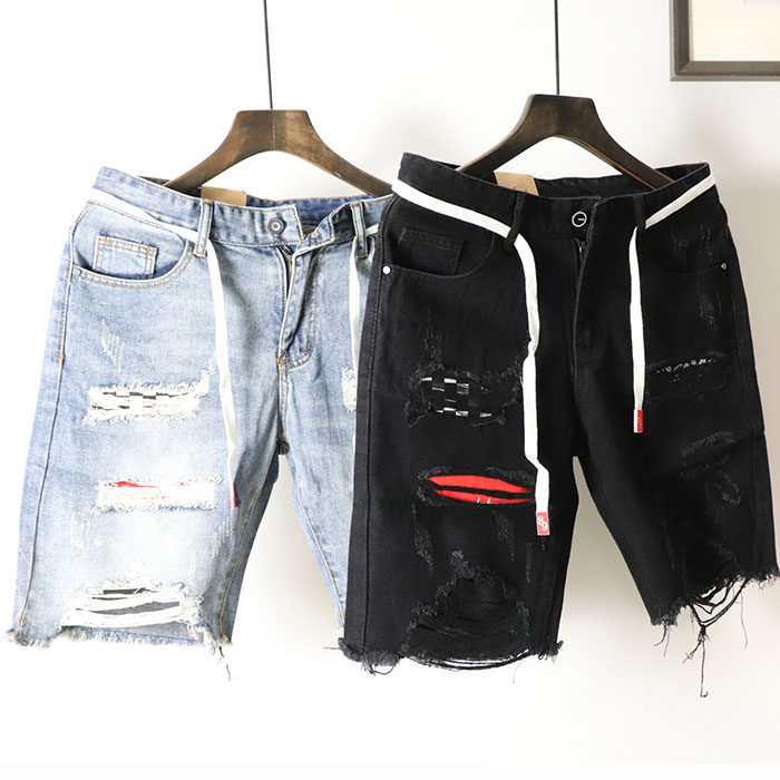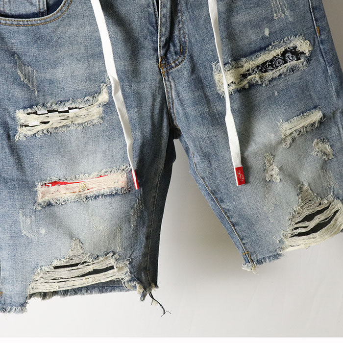 Летние джинсовые штаны, пластырь, трендовые оригинальные шорты в стиле хип-хоп