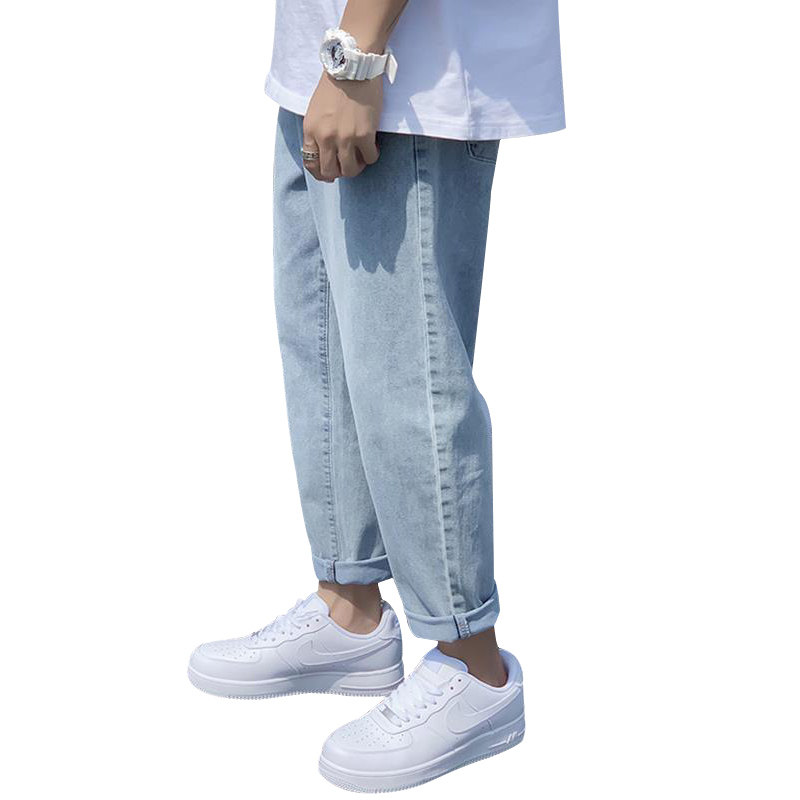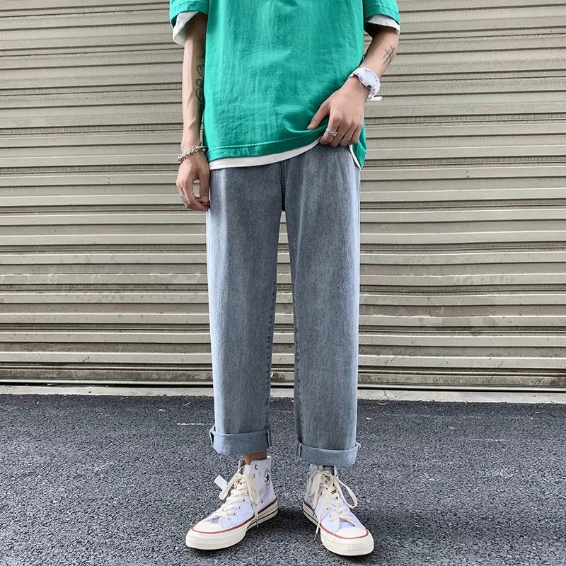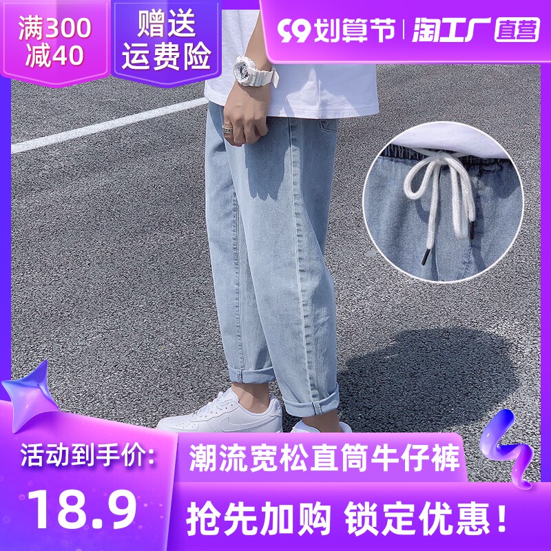Джинсы, трендовые повседневные брюки, 2021 года, свободный прямой крой, в корейском стиле, эластичная талия
