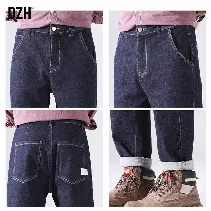 Tide, темно-синие осенние прямые свободные джинсы, трендовые повседневные брюки для отдыха, универсальные штаны, большой размер