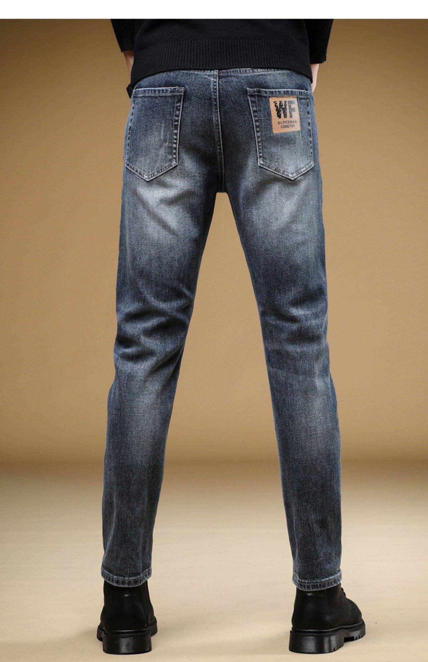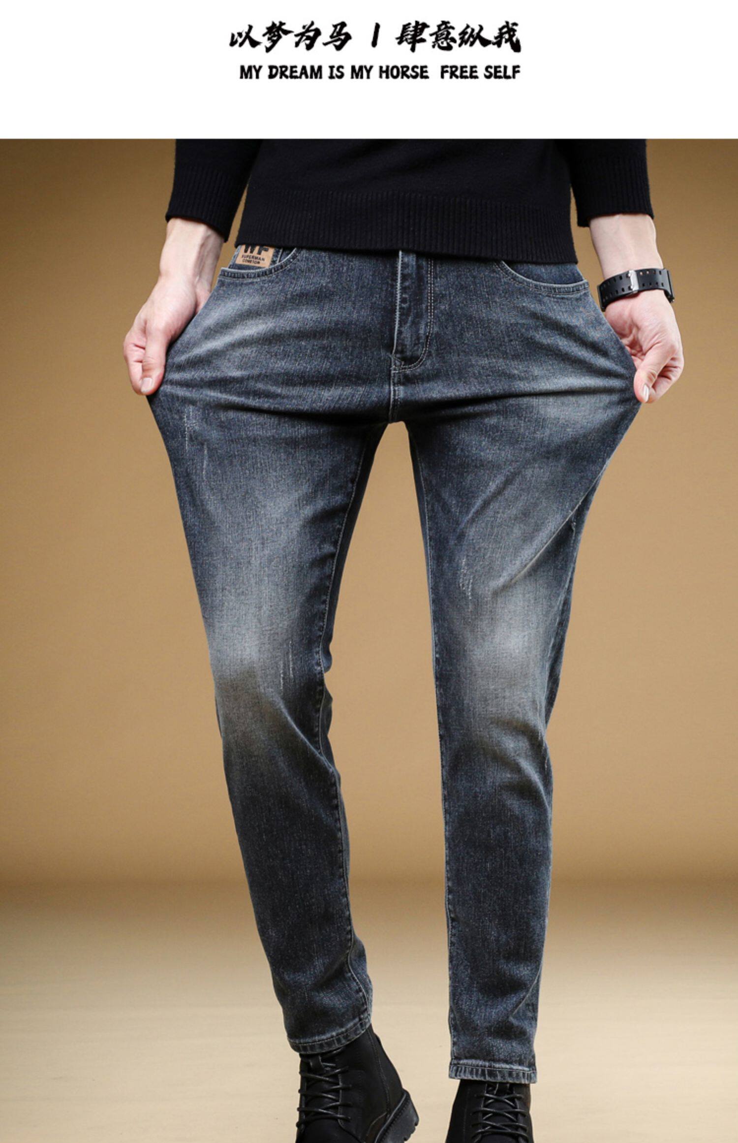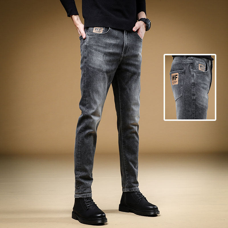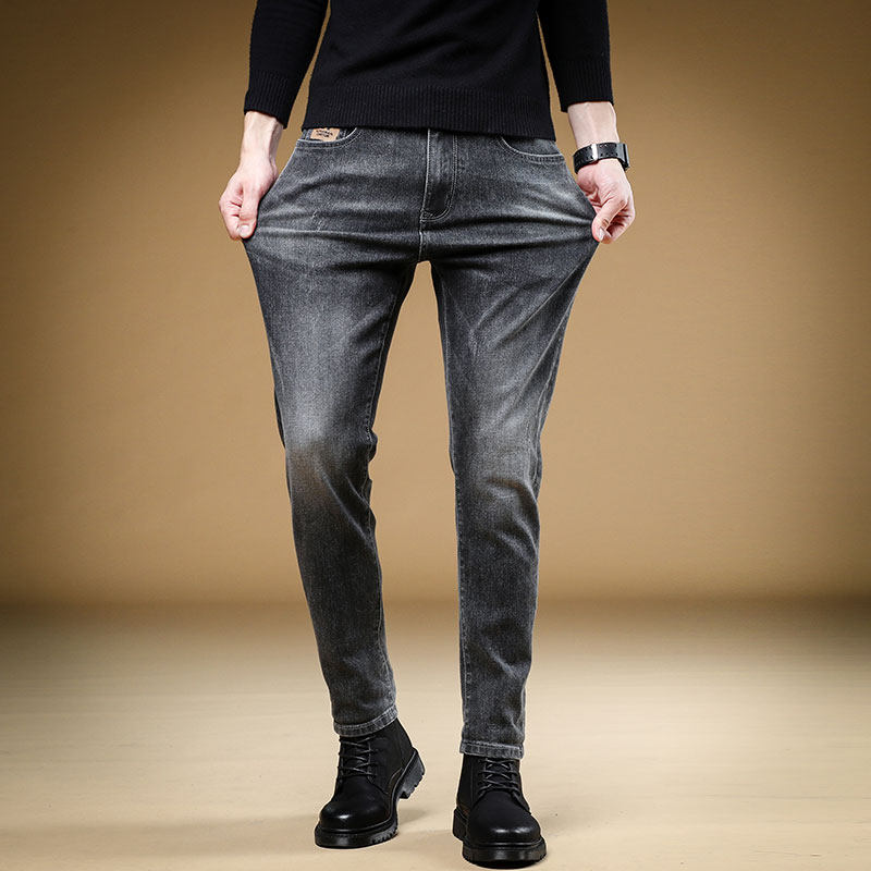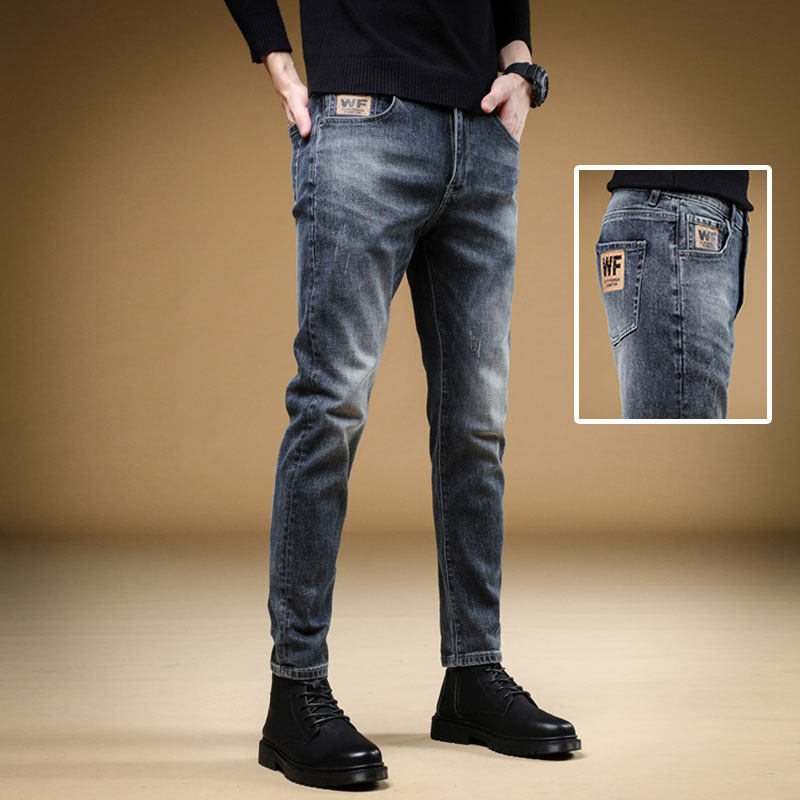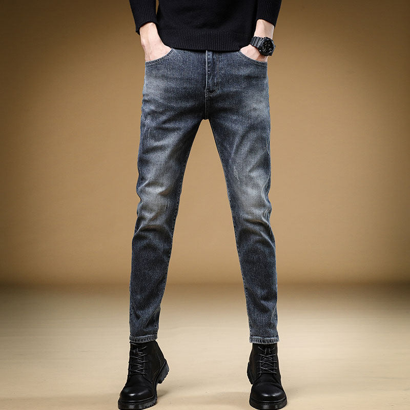 Демисезонные джинсы, мужские трендовые универсальные повседневные брюки, облегающий крой, в корейском стиле, коллекция 2023
