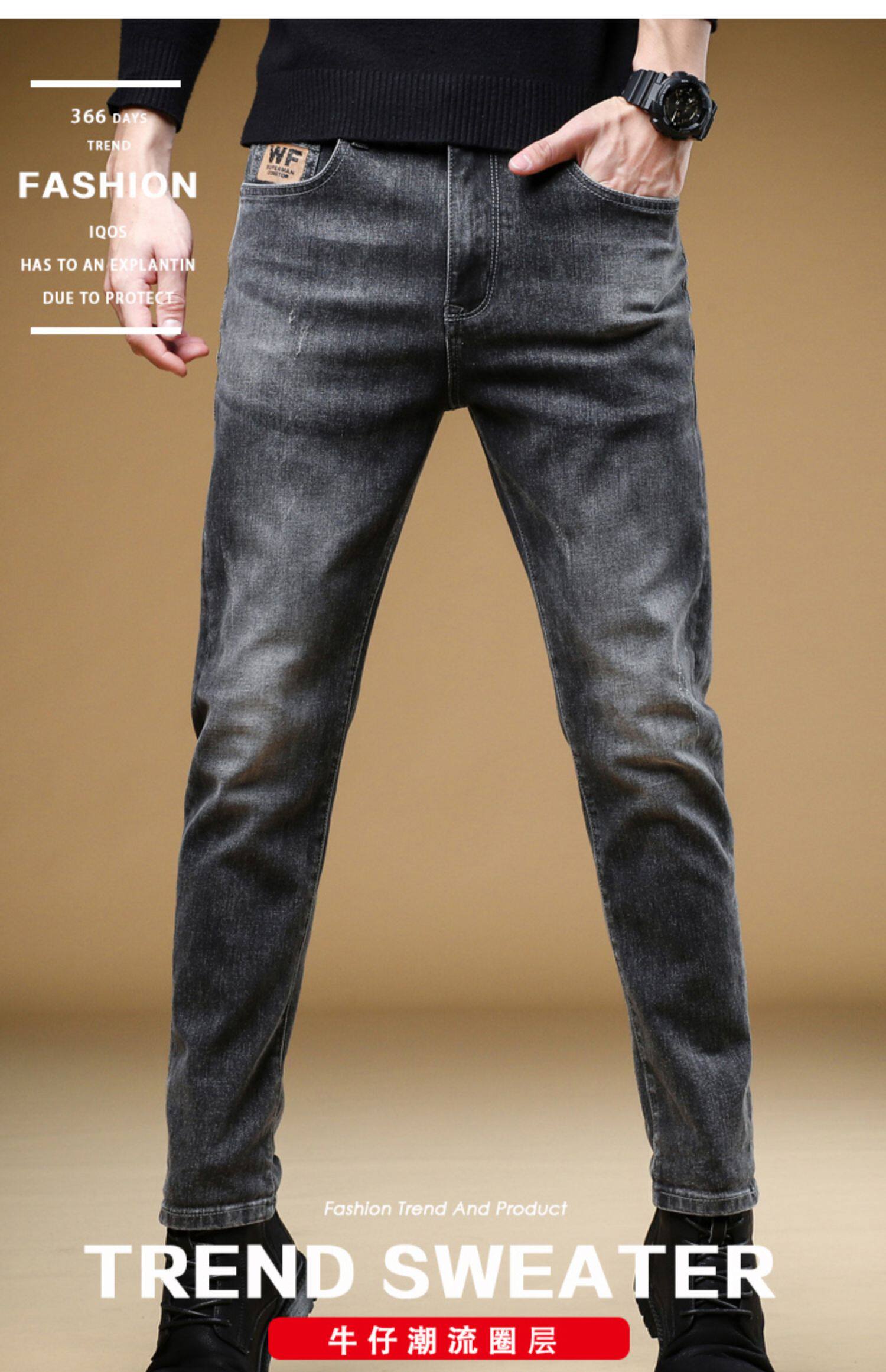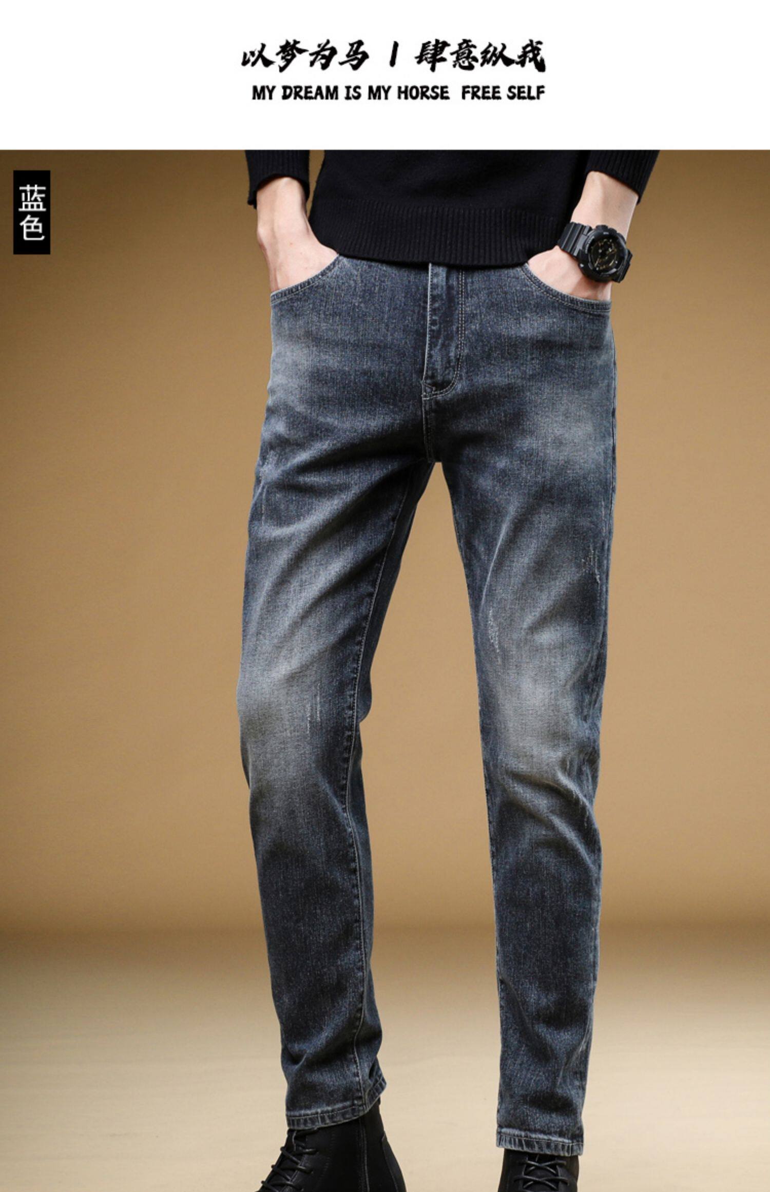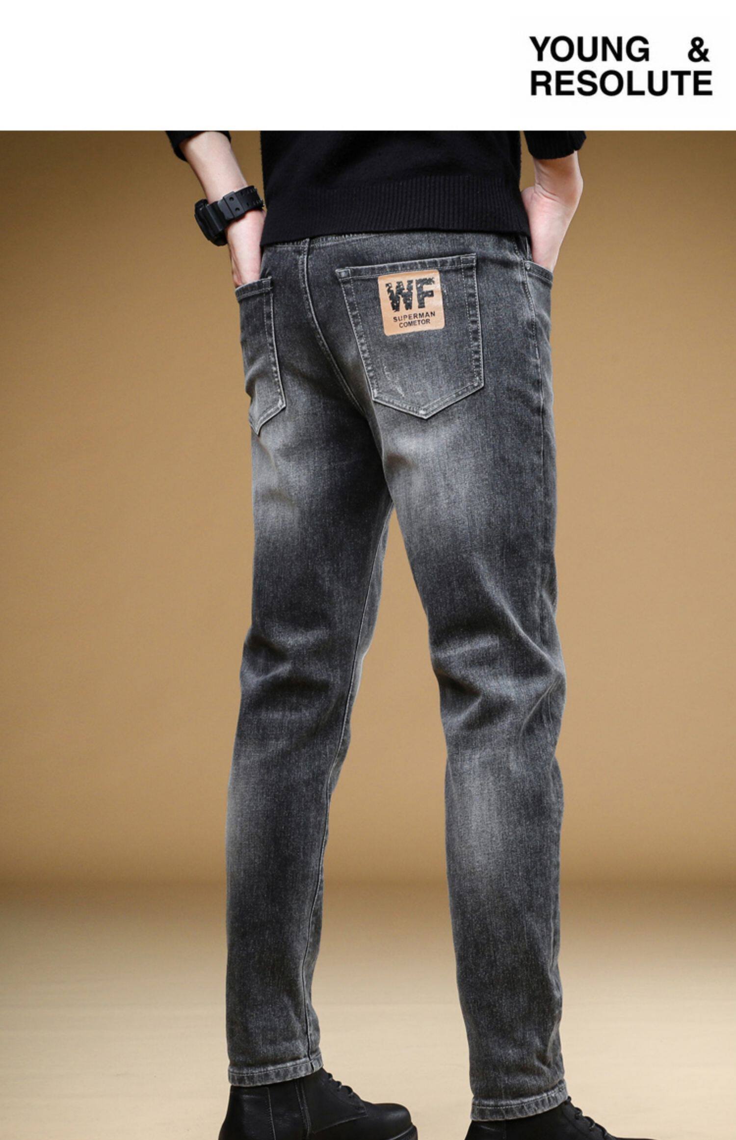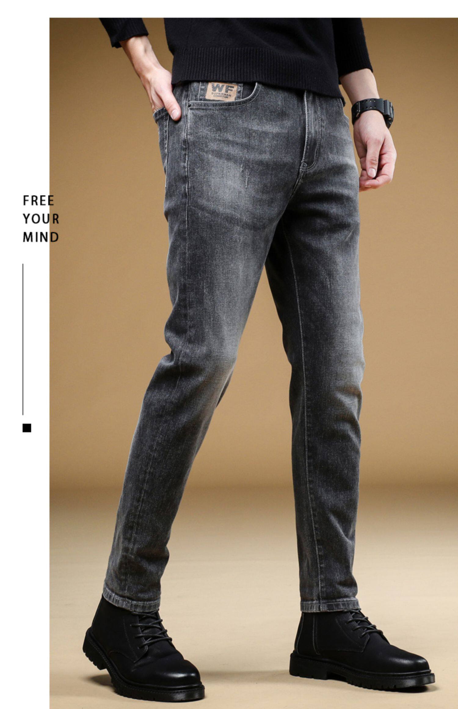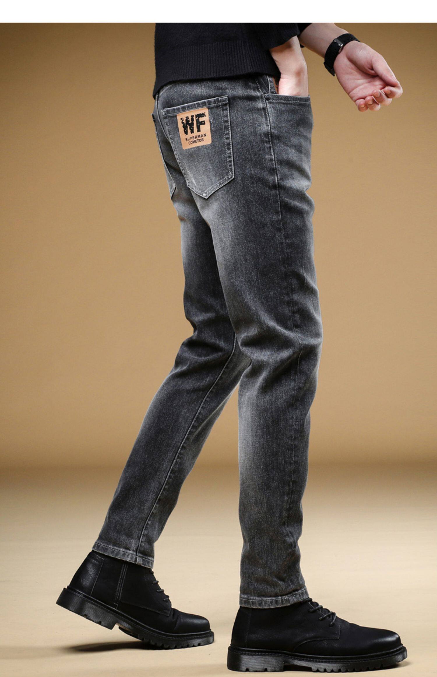 Демисезонные джинсы, мужские трендовые универсальные повседневные брюки, облегающий крой, в корейском стиле, коллекция 2023