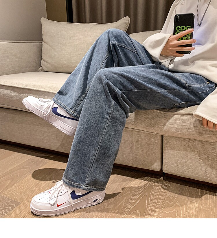 Tide, синие джинсы, демисезонные штаны, большой размер, свободный прямой крой