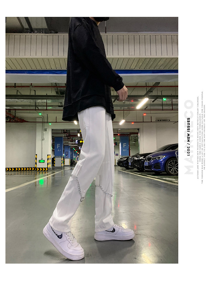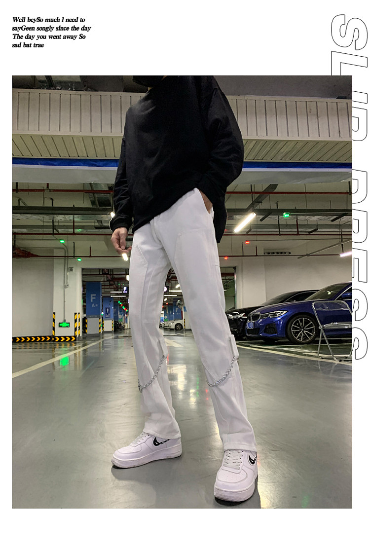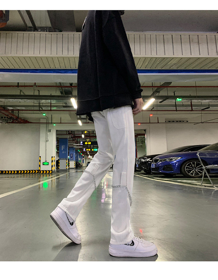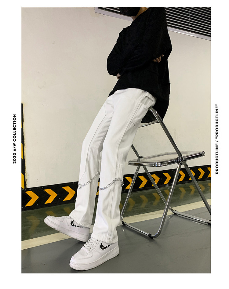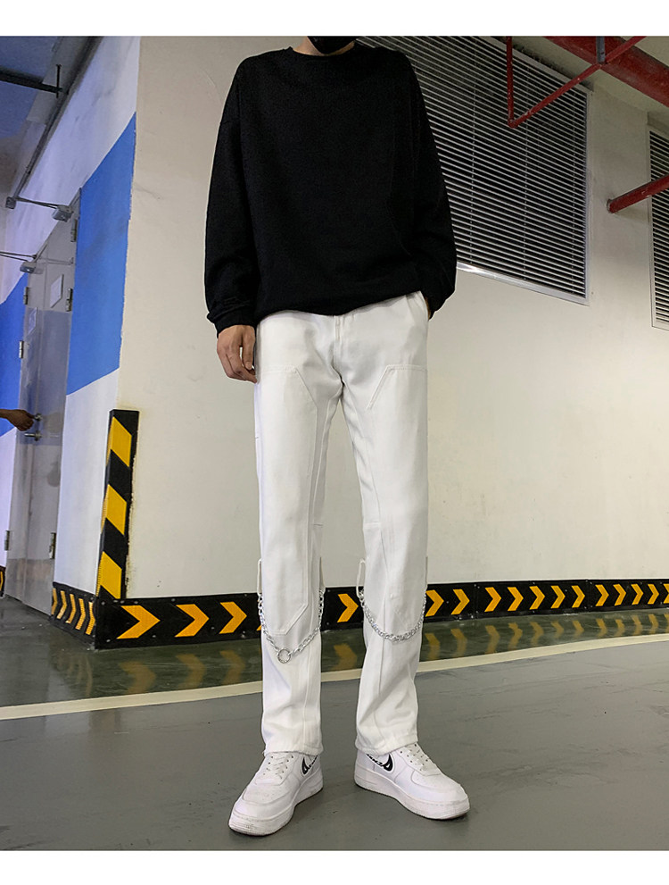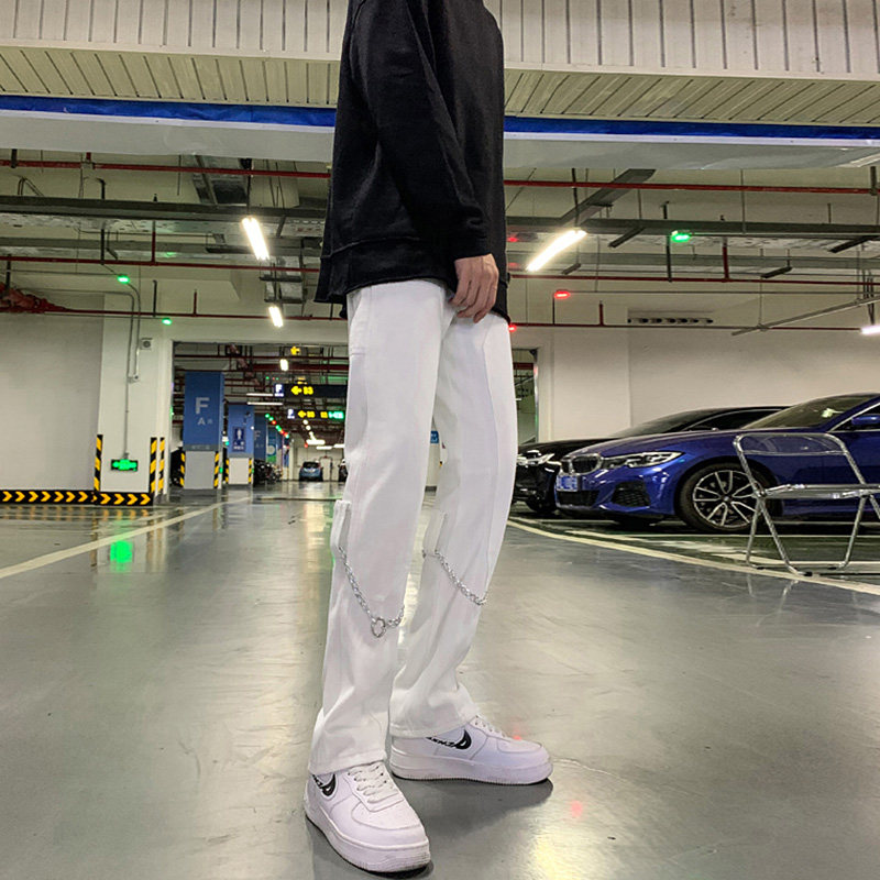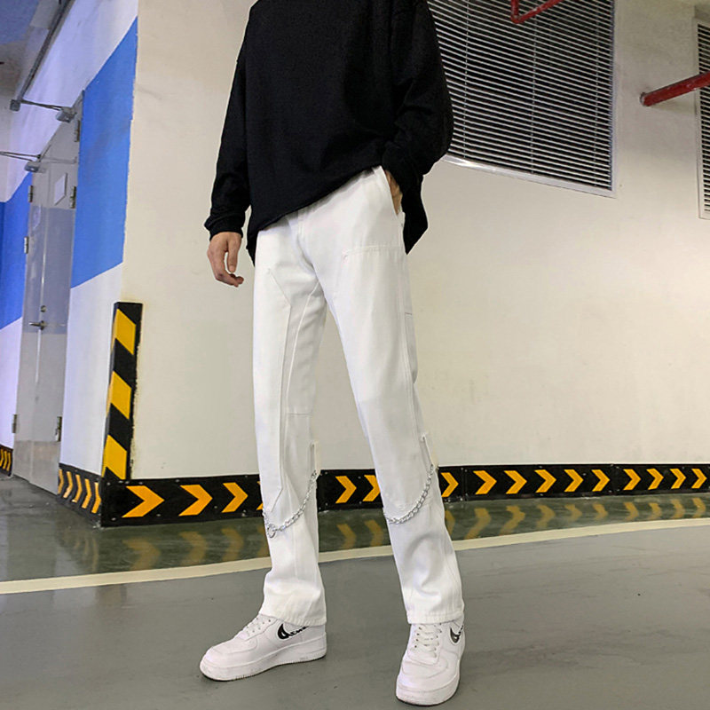 Белые трендовые джинсы, ретро цепь в стиле хип-хоп, штаны, свободный прямой крой