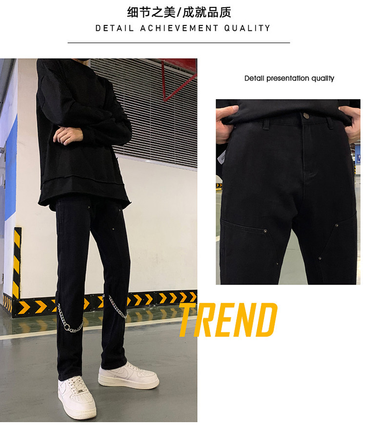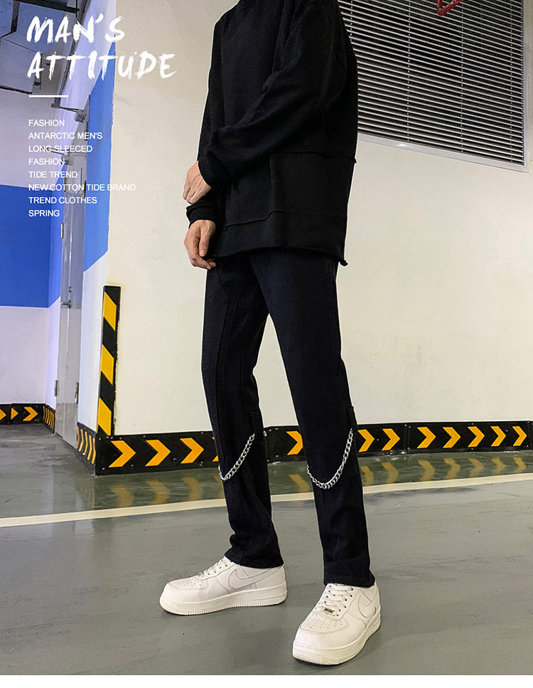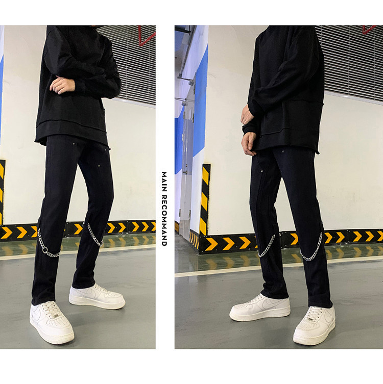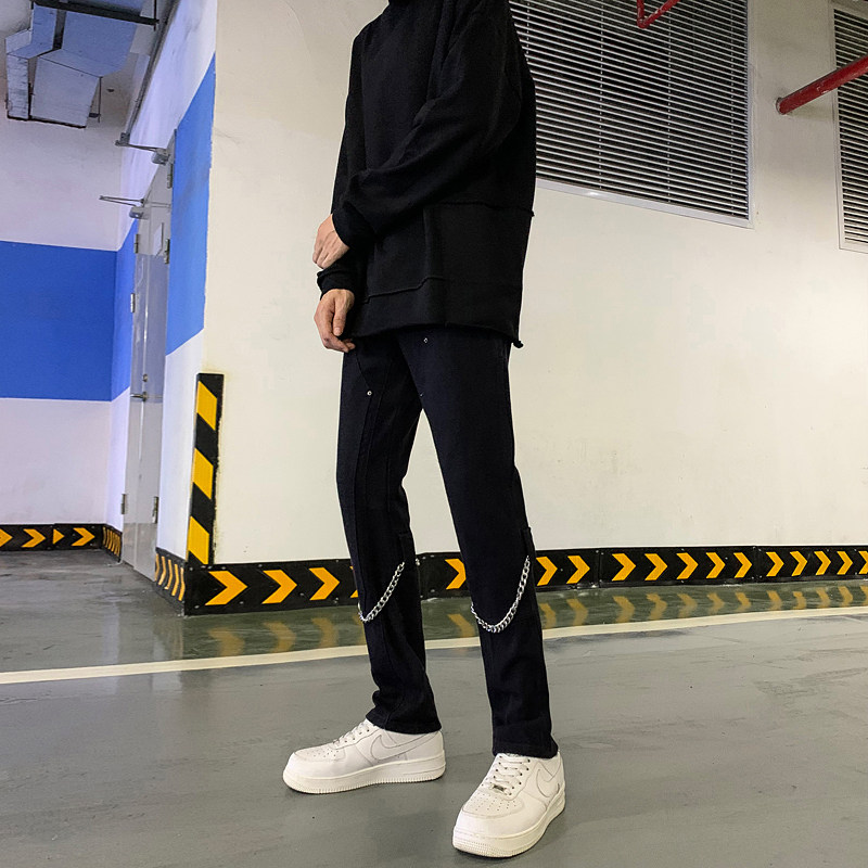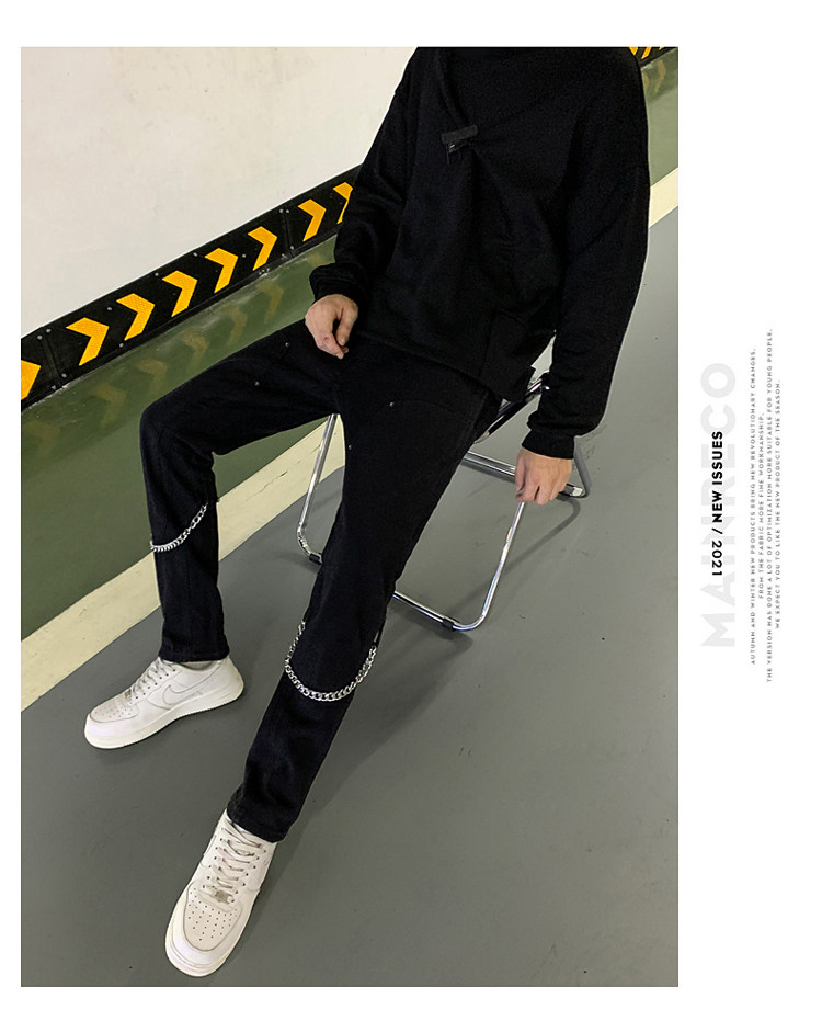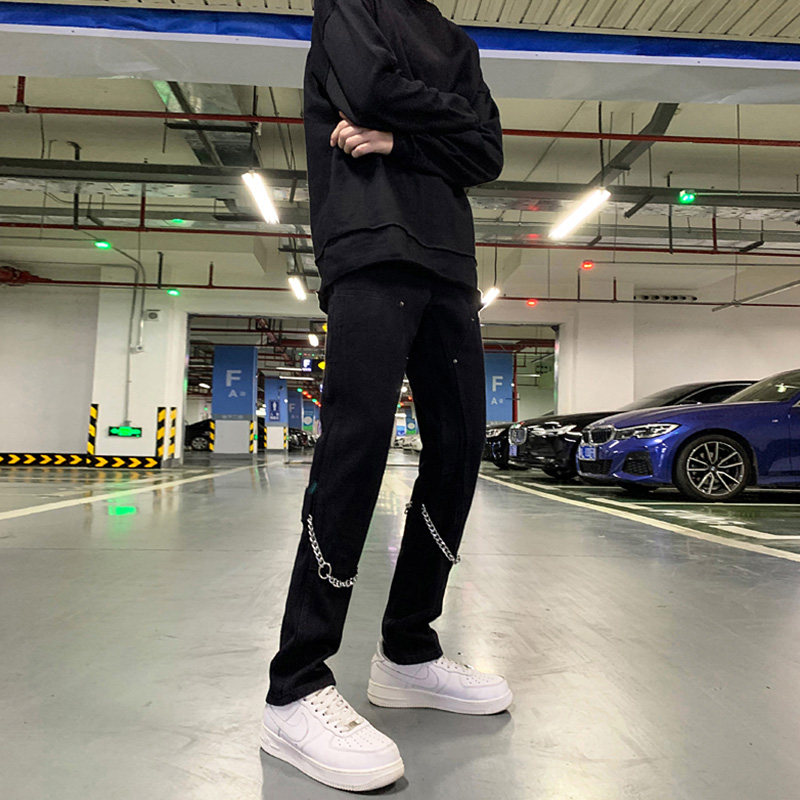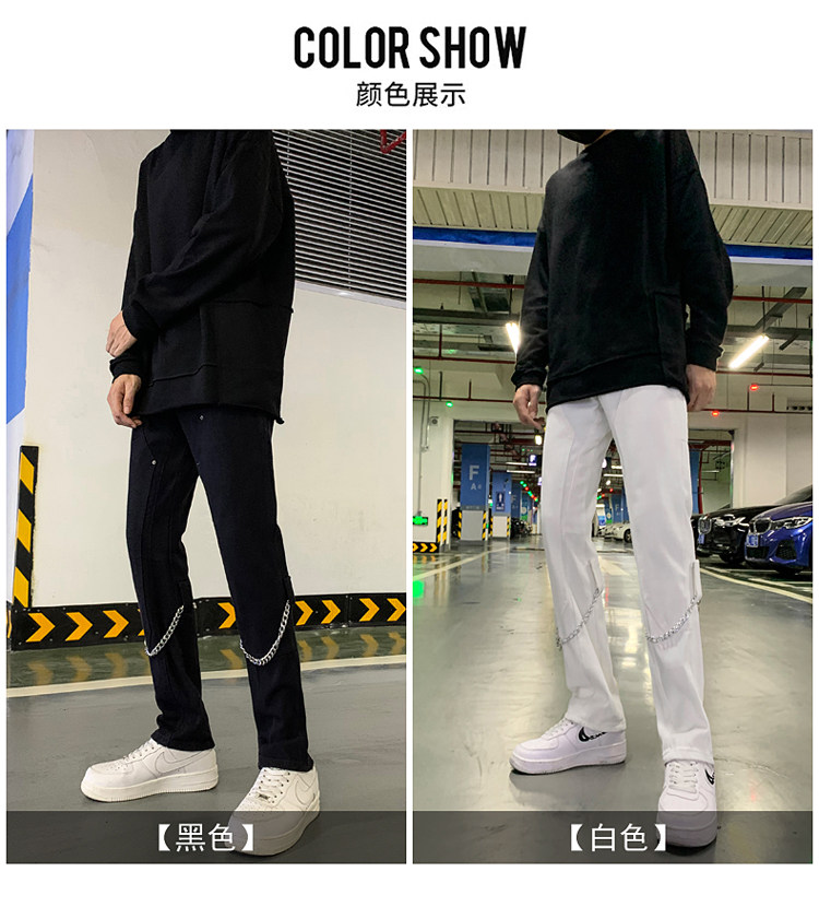 Белые трендовые джинсы, ретро цепь в стиле хип-хоп, штаны, свободный прямой крой