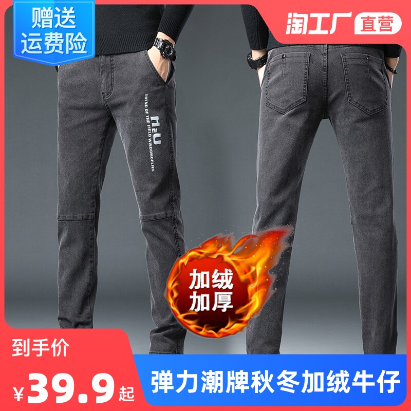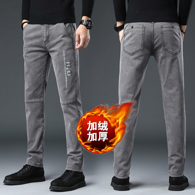 Эластичные демисезонные утепленные трендовые джинсы с начесом, повседневные брюки, увеличенная толщина, свободный прямой крой, оверсайз