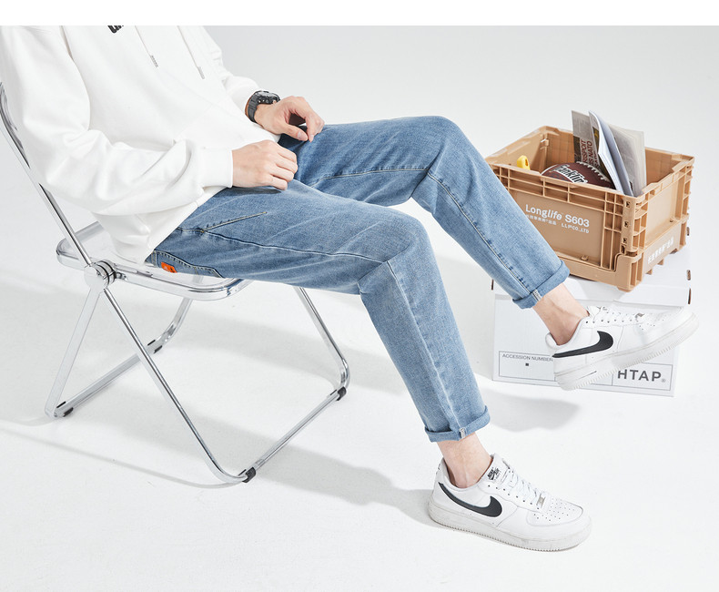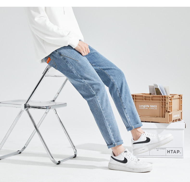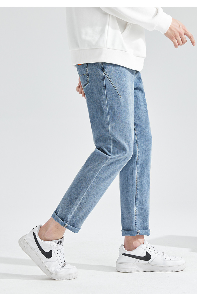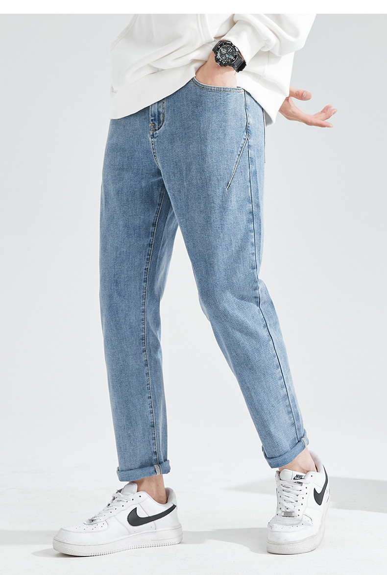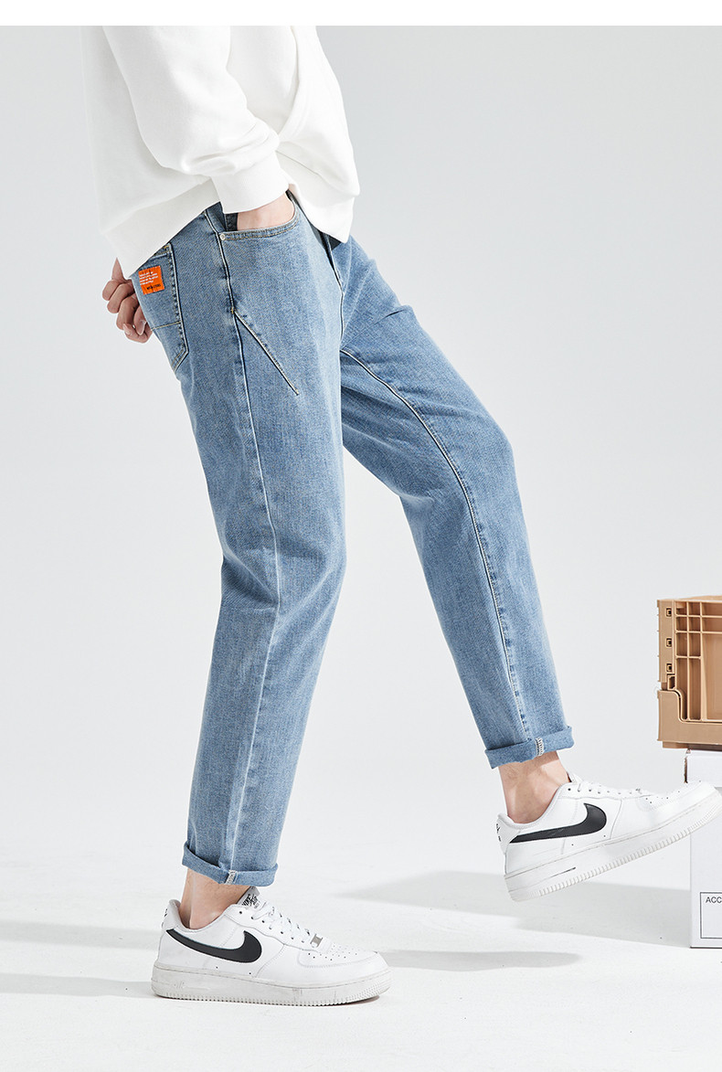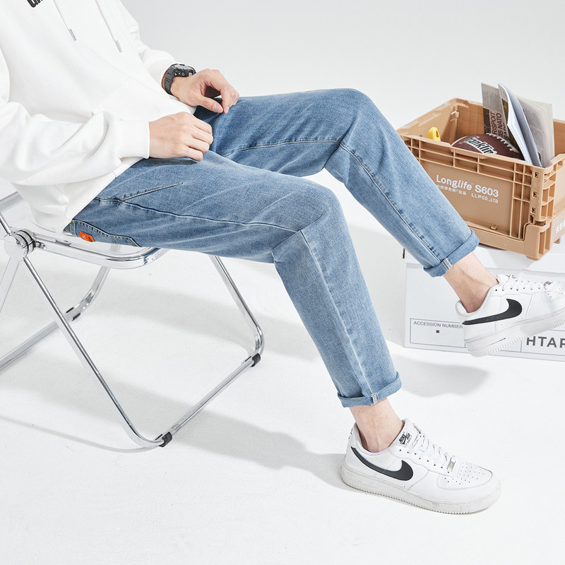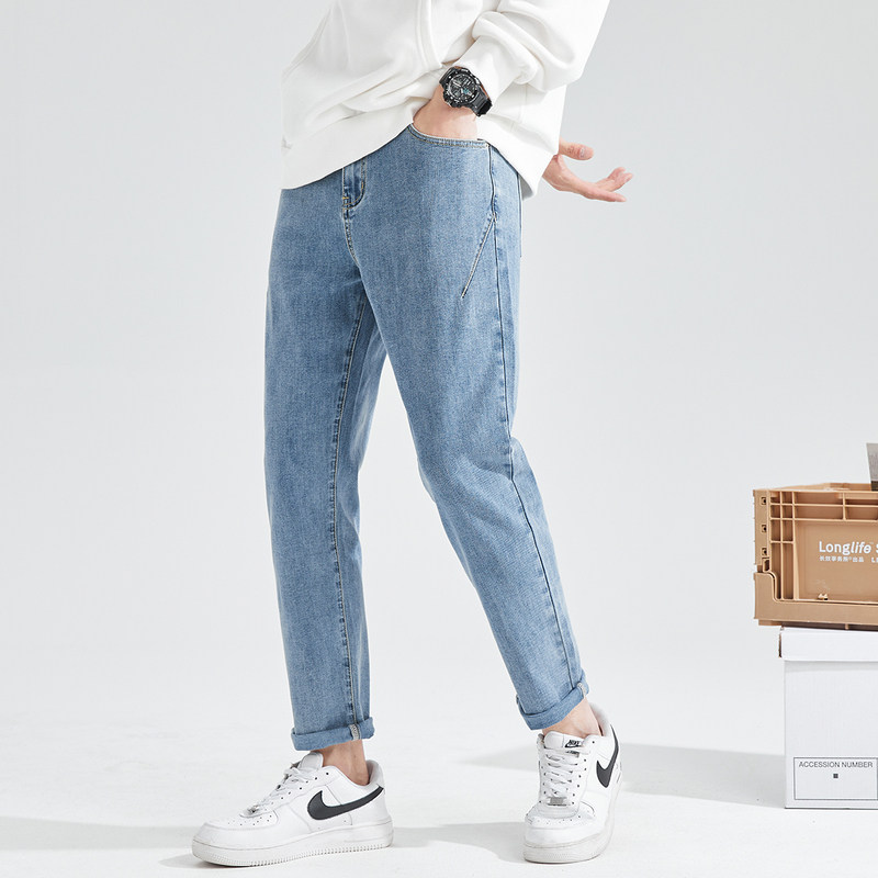 Летние светлые прямые свободные джинсы, эластичные штаны, повседневные брюки, облегающий крой