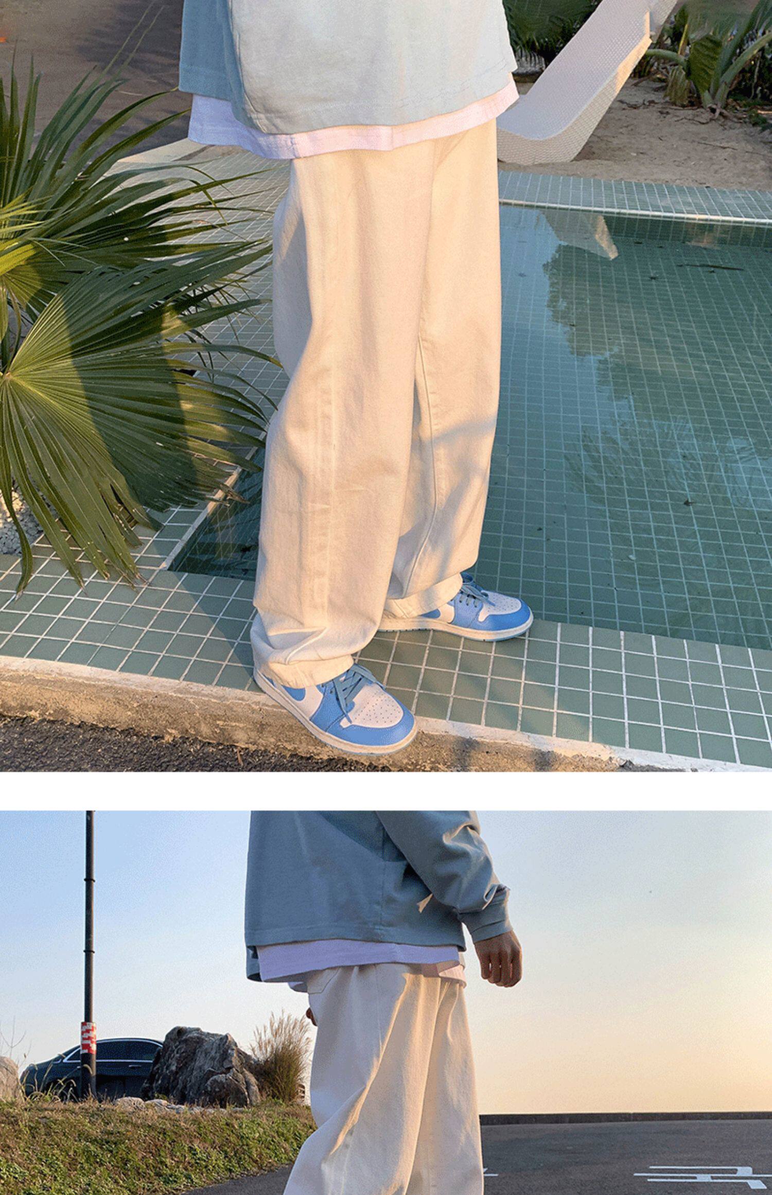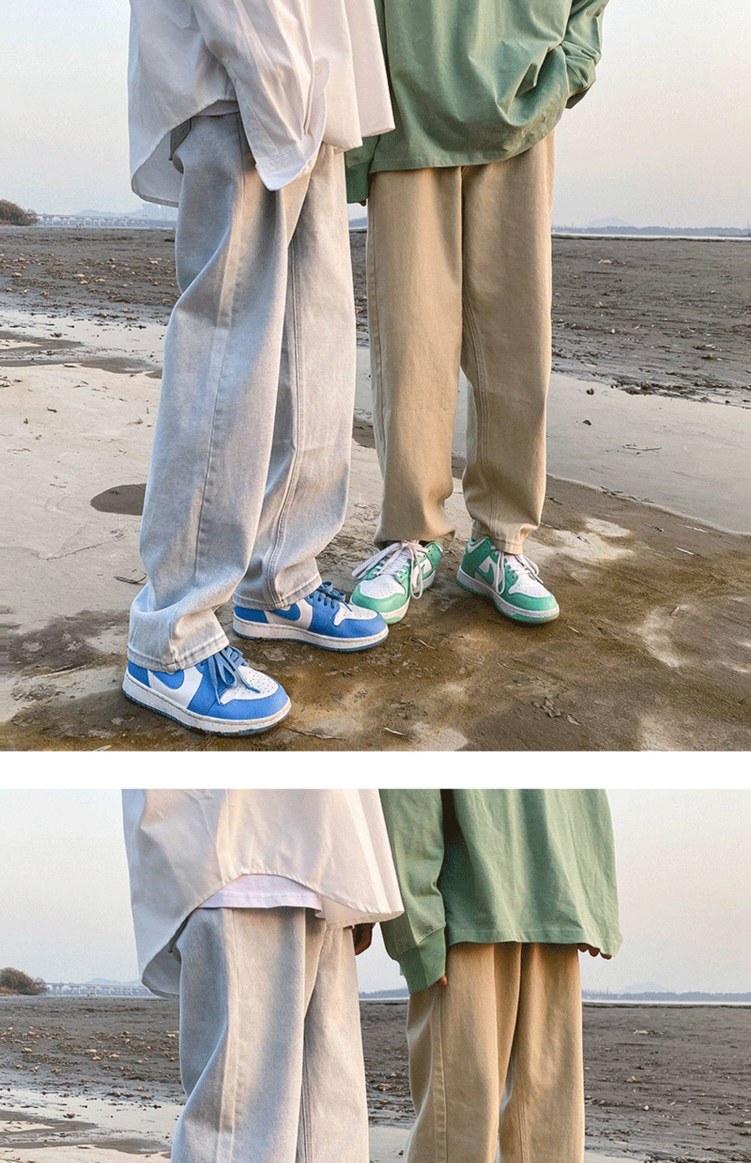 Японские цветные демисезонные джинсы, универсальные штаны, осенние, подходит для подростков, свободный прямой крой