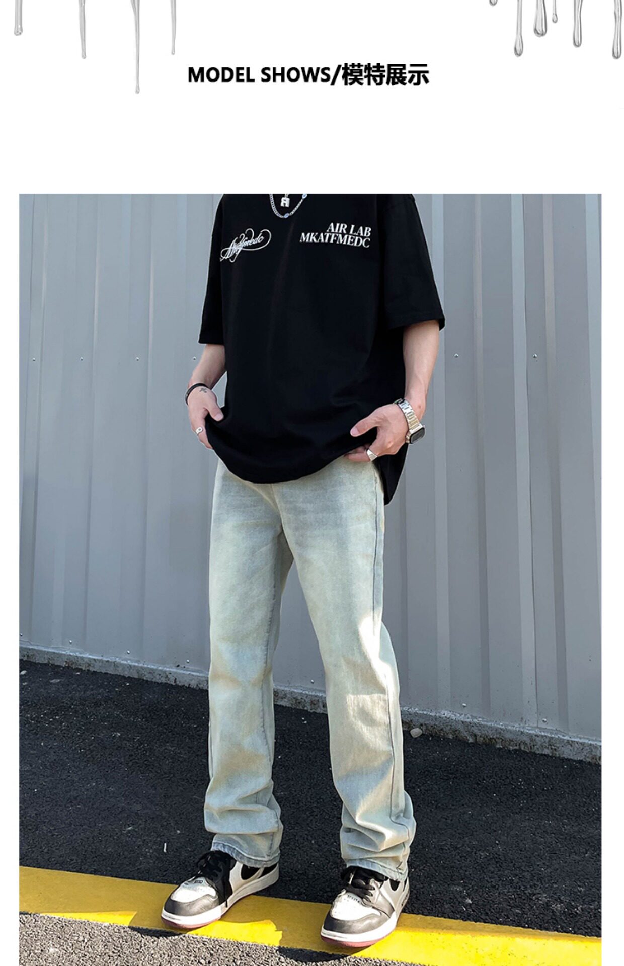 Tide, джинсы, штаны, в американском стиле, свободный прямой крой