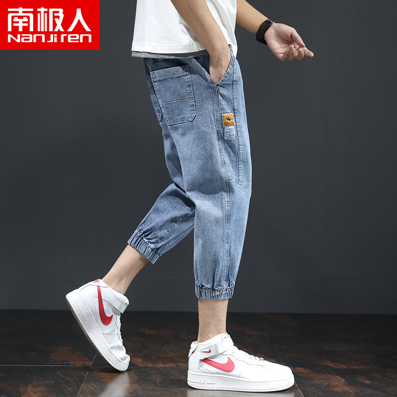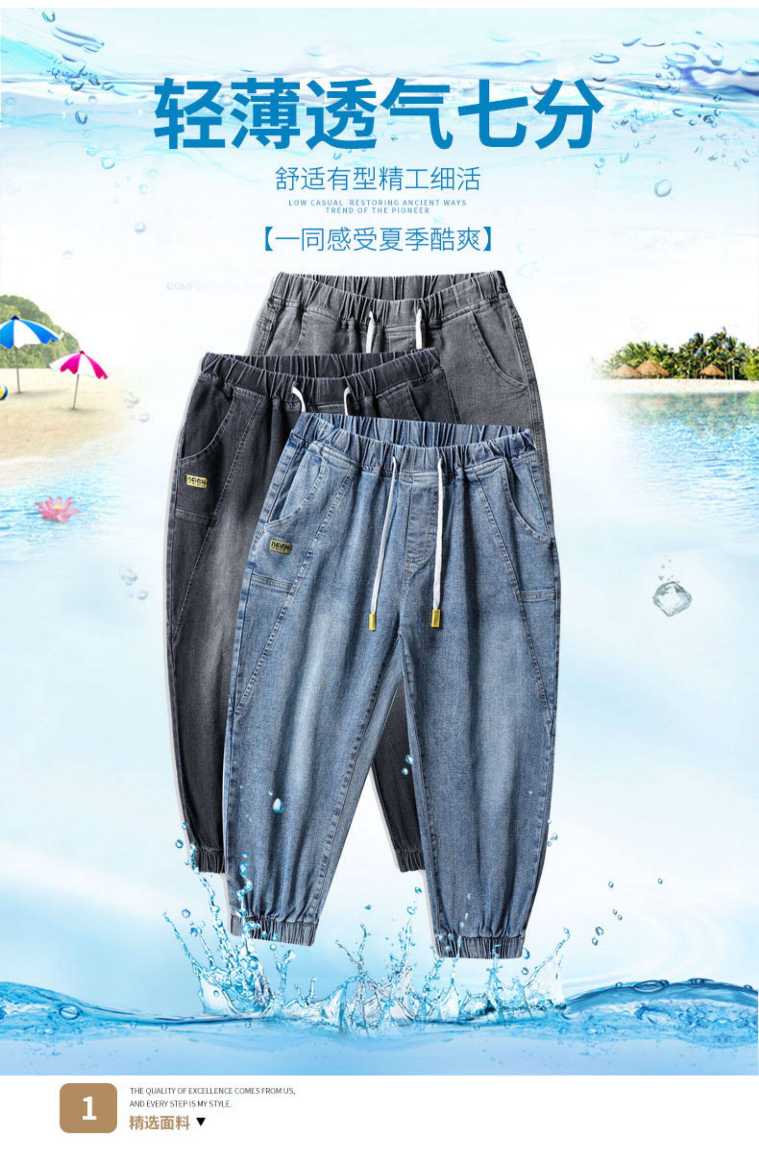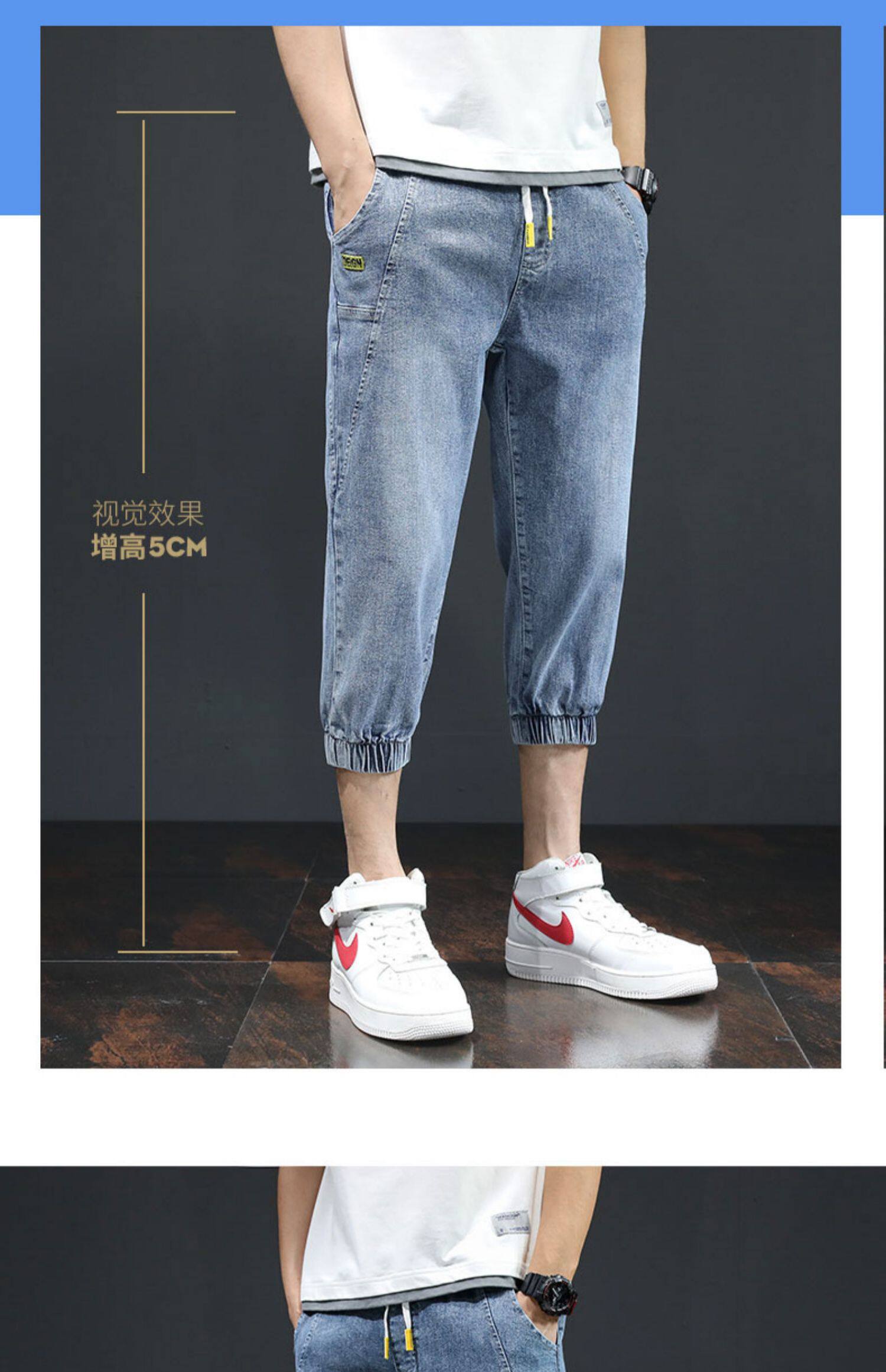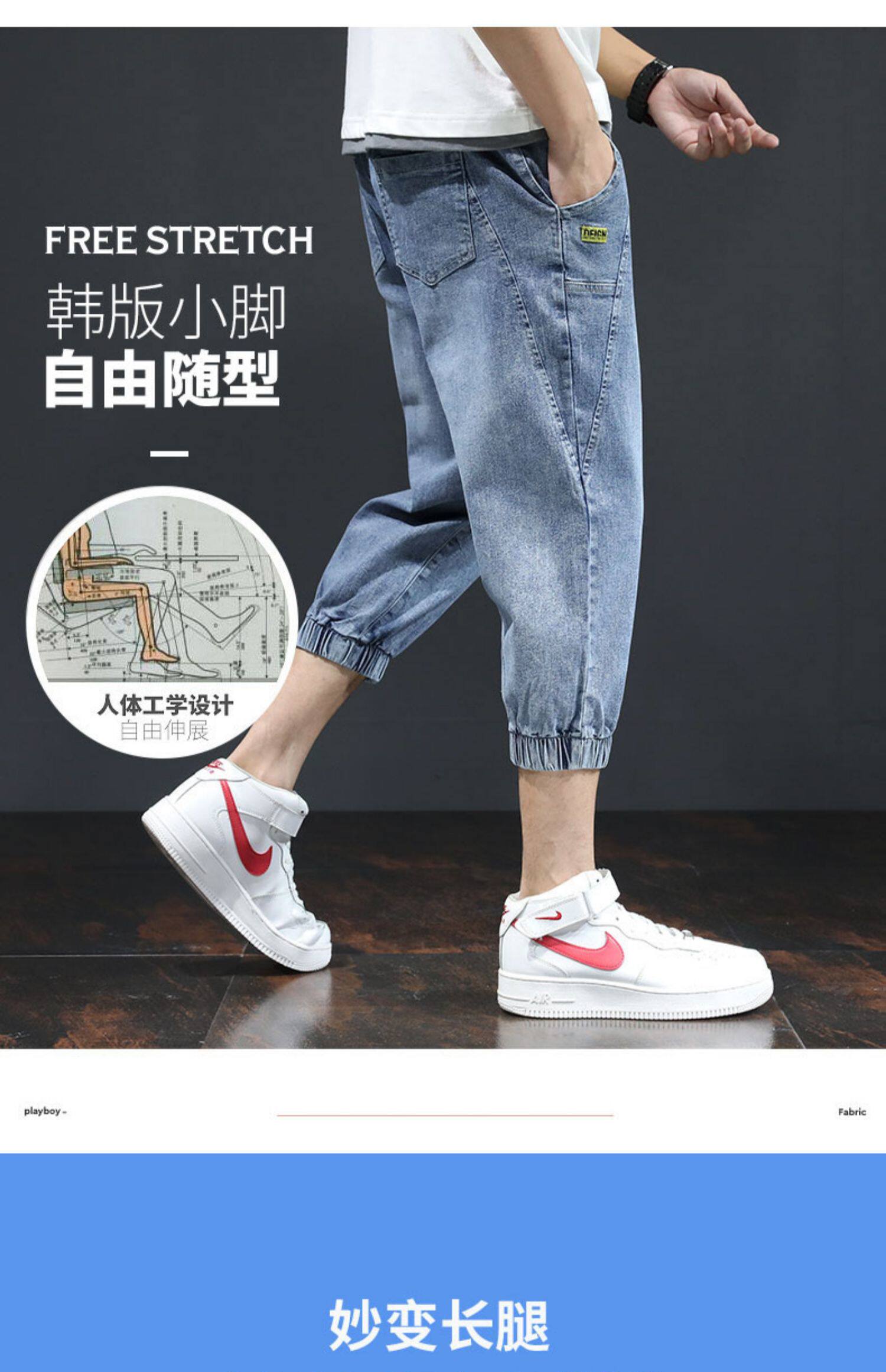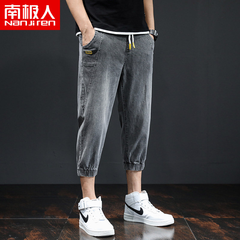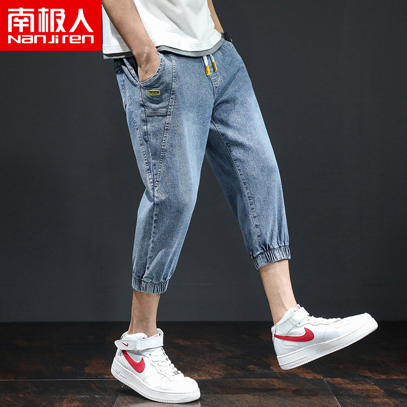Летние тонкие трендовые джинсы, эластичные штаны для отдыха, в корейском стиле