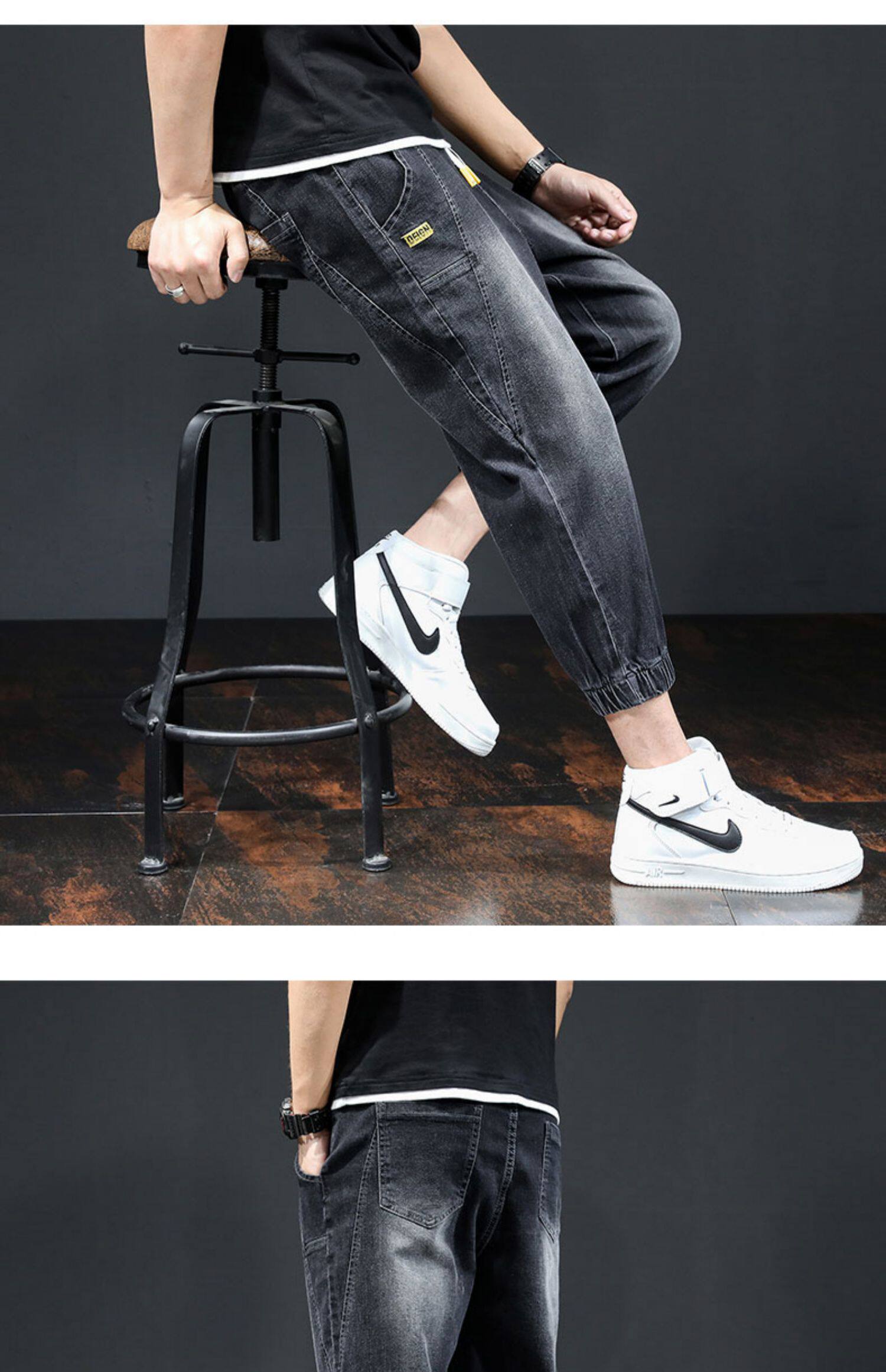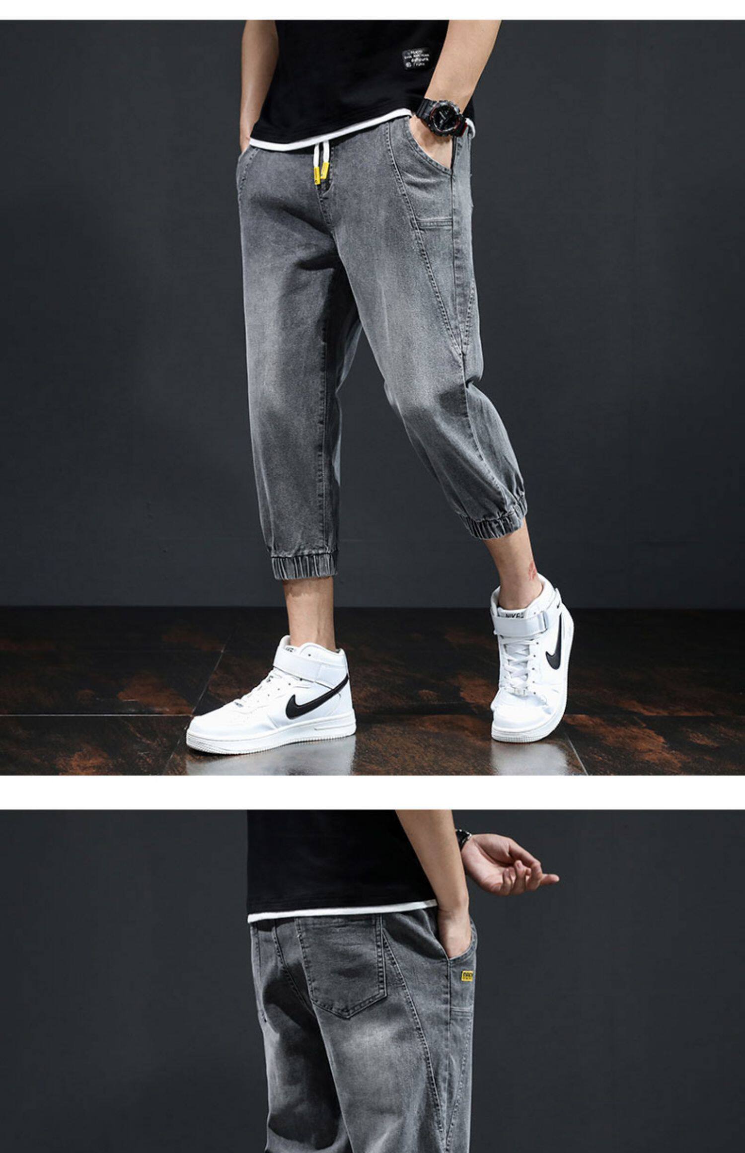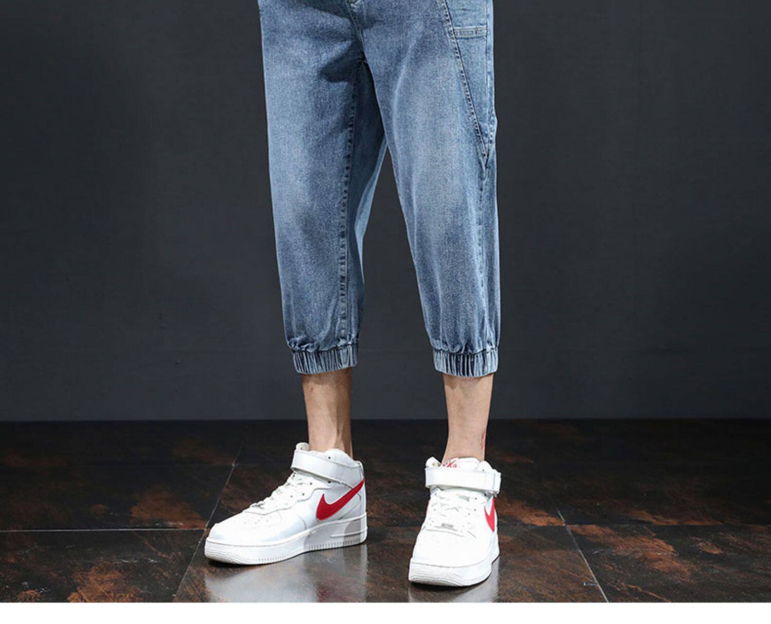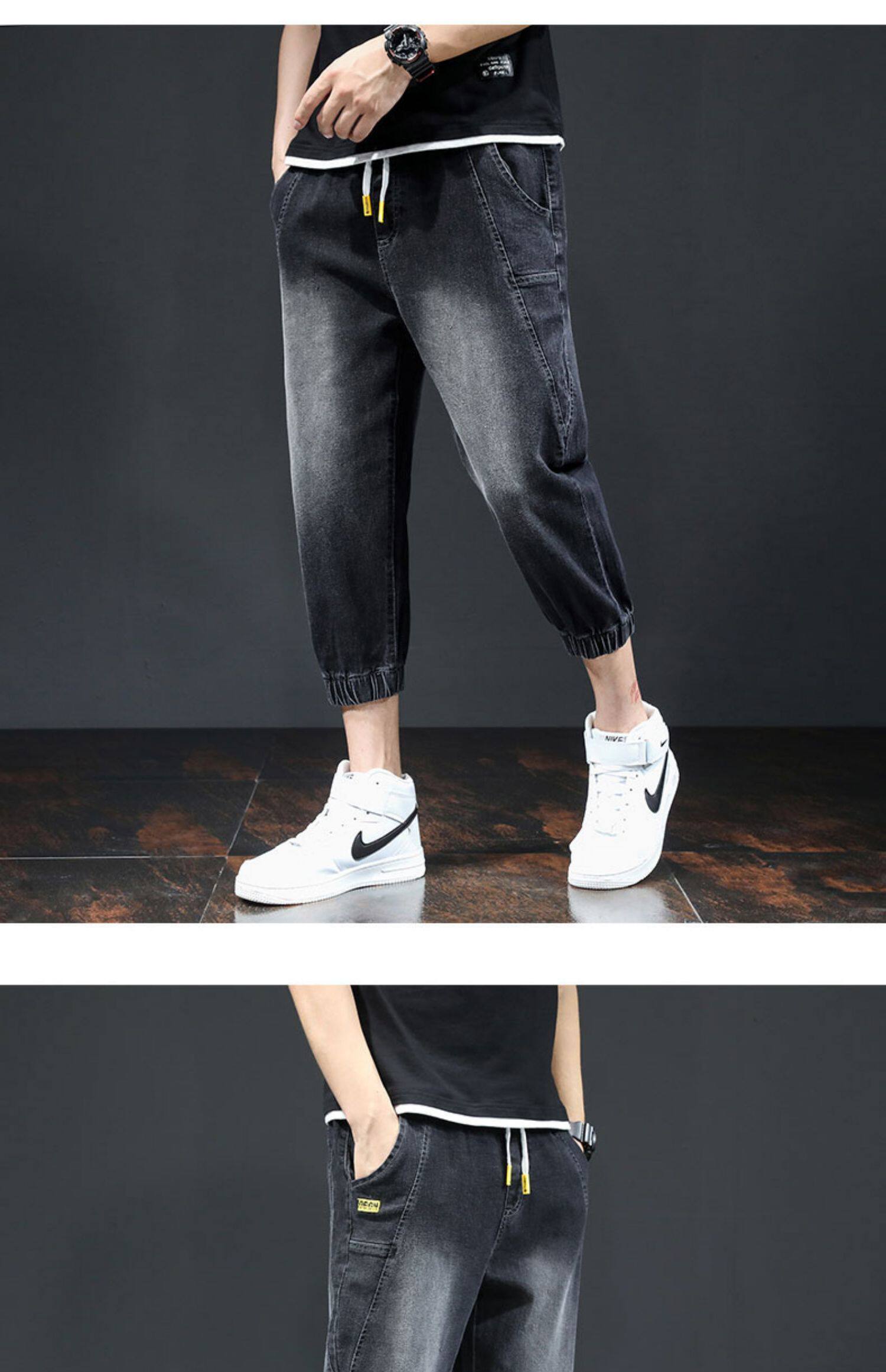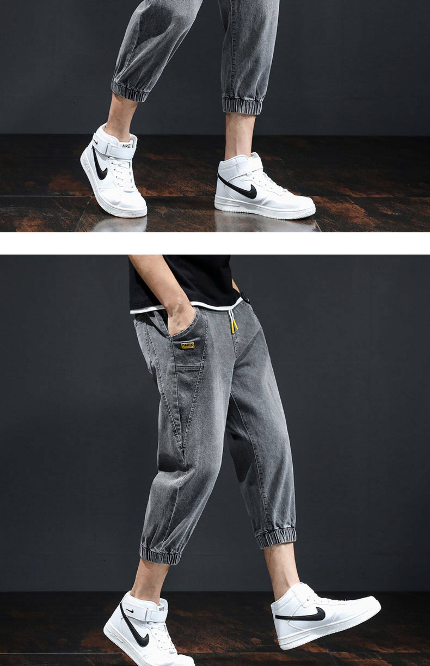 Летние тонкие трендовые джинсы, эластичные штаны для отдыха, в корейском стиле