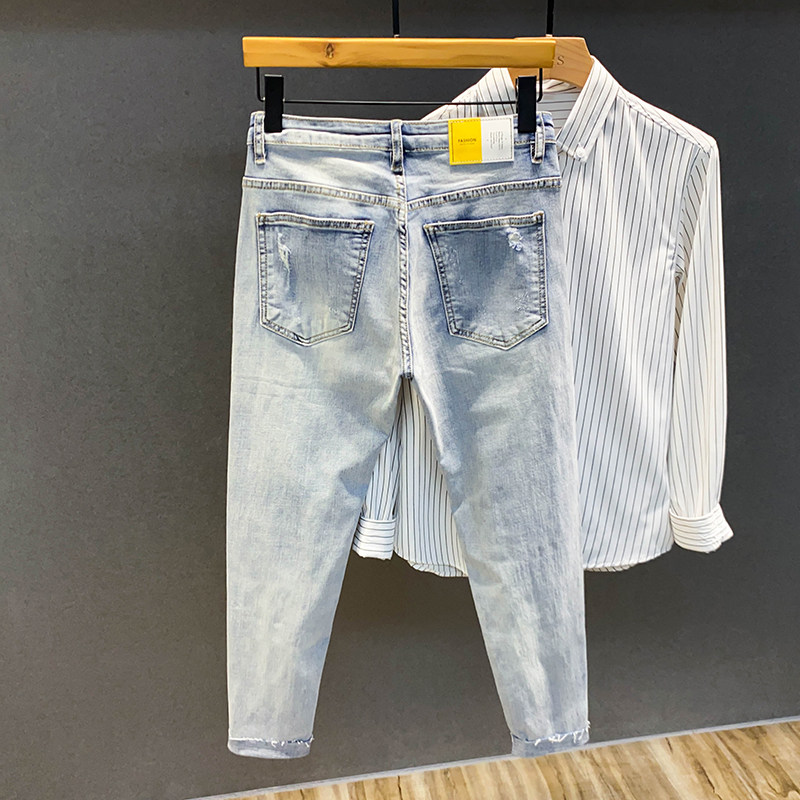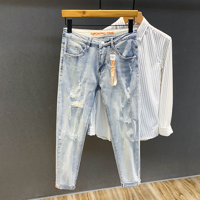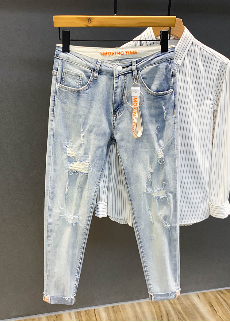Летние светлые джинсы, штаны, облегающий крой, в корейском стиле