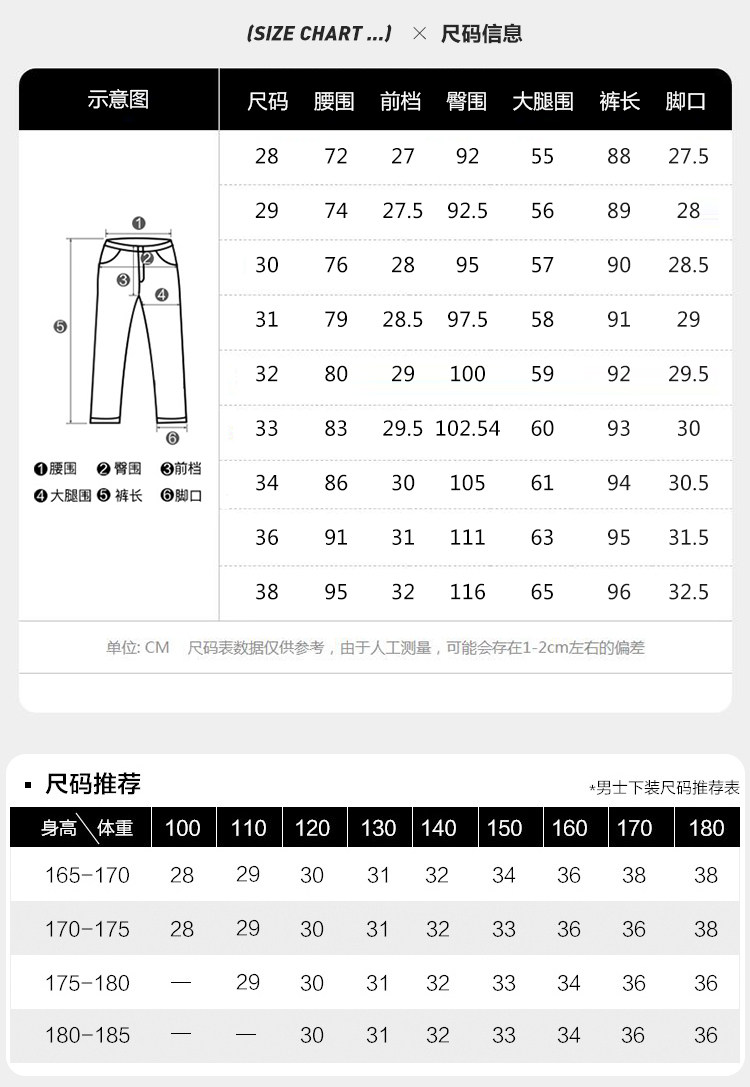 | Размер: | 28 [95-105 Catties], 29 [105-115 Catties], 30 [115-125 Catties], 31 [125-135 Catties], 32 [135-145 Catties], 33 [145-155 Catties], 34 [155-165 Catties], 36 [165-175 Catties], 38 [175-185 Catties] |