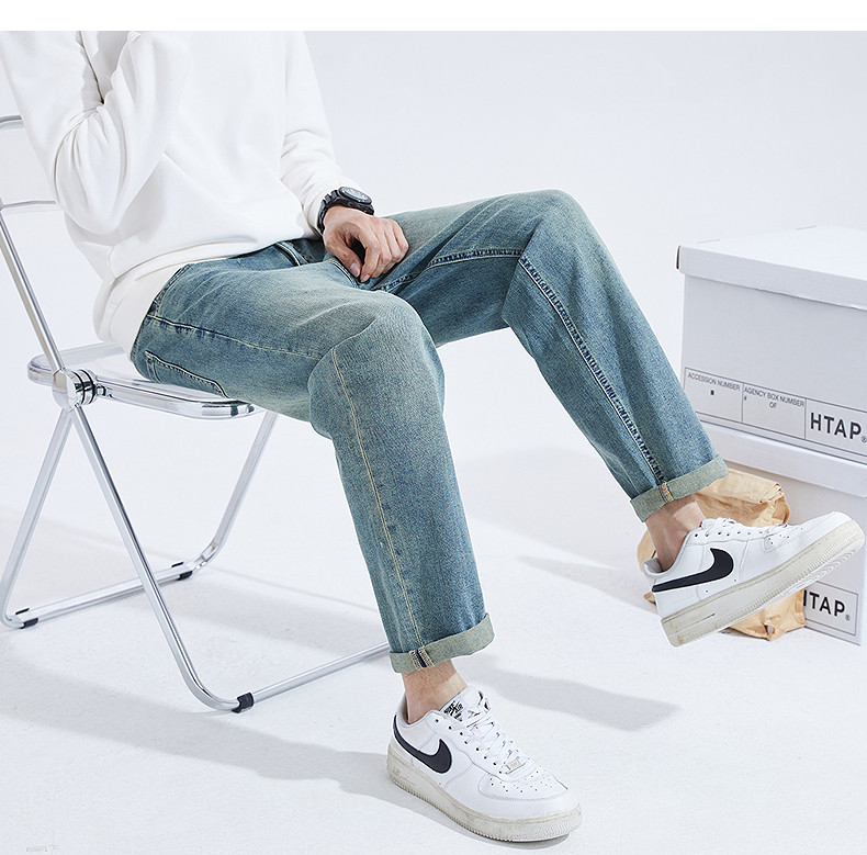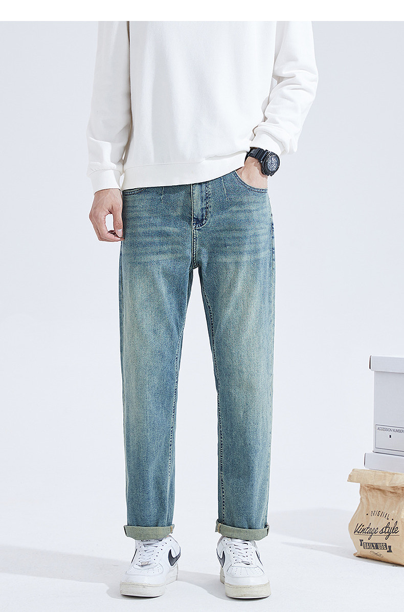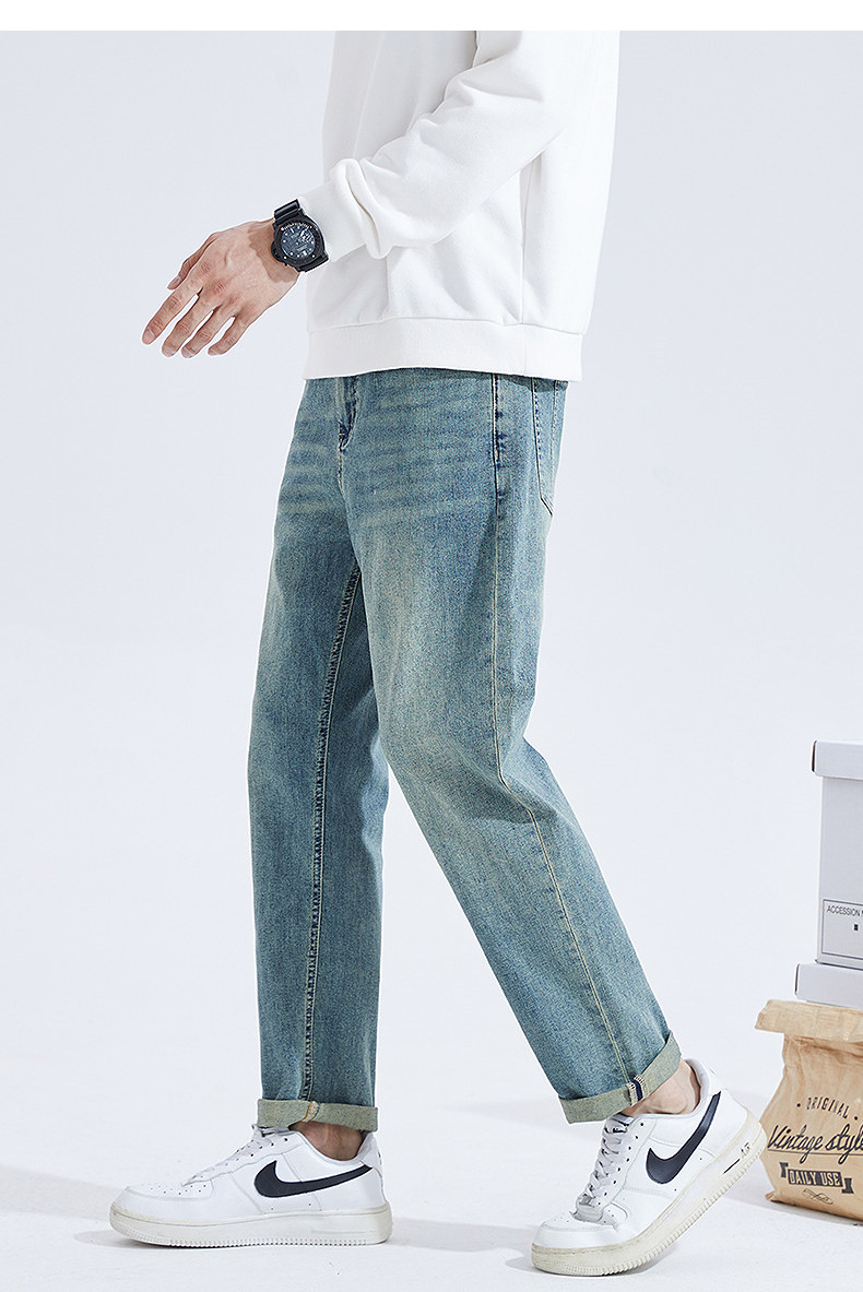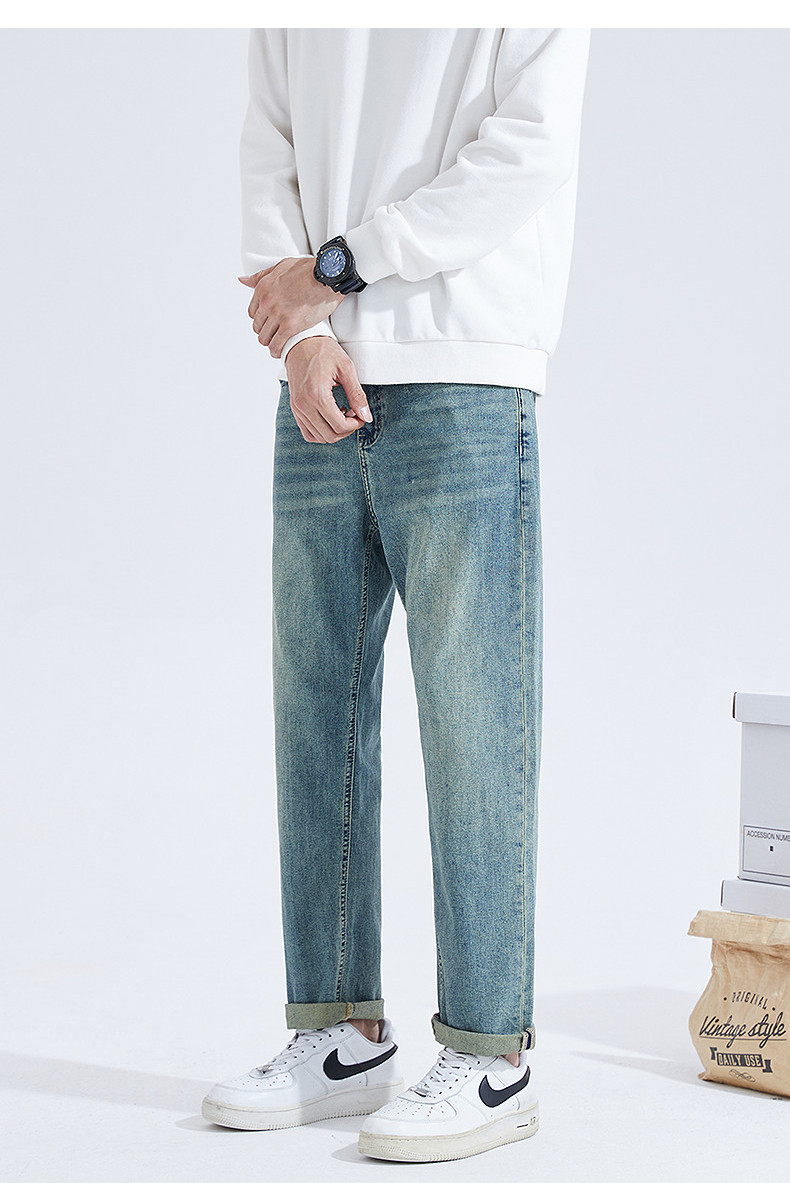 Летние осенние джинсы, тонкие повседневные брюки, свободный прямой крой, в корейском стиле, в американском стиле