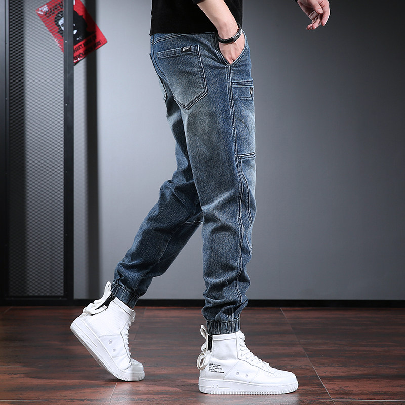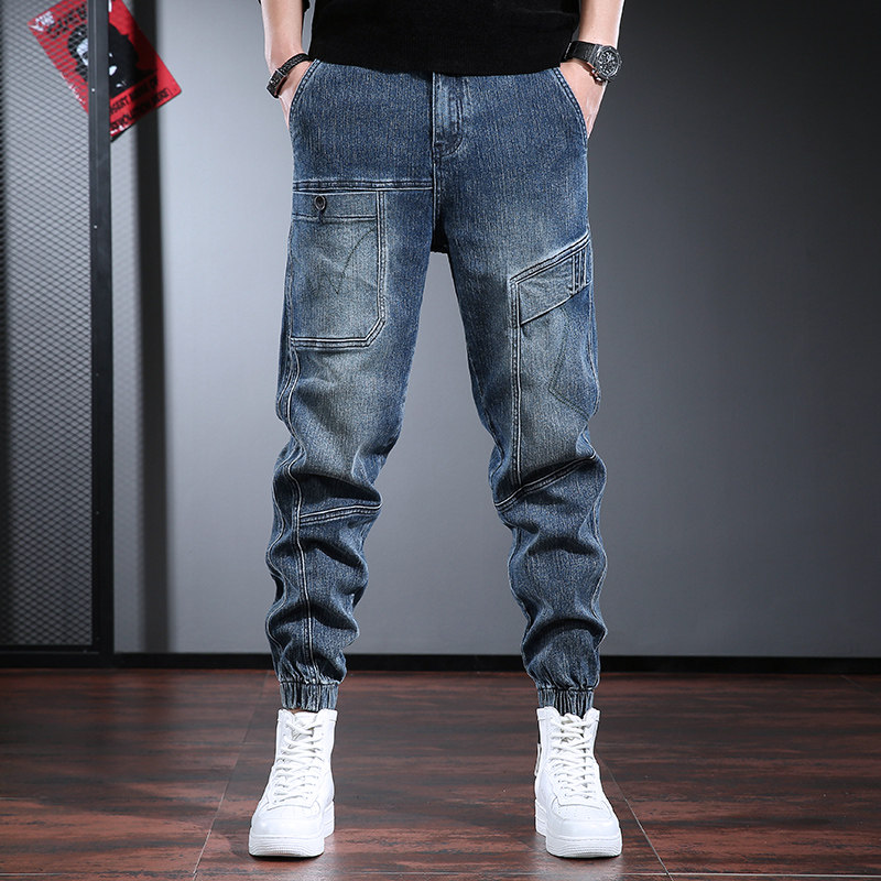 Джинсы, демисезонные синие ретро трендовые штаны