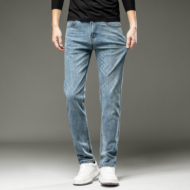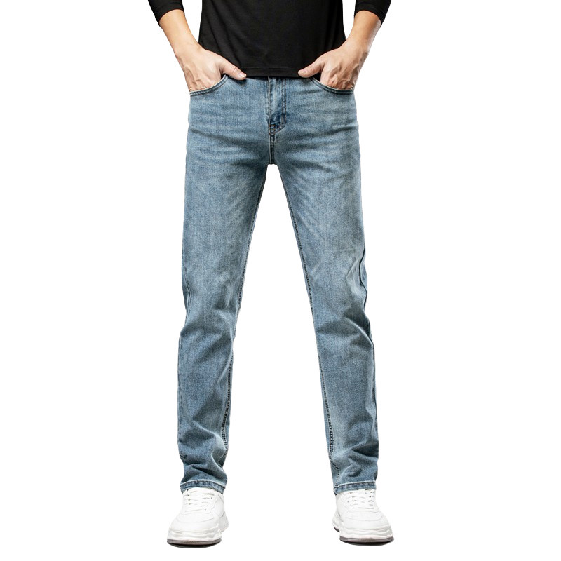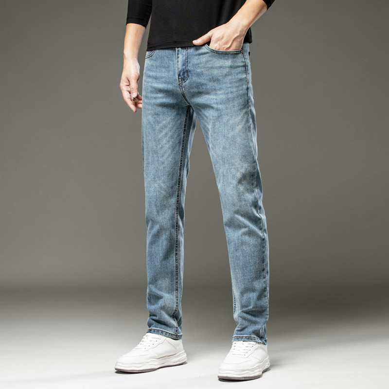 Осенние прямые свободные джинсы, штаны, эластичные повседневные брюки