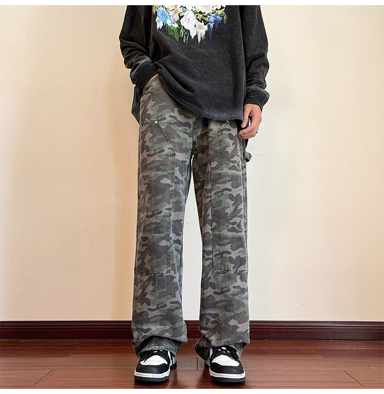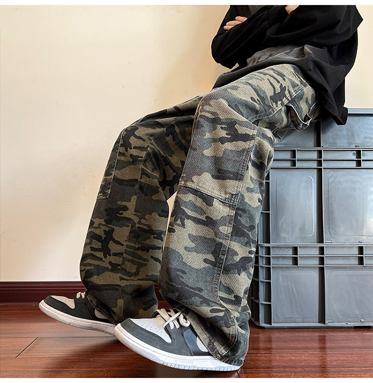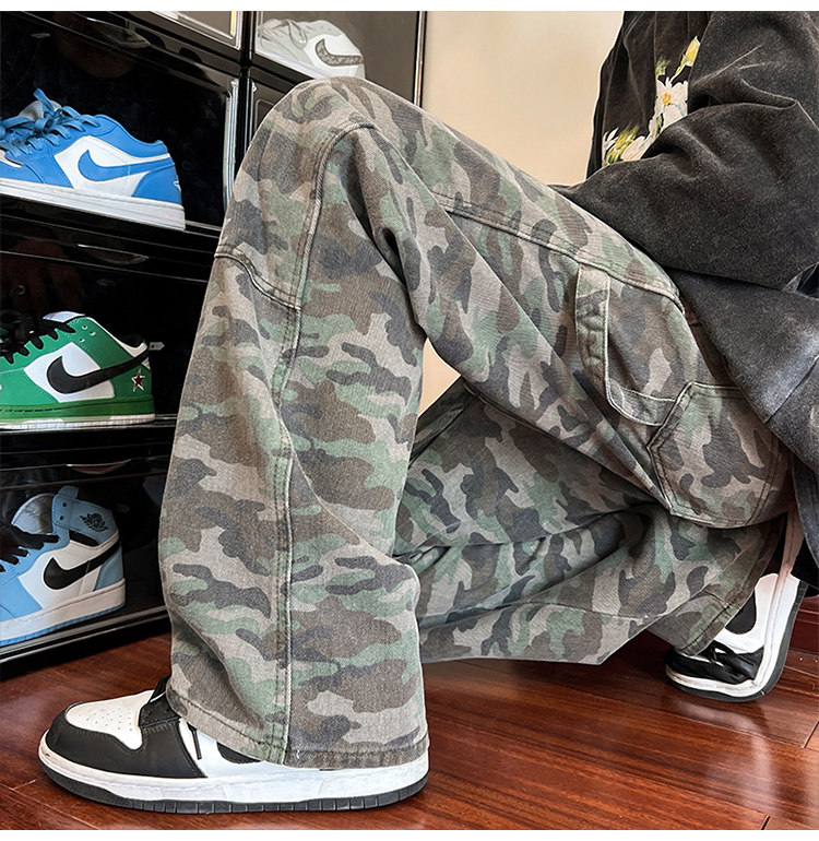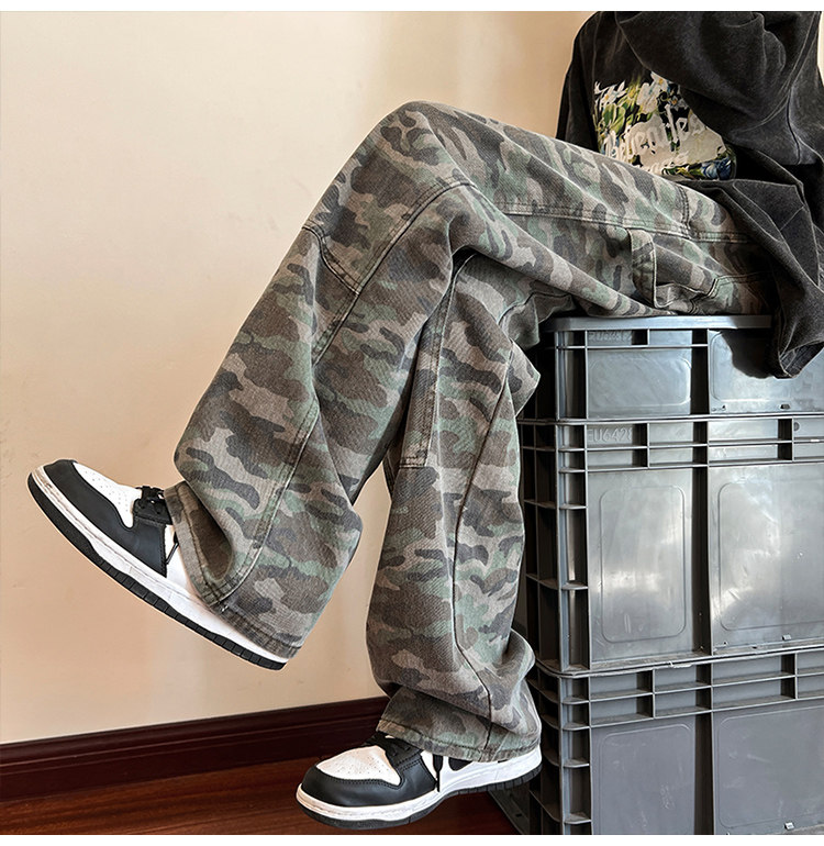 Камуфляжные ретро джинсы, брендовые штаны, в американском стиле, свободный прямой крой