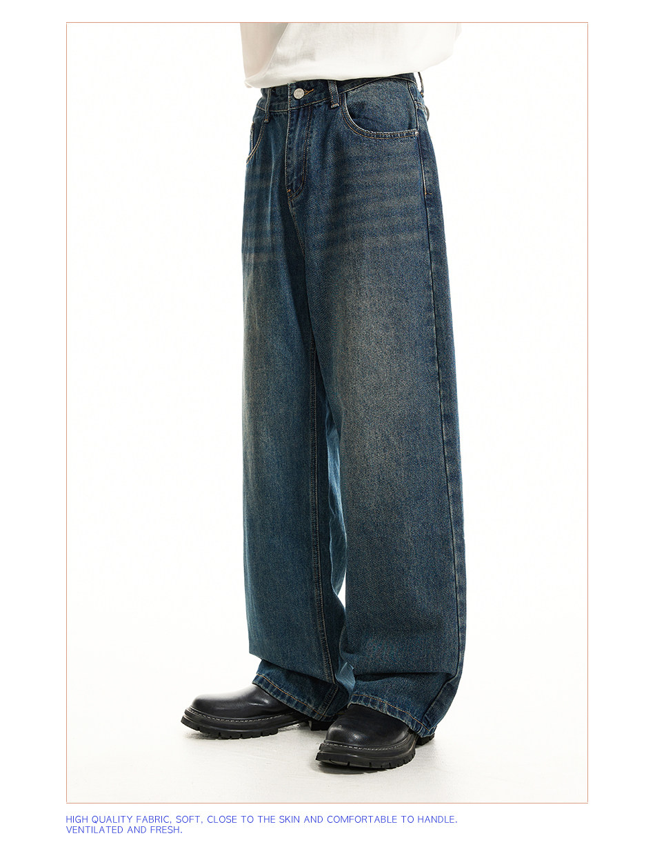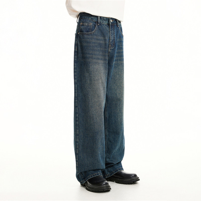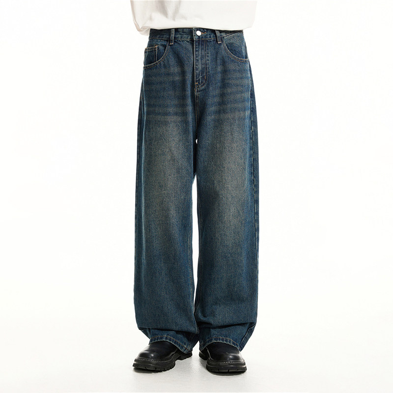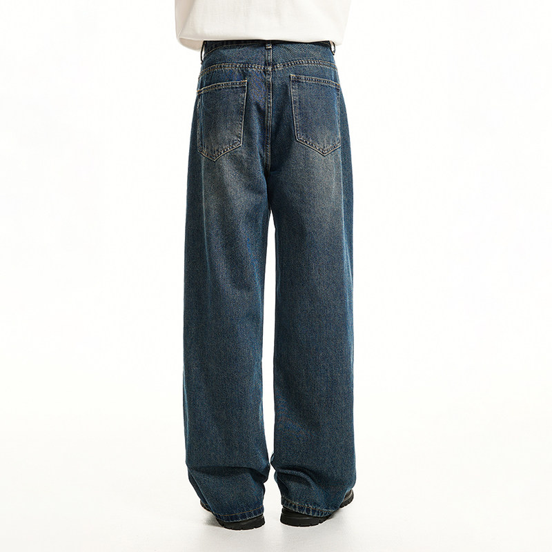 Voguo Relay Оригинальные джинсы подходит для мужчин и женщин, штаны, в корейском стиле, свободный прямой крой