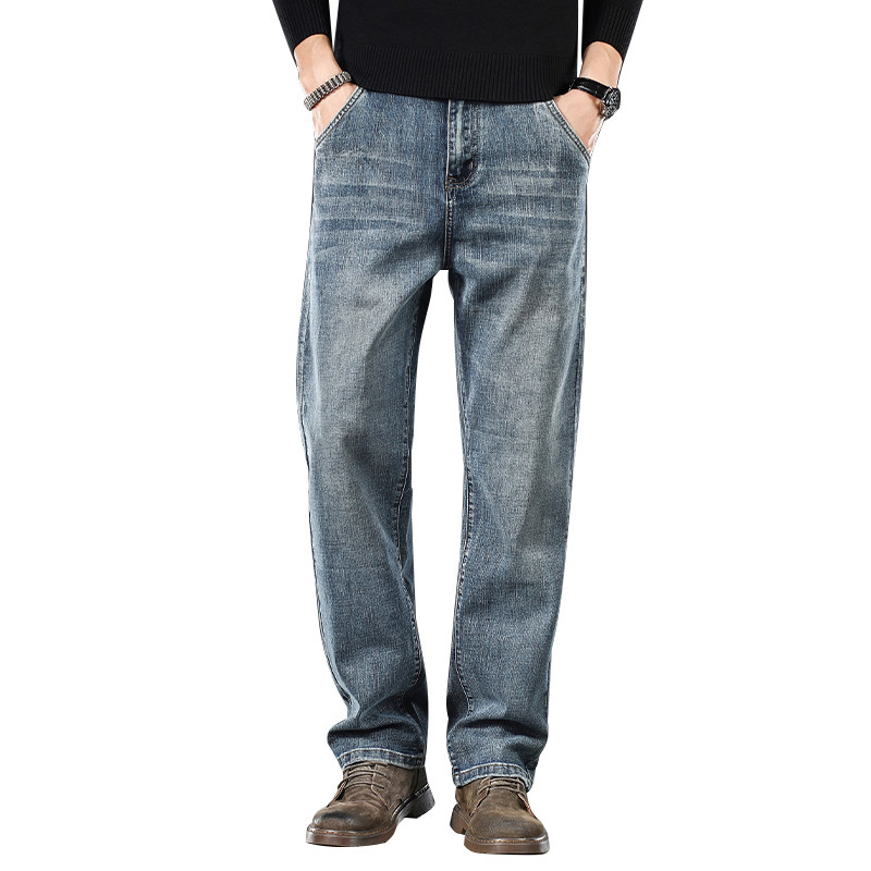 Элитные прямые свободные джинсы, эластичные тонкие штаны для отдыха