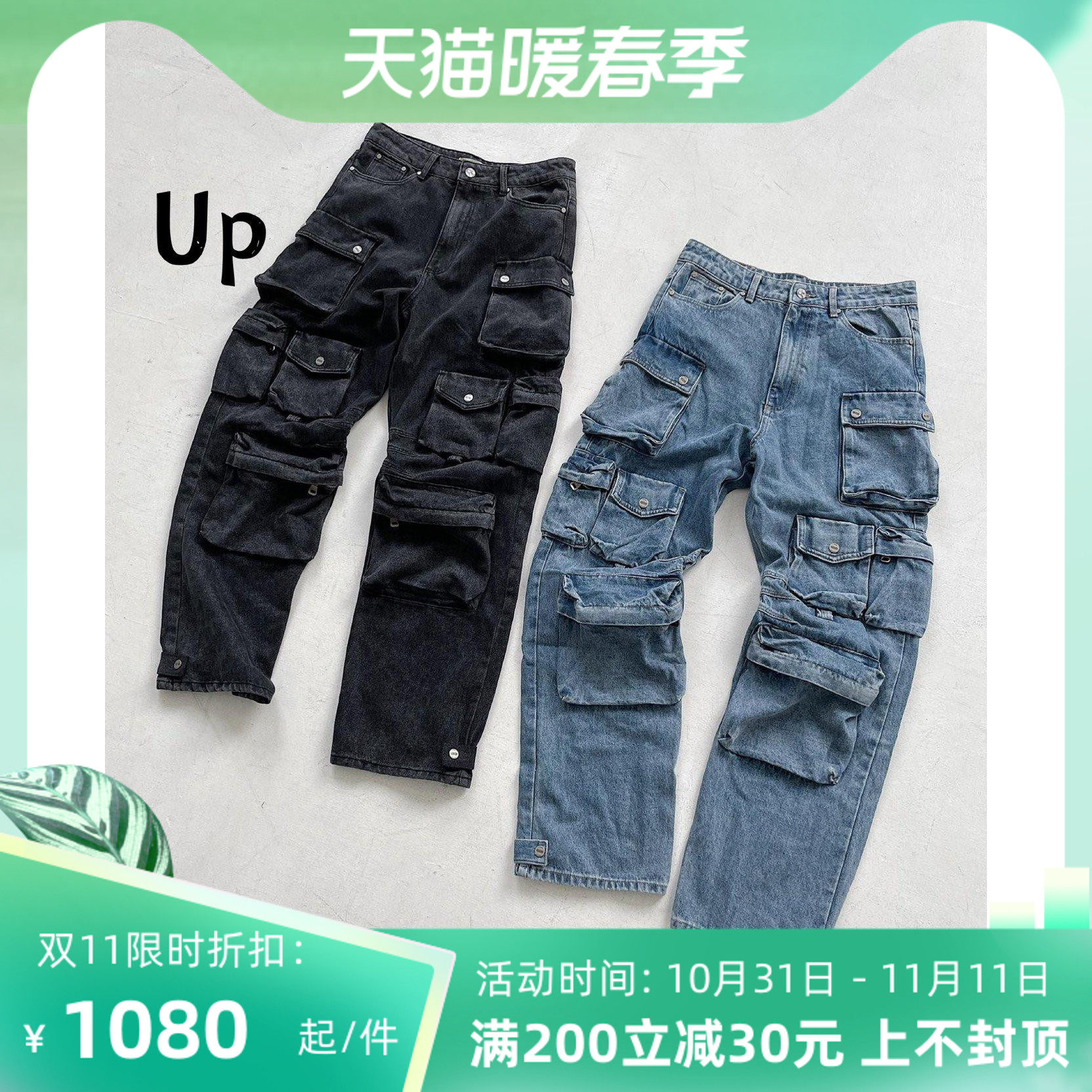 [Домашнее место] Epide 22FW Джинсы вымыты много -карманные артиллерийские счета Джинсы