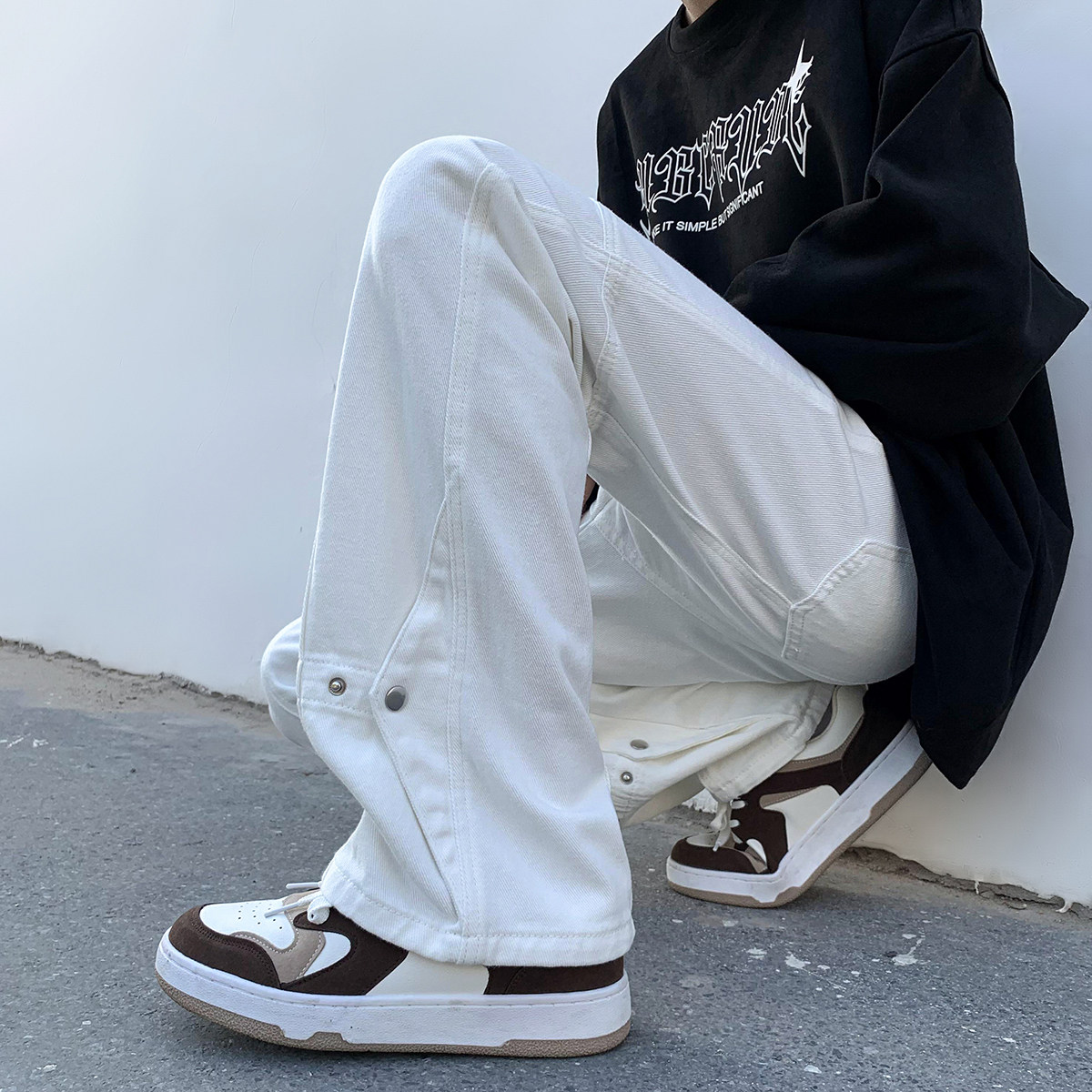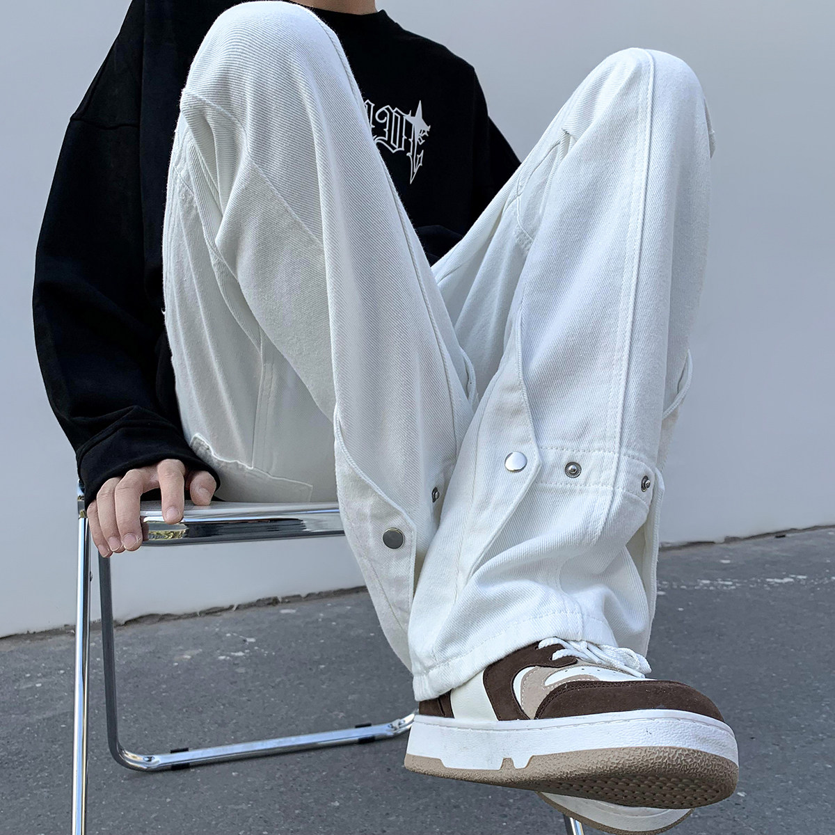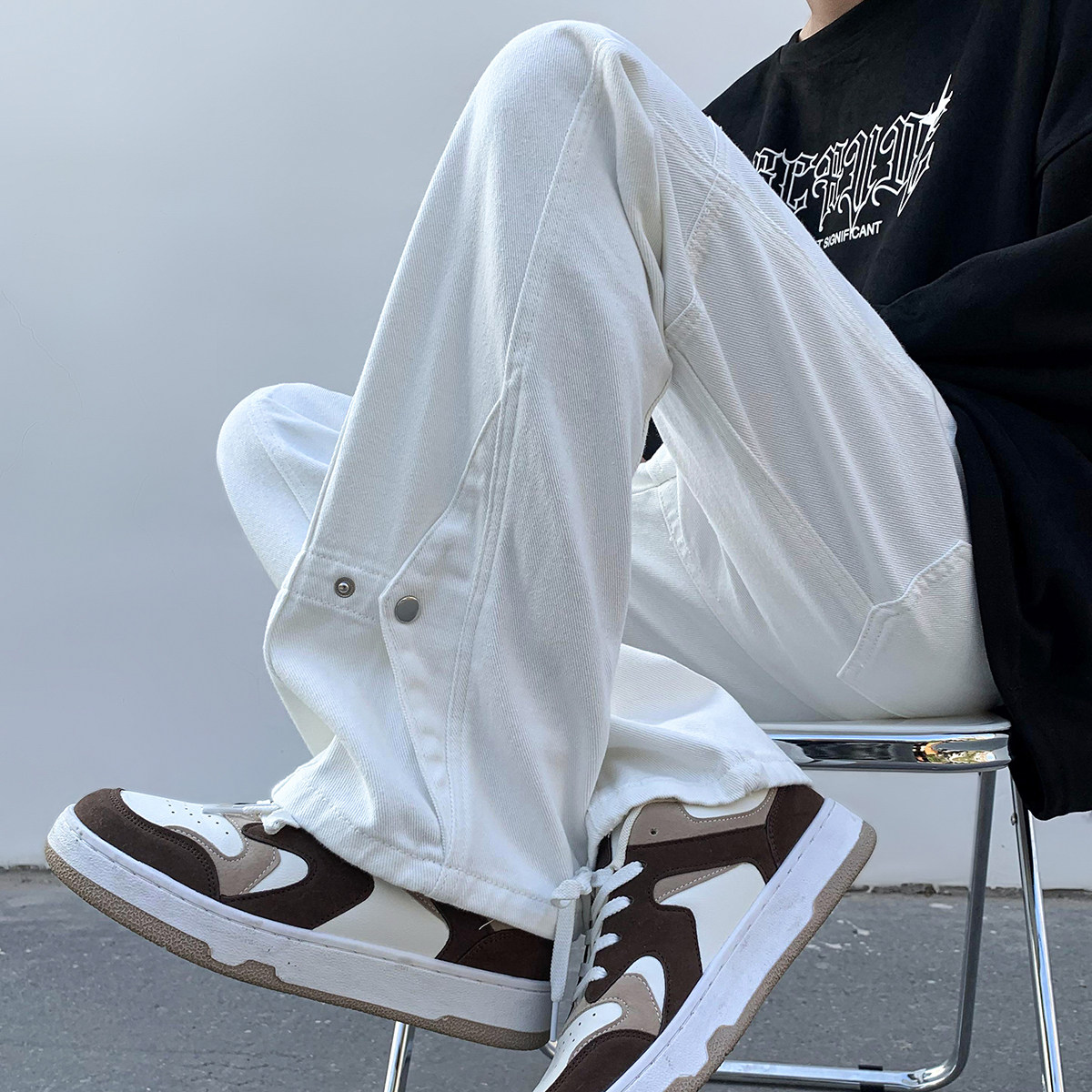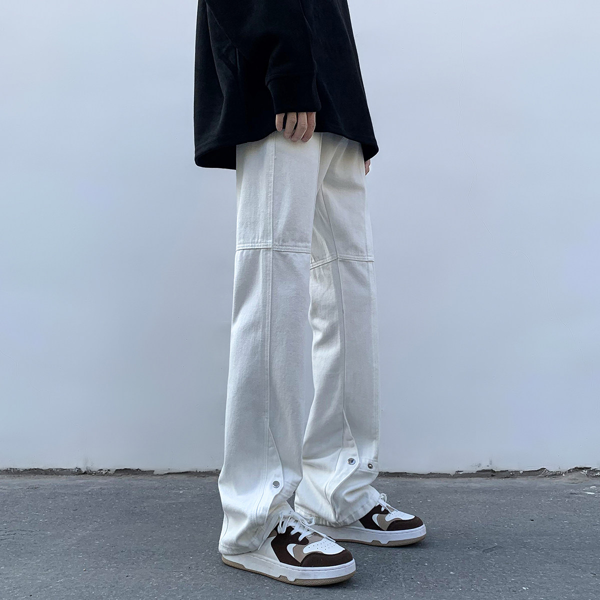Белые летние джинсы, трендовые штаны, повседневные брюки, в американском стиле, свободный прямой крой