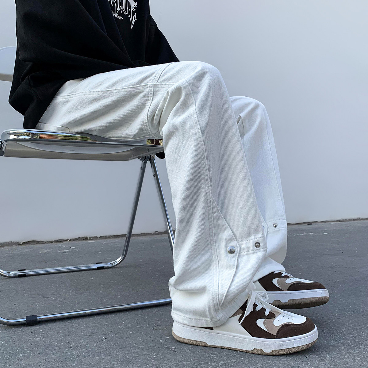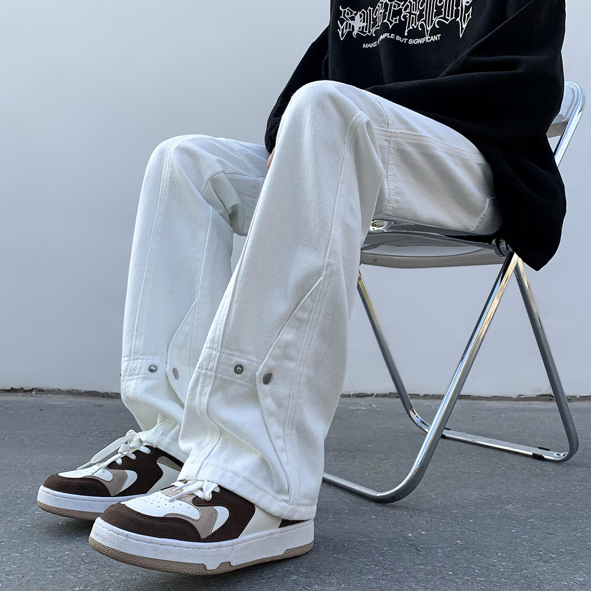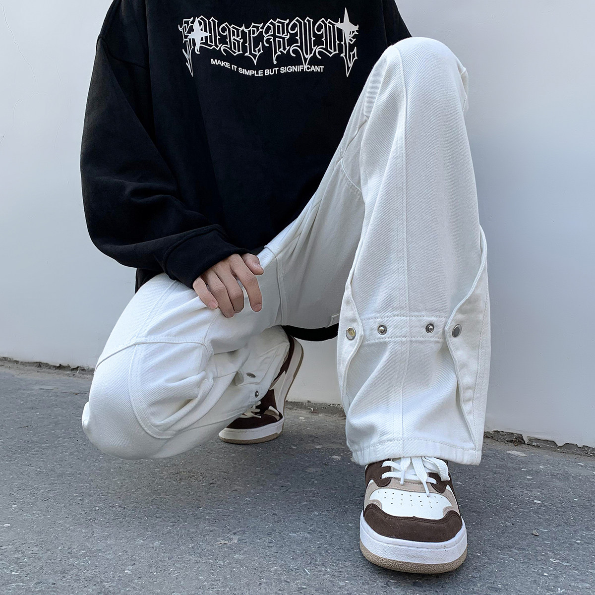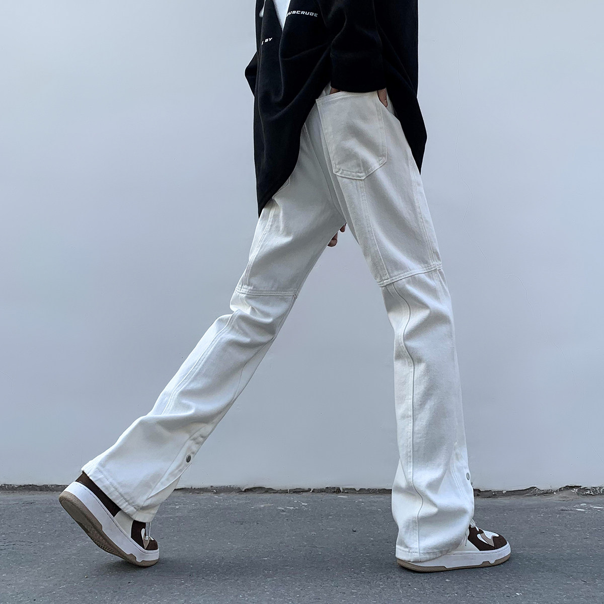 Белые летние джинсы, трендовые штаны, повседневные брюки, в американском стиле, свободный прямой крой