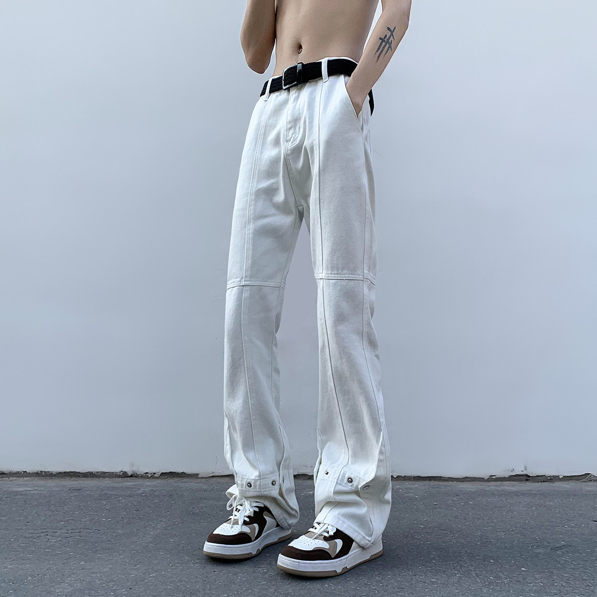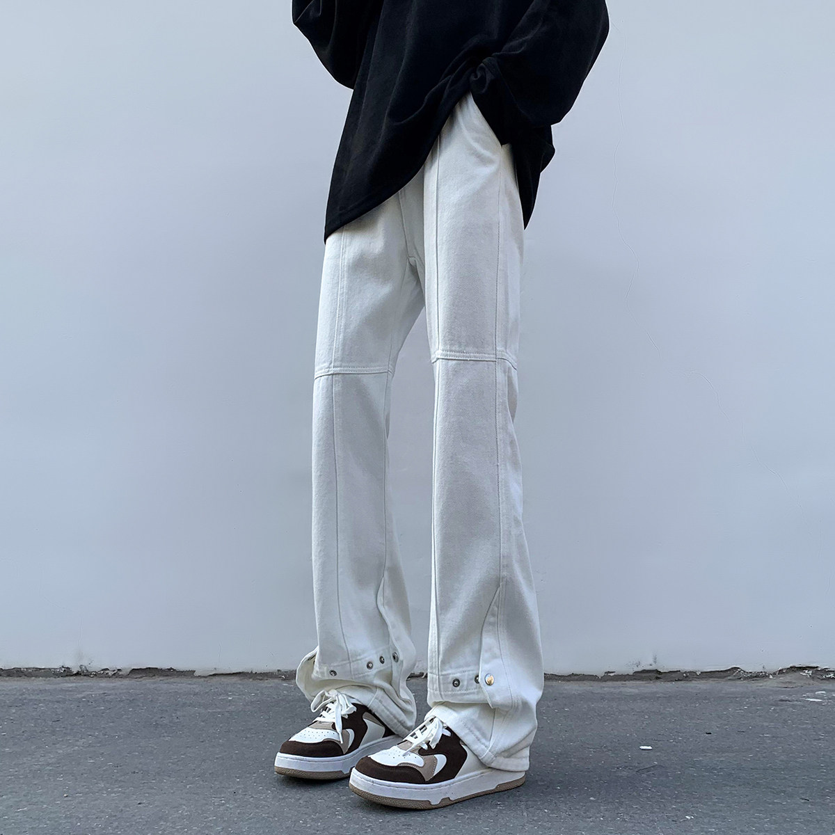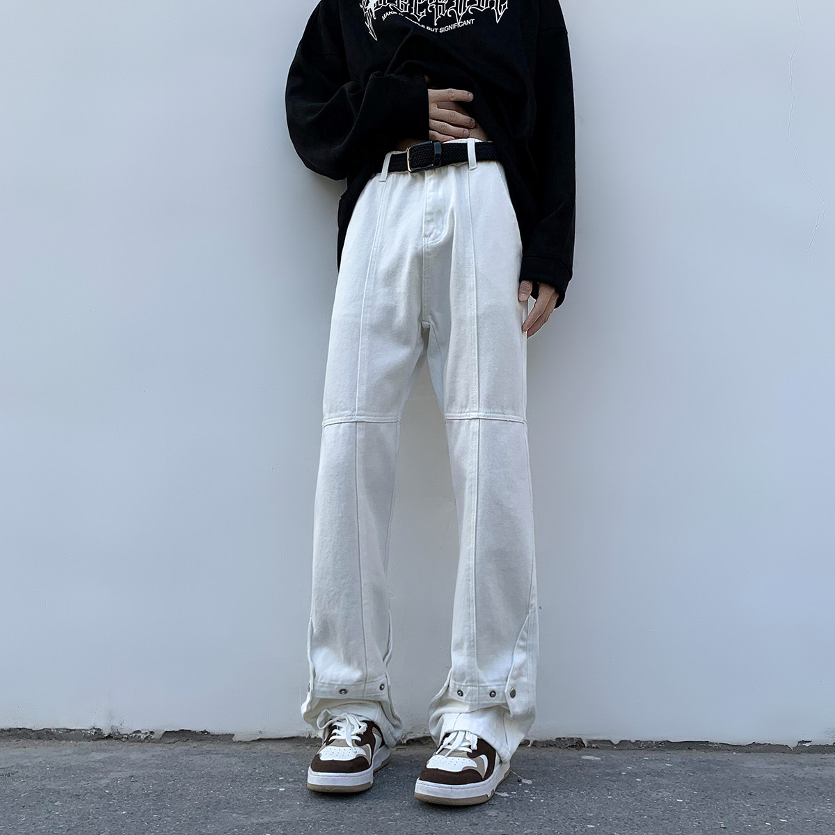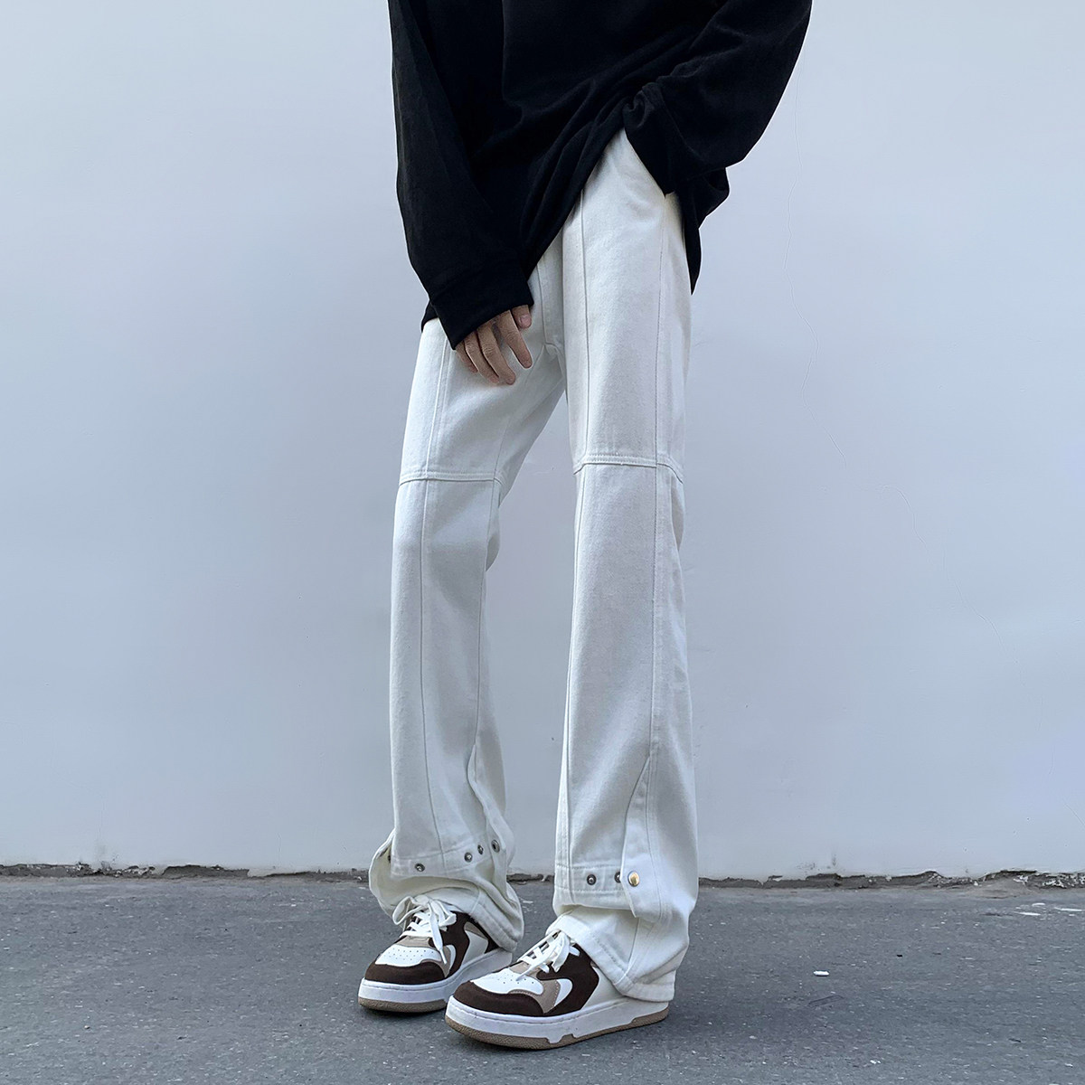 Белые летние джинсы, трендовые штаны, повседневные брюки, в американском стиле, свободный прямой крой