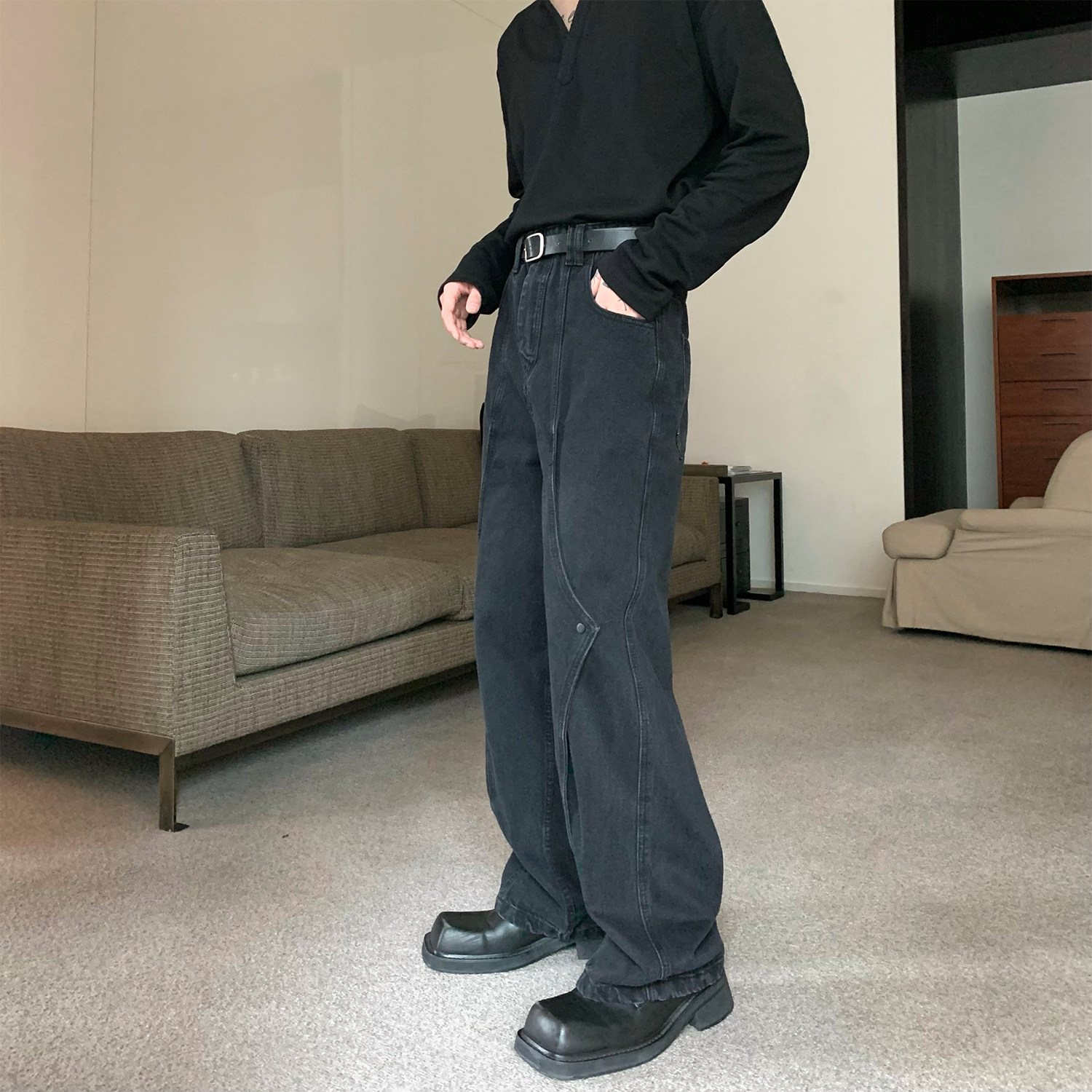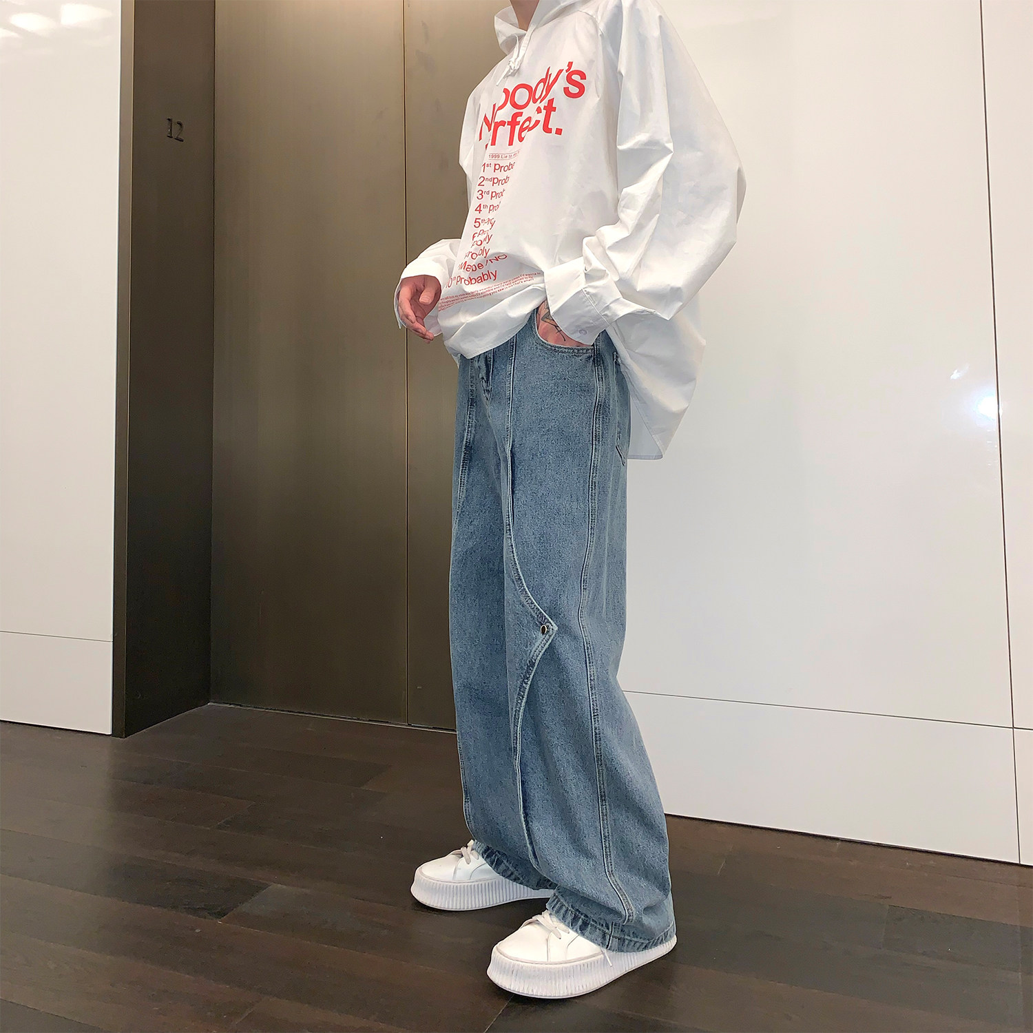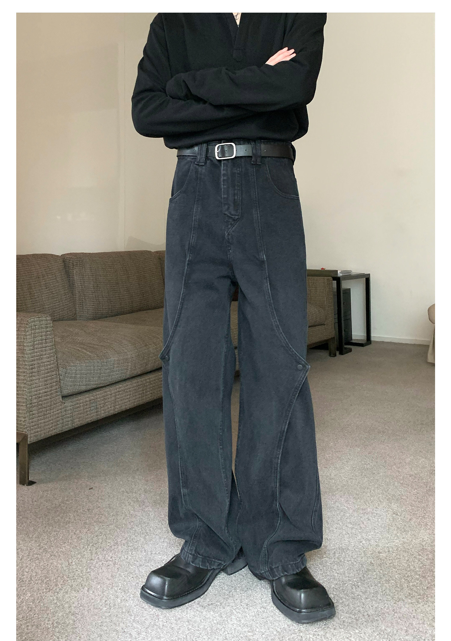 Дизайнерские прямые свободные джинсы, штаны, оверсайз, свободный крой, высокая талия