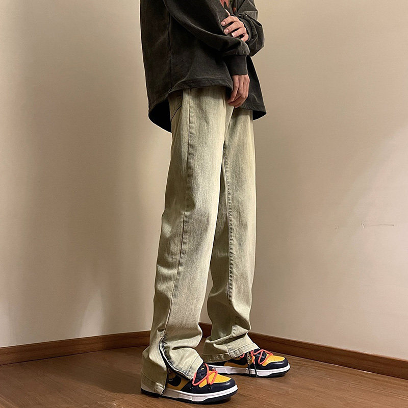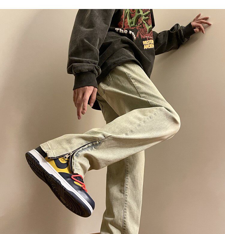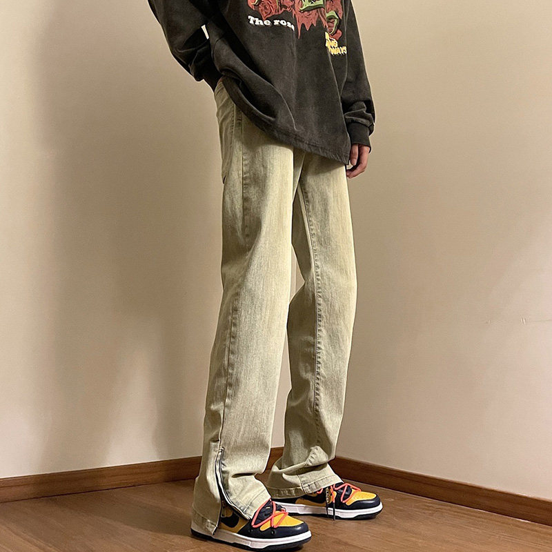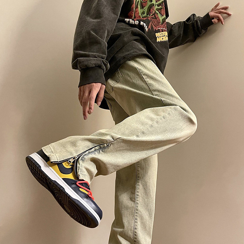 Весенние небольшие дизайнерские джинсы, штаны с молнией, тренд сезона, на молнии, свободный прямой крой