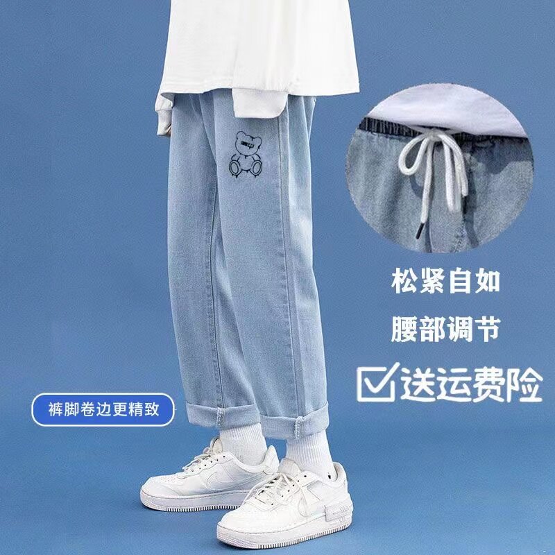 Джинсы, брендовые штаны, в американском стиле, свободный прямой крой