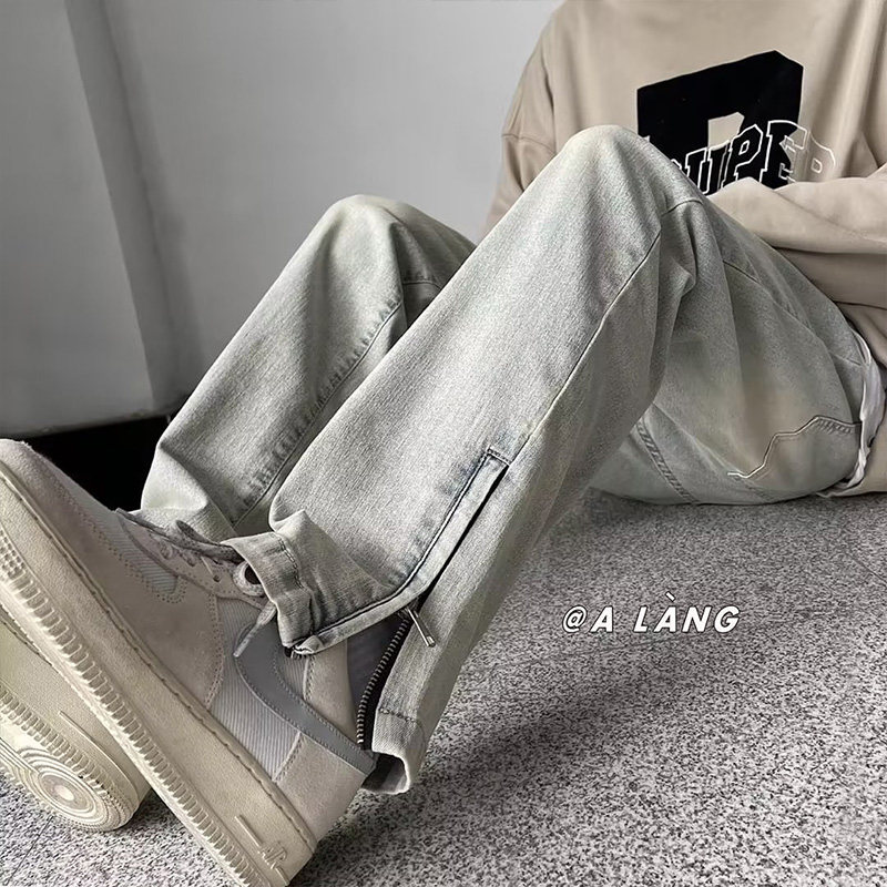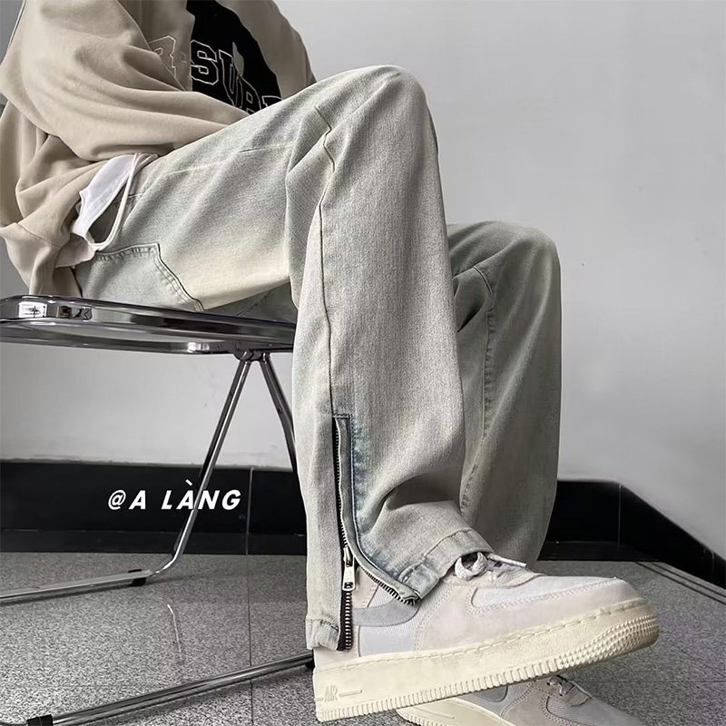 Летние джинсы, ретро штаны с молнией, в американском стиле, свободный прямой крой