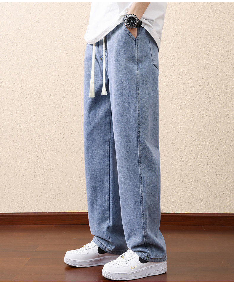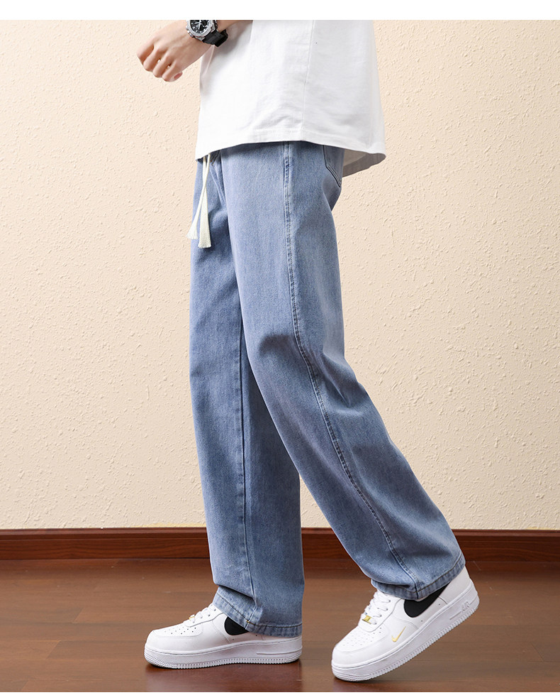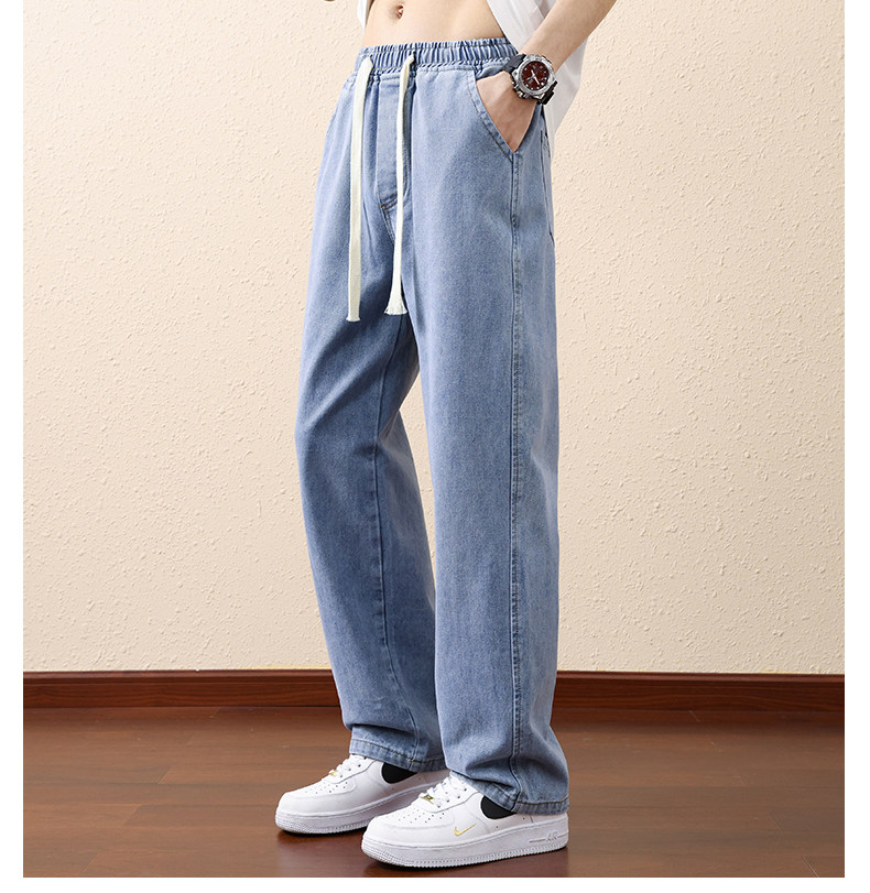 Синие летние тонкие джинсы, штаны для отдыха, в американском стиле, свободный прямой крой, подходит для подростков