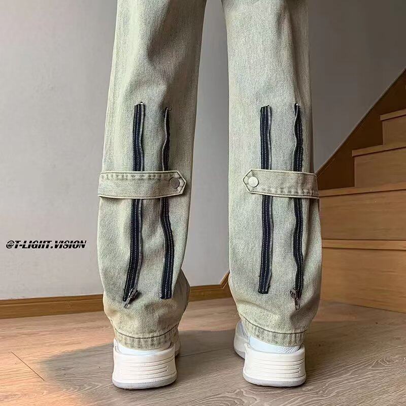 Tide, летние джинсы с молнией в стиле хип-хоп, трендовые штаны, 2023, свободный прямой крой