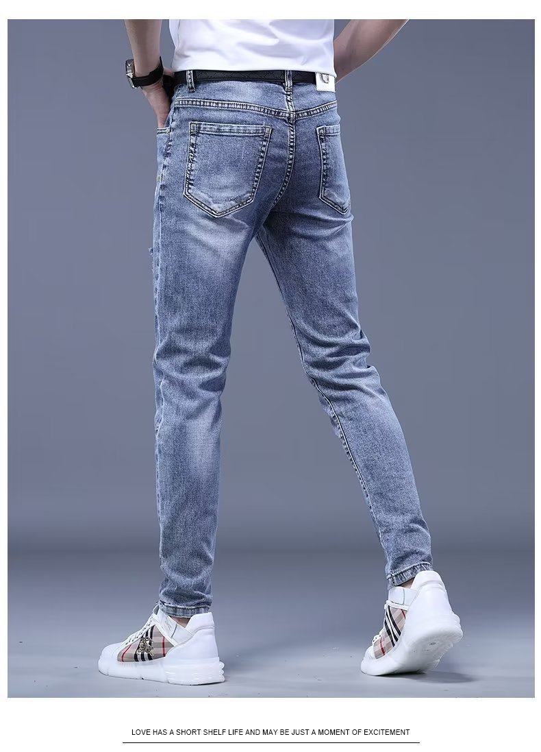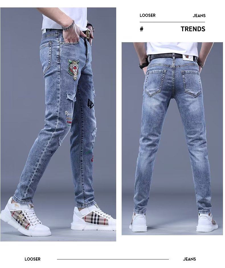 Летние джинсы, мужские эластичные штаны для отдыха, европейский стиль, с вышивкой