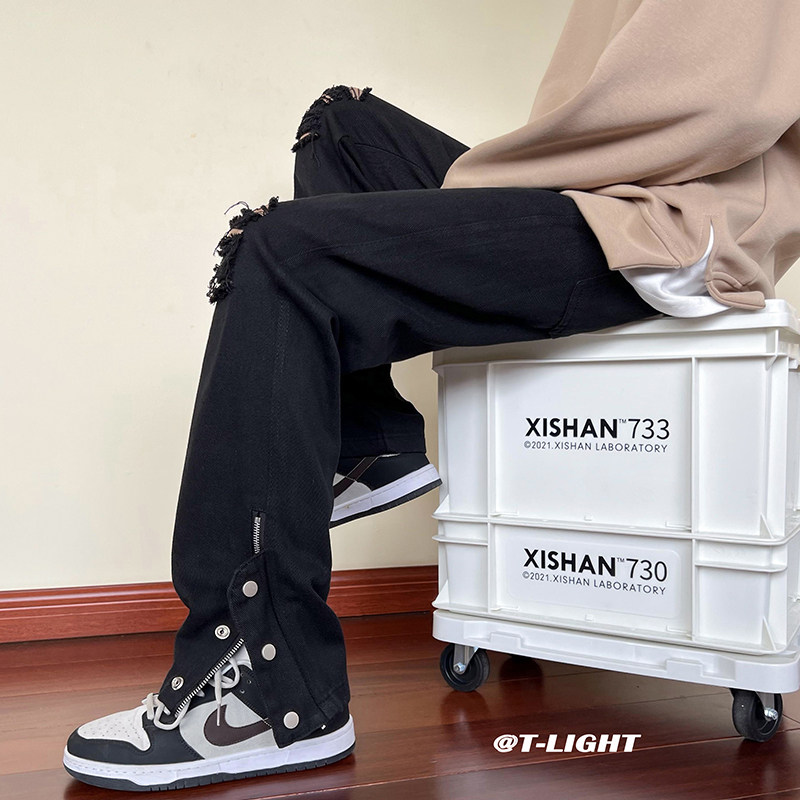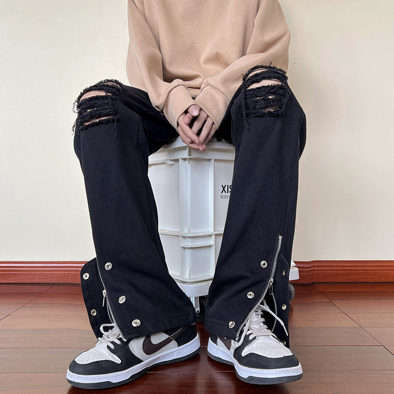 Черные джинсы, штаны, свободный прямой крой, в американском стиле, 2024 года