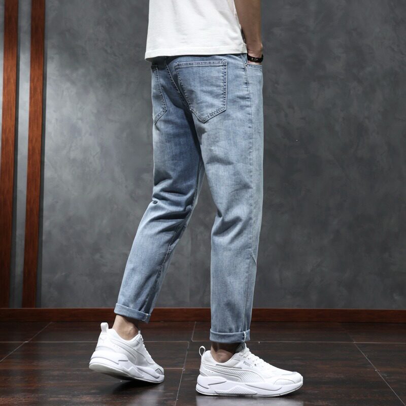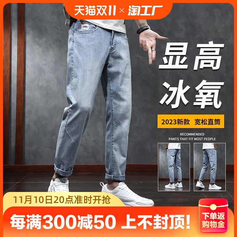 Светлые летние тонкие прямые свободные джинсы, эластичные штаны, свободный прямой крой, коллекция 2023