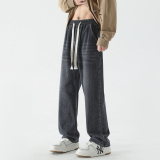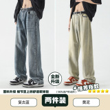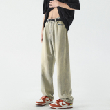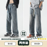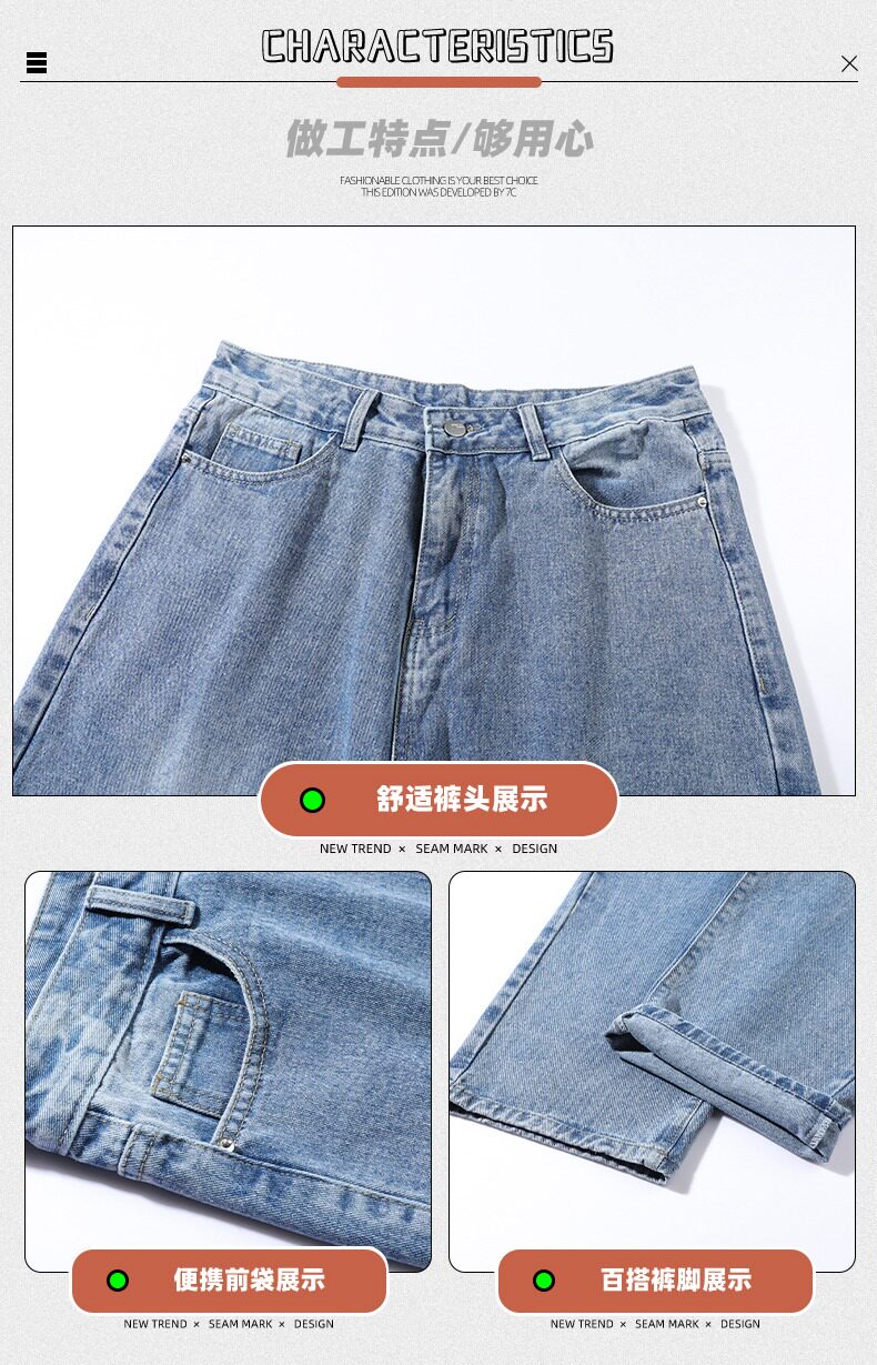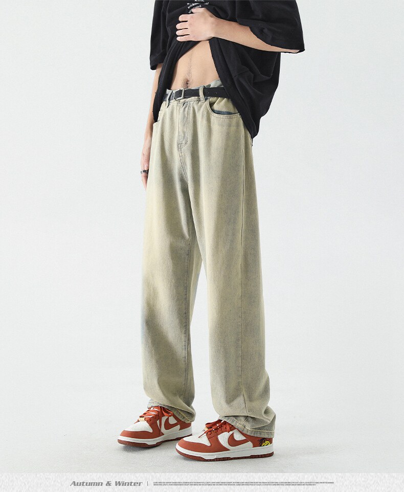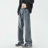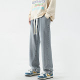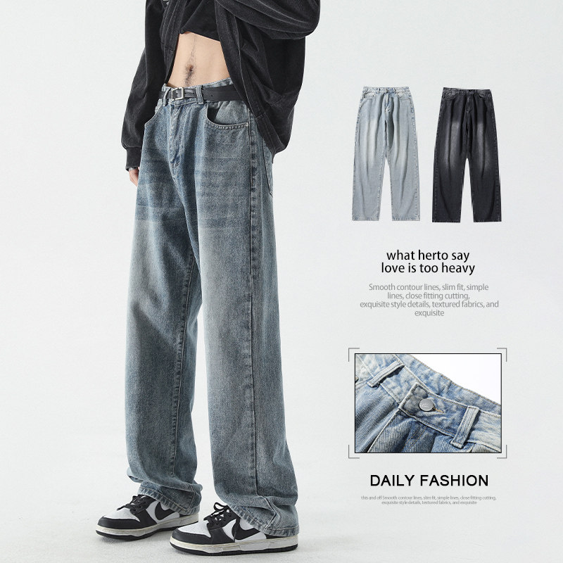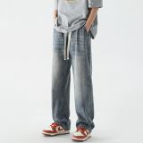 Летние джинсы, штаны, в американском стиле, свободный прямой крой