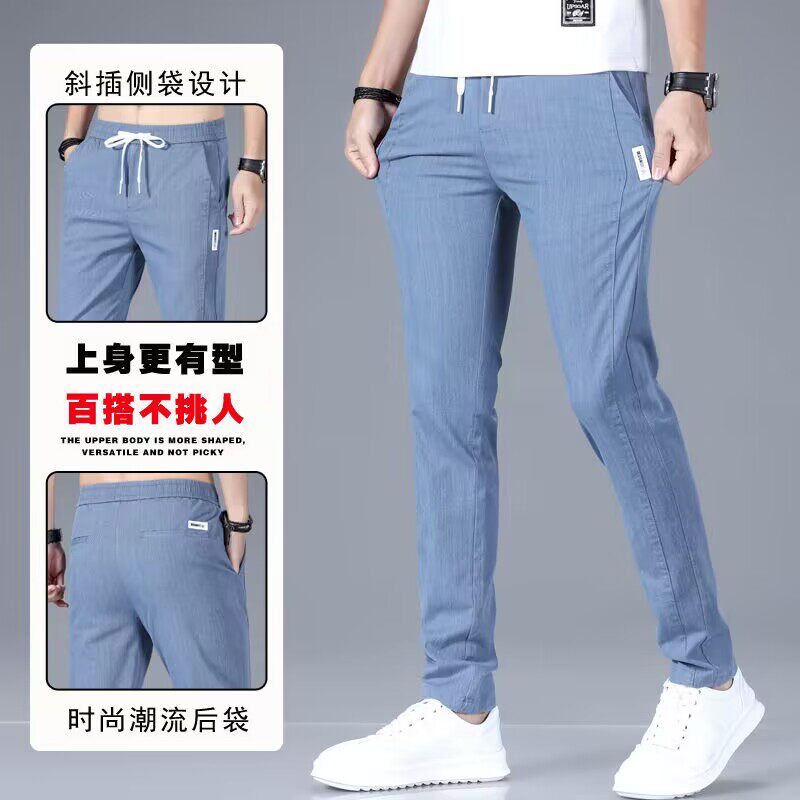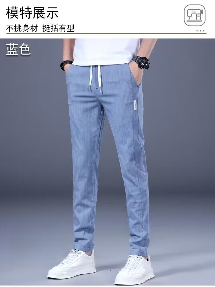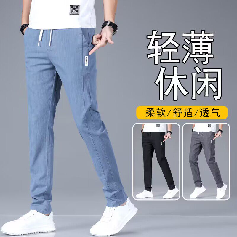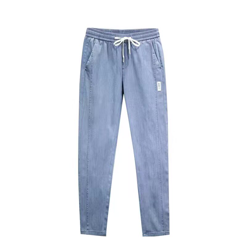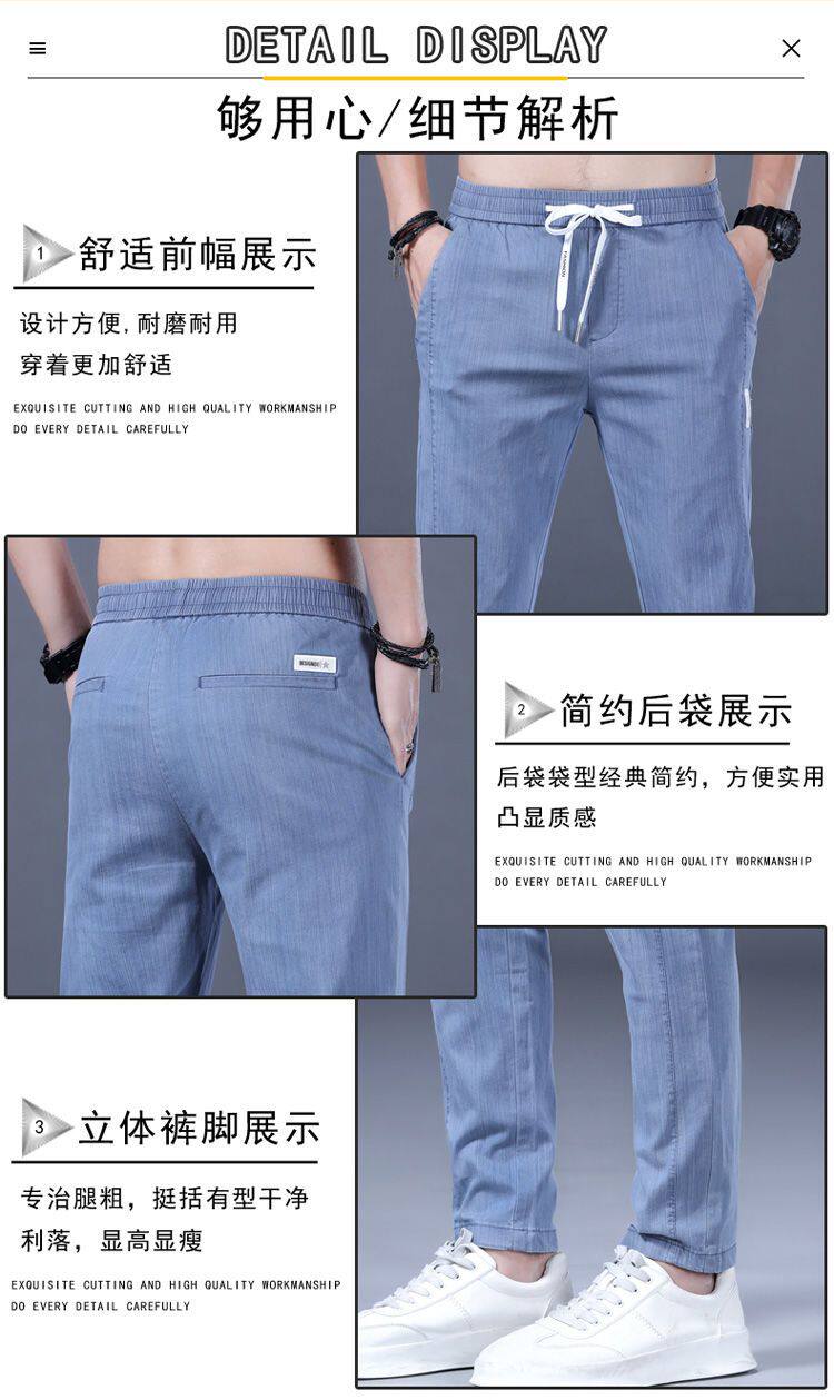 Летние трендовые джинсы, универсальные тонкие штаны для отдыха, свободный прямой крой, эластичная талия