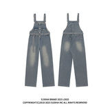 Дизайнерский джинсовый комбинезон в стиле хип-хоп подходит для мужчин и женщин, штаны, тренд сезона, свободный прямой крой