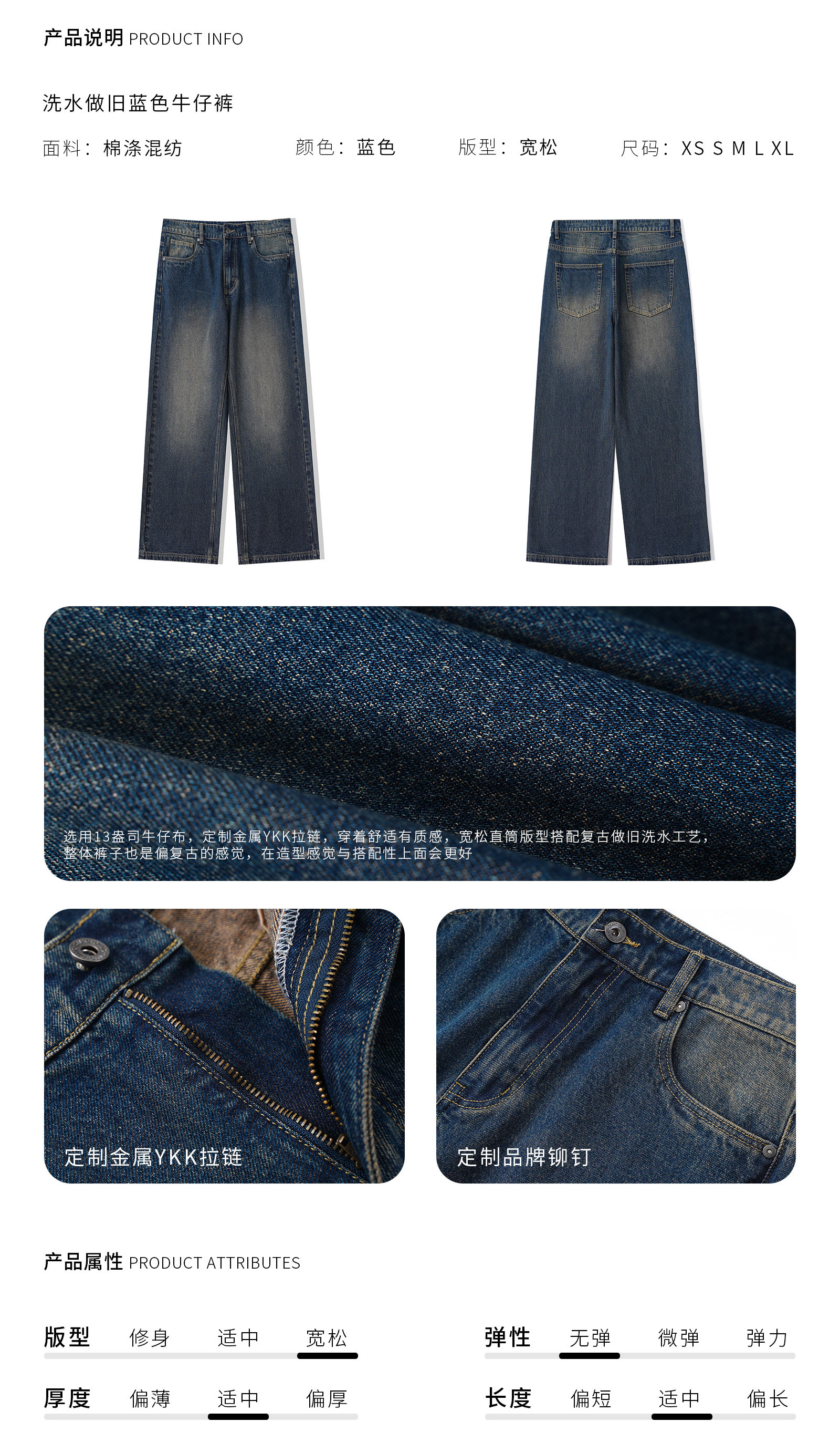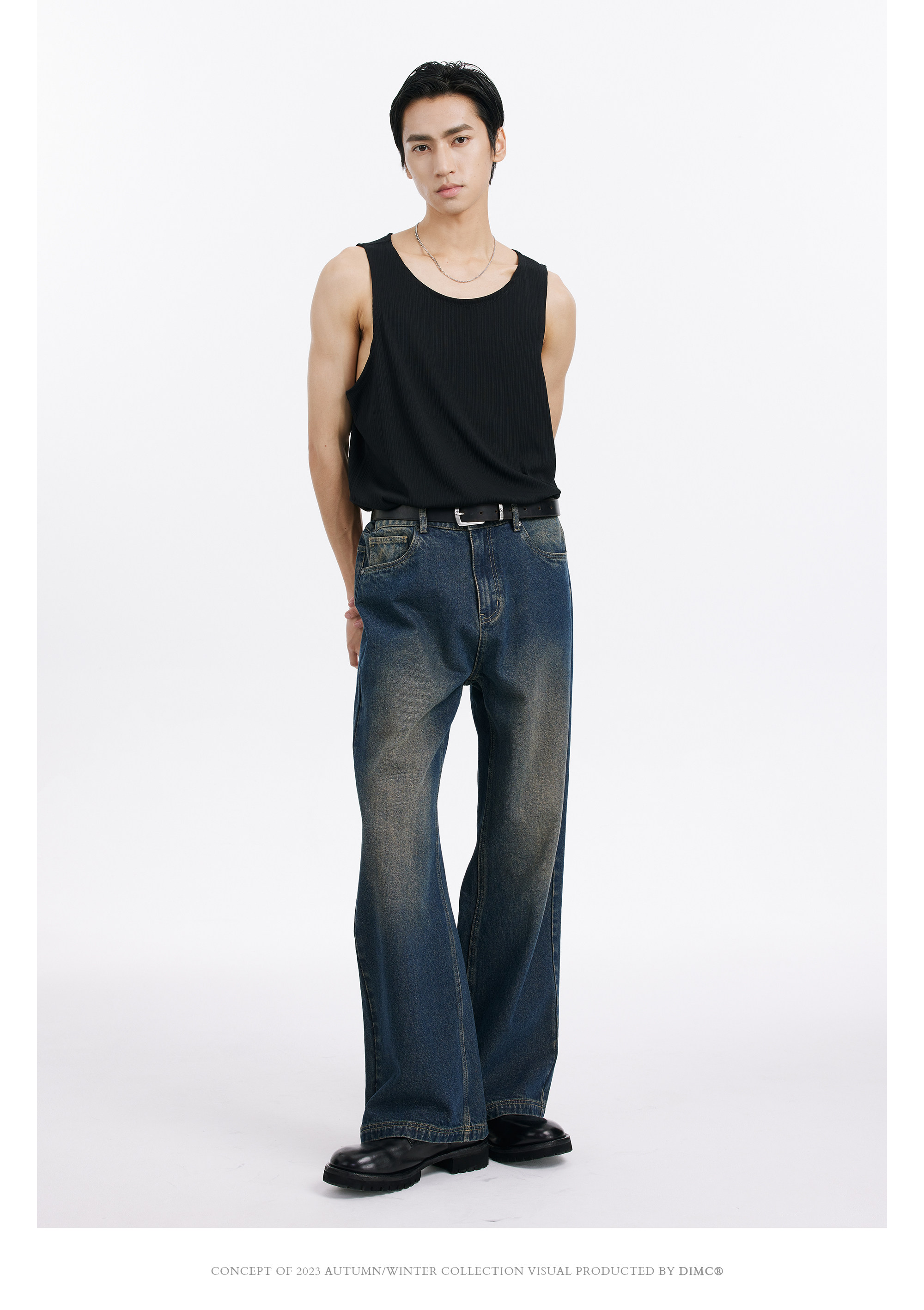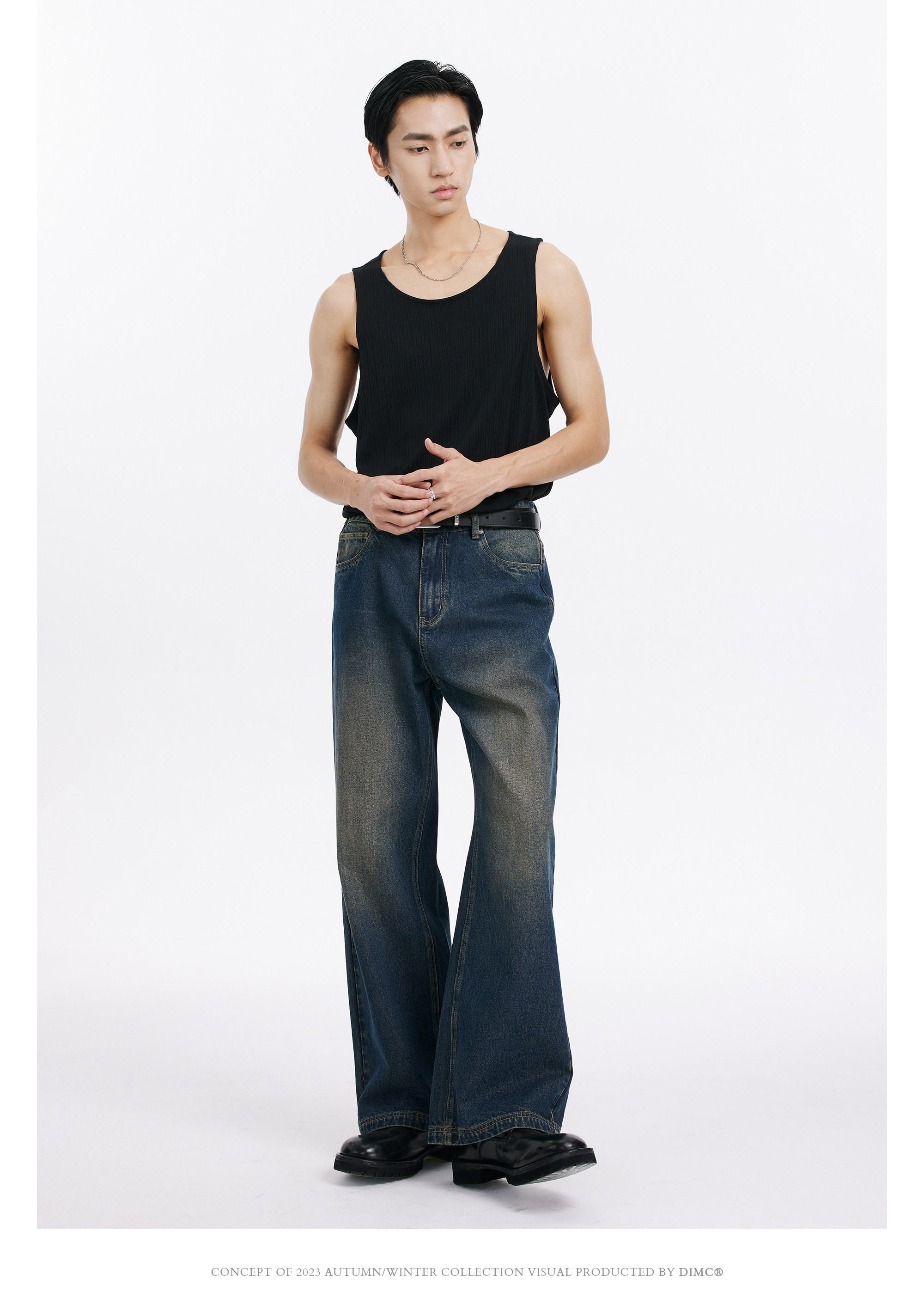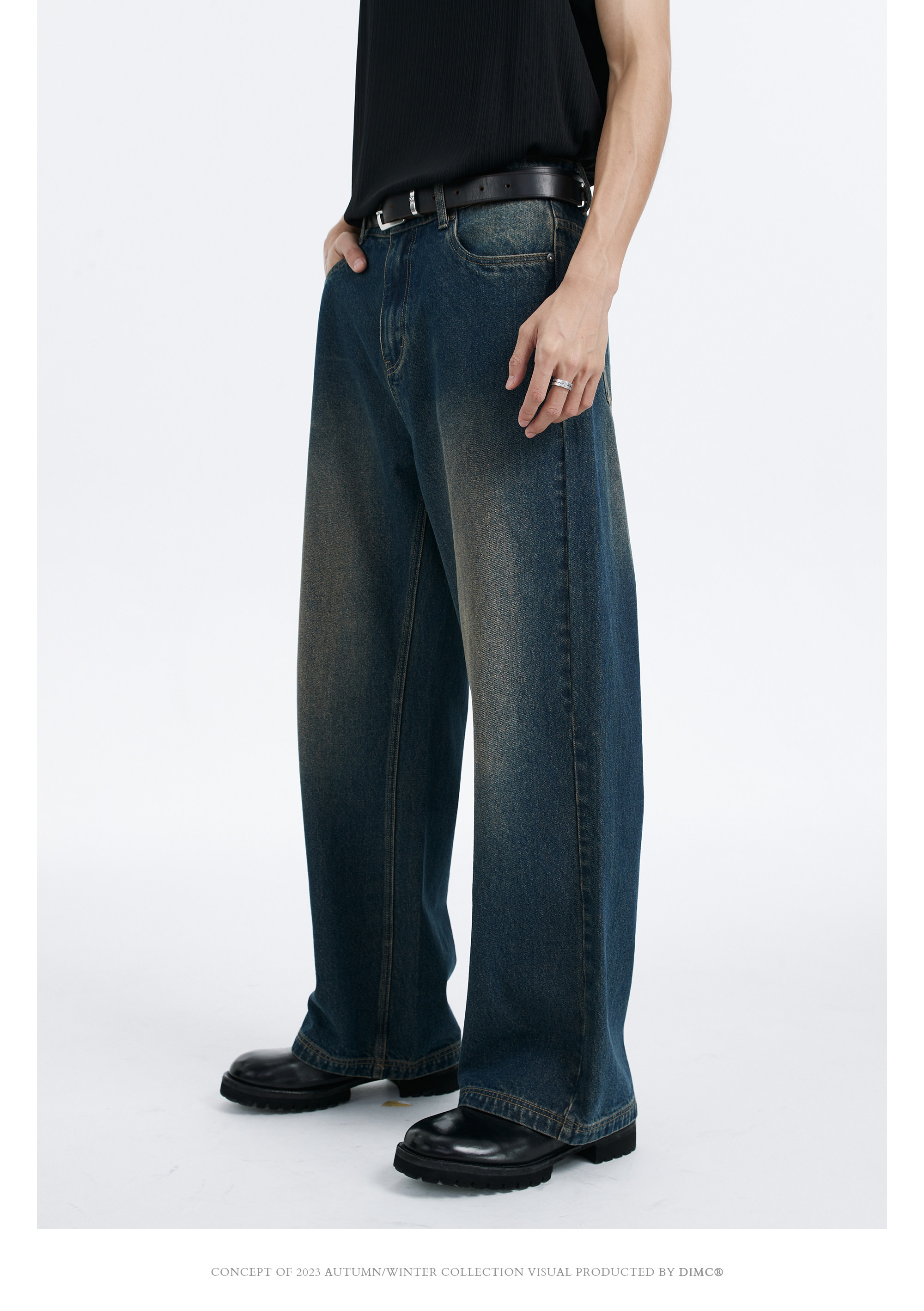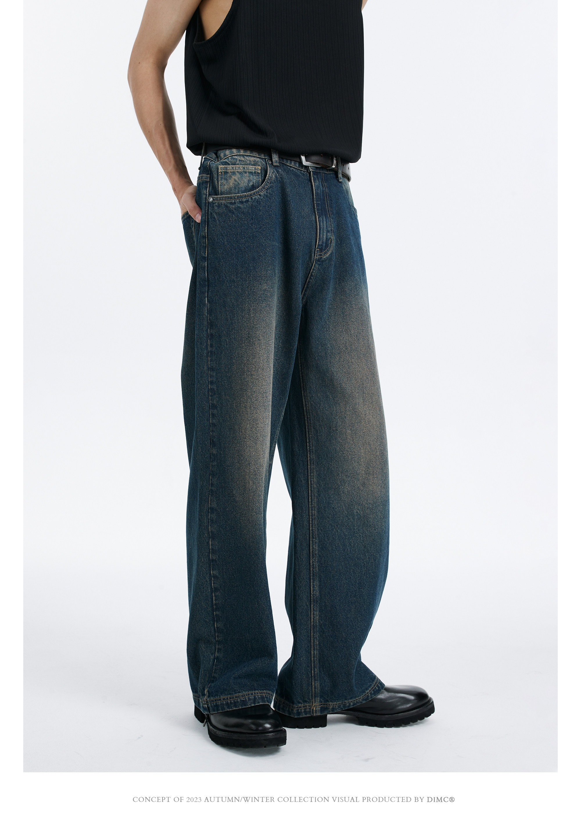 DIMC Потертые потертые винтажные синие джинсы, гладкие мужские и женские повседневные 𫔮 брюки из ацетата ручной стирки.