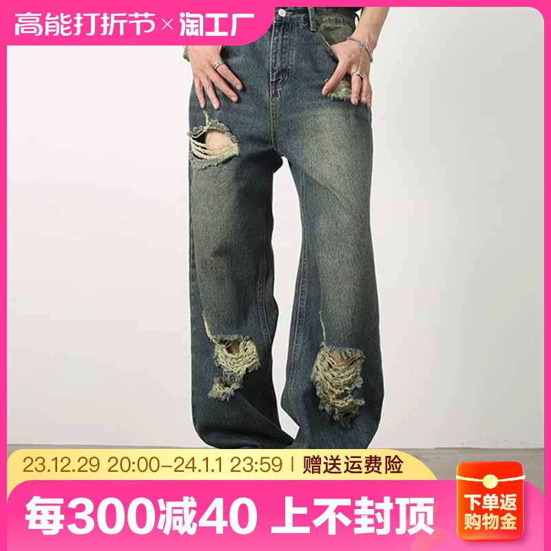 Ретро дизайнерские прямые свободные джинсы, штаны, в американском стиле, тренд сезона, оверсайз