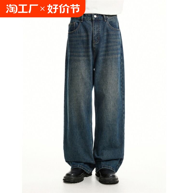 Tide, ретро джинсы подходит для мужчин и женщин, штаны, в американском стиле, свободный прямой крой