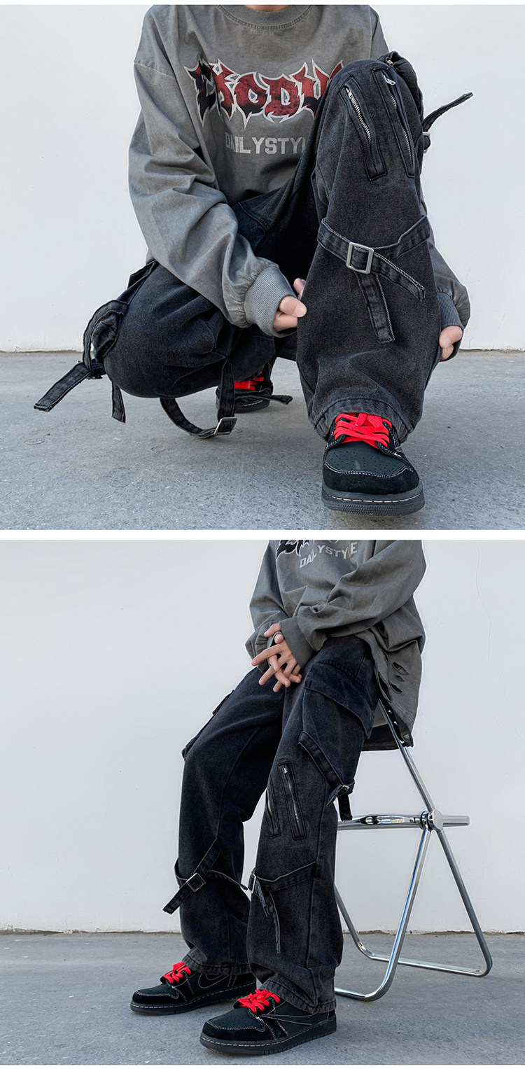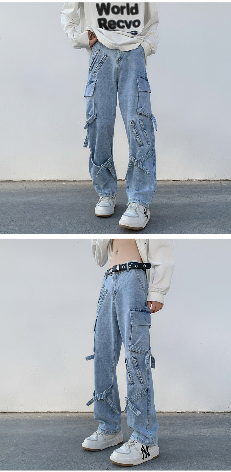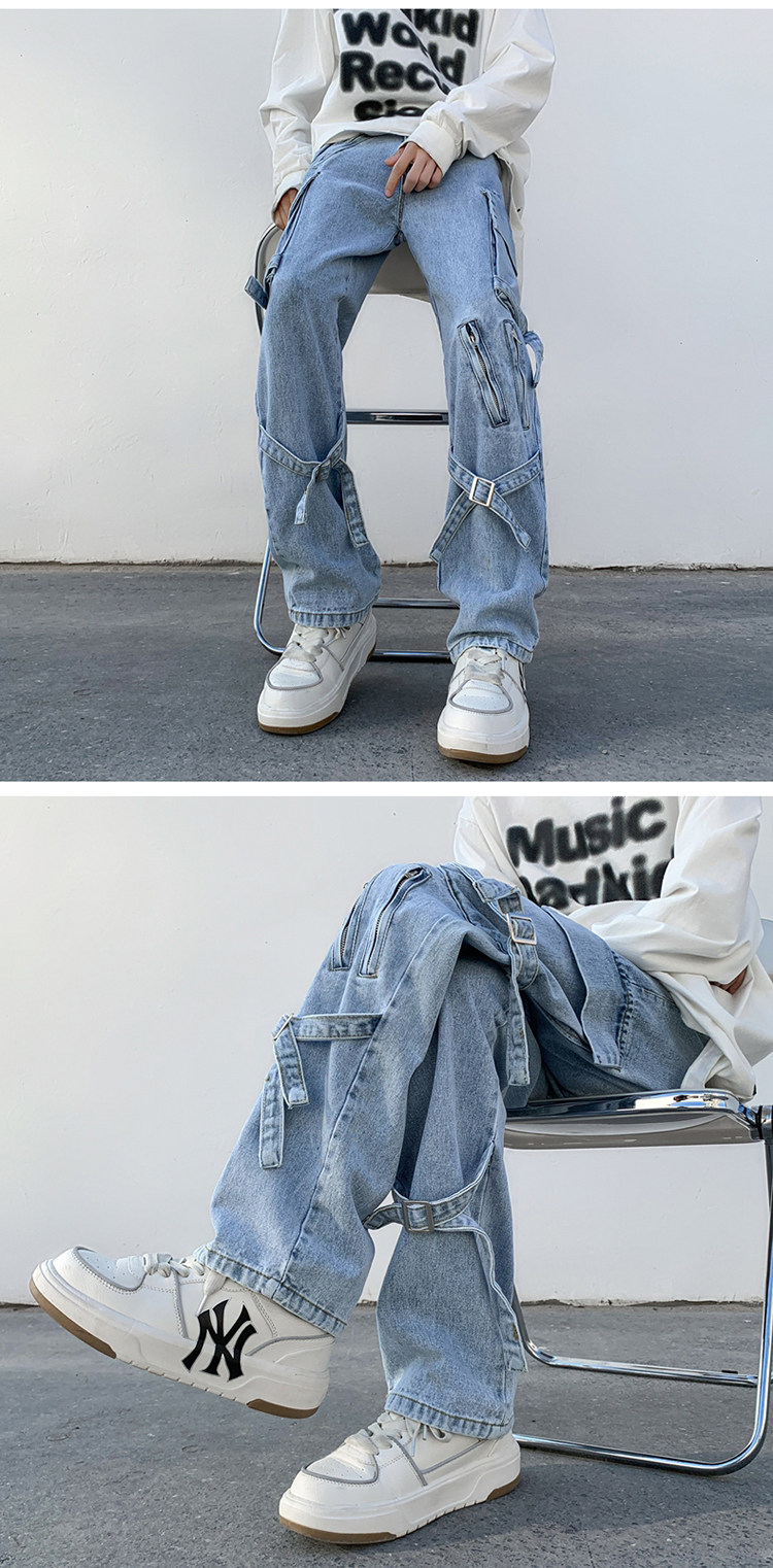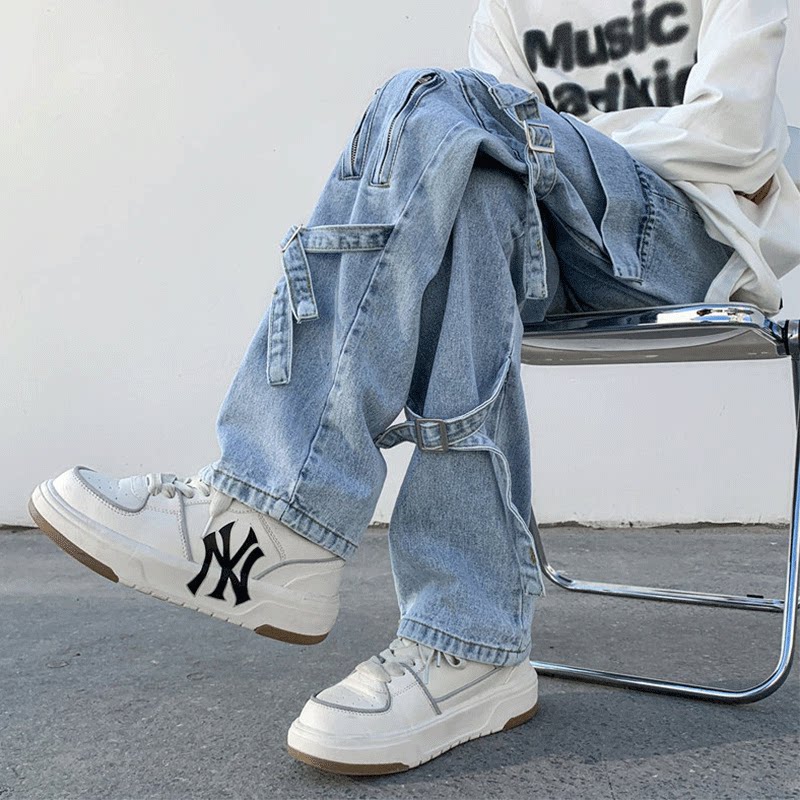 Сексуальные штаны, джинсы, в американском стиле, свободный прямой крой
