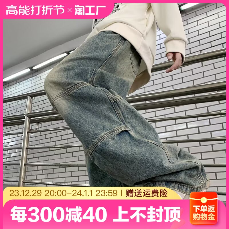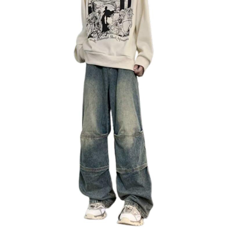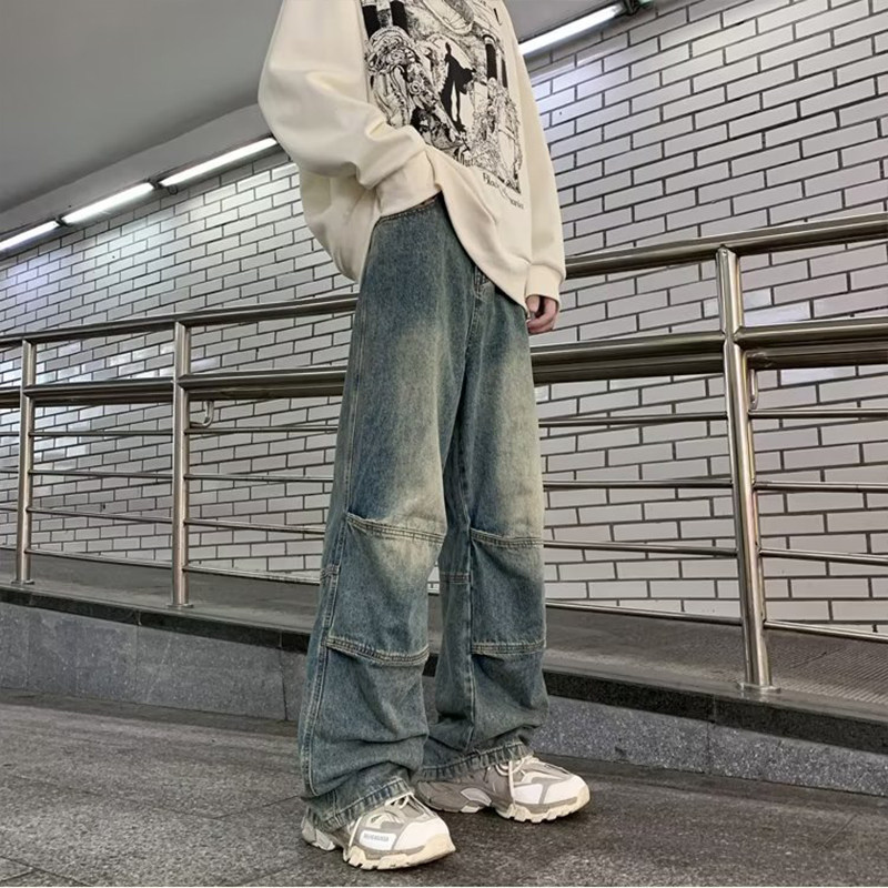 Джинсы, ретро штаны, трендовые повседневные брюки, осенние, в американском стиле, свободный прямой крой